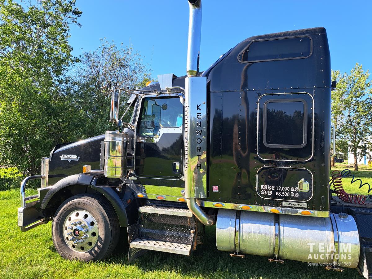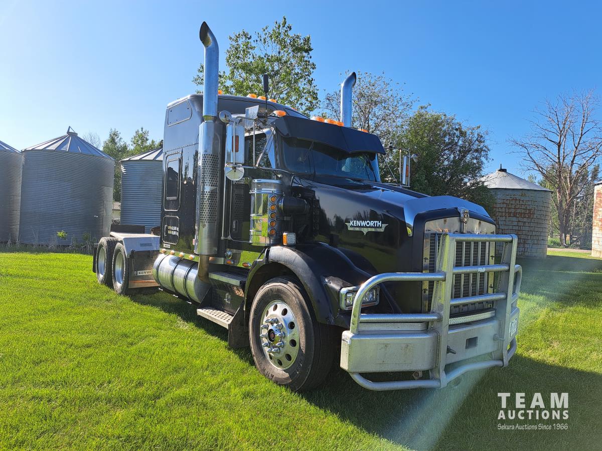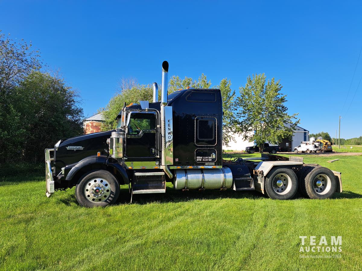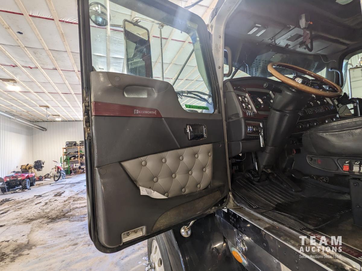 Caterpillar C15 ACERT 6 cylinder diesel engine, engine brake, Eaton Fuller RTLO18918B 18 speed manual transmission, mid rise 62 inch sleeper, A/C, cruise control, air ride seats, 12,000 lb front axle, 46,000 lb rear axles, full lockers, 3.91 ratio, 234 inch WB, Kenworth 8 Bag Air Ride Suspension , all aluminum wheels, 11R24.5 tires
