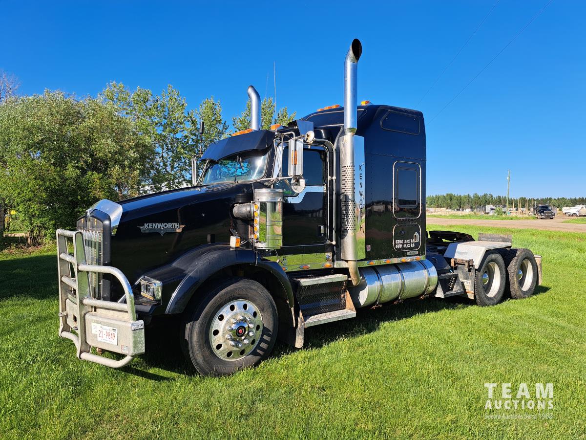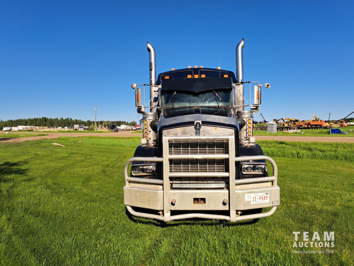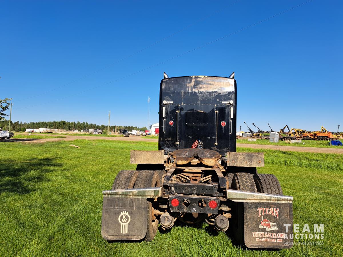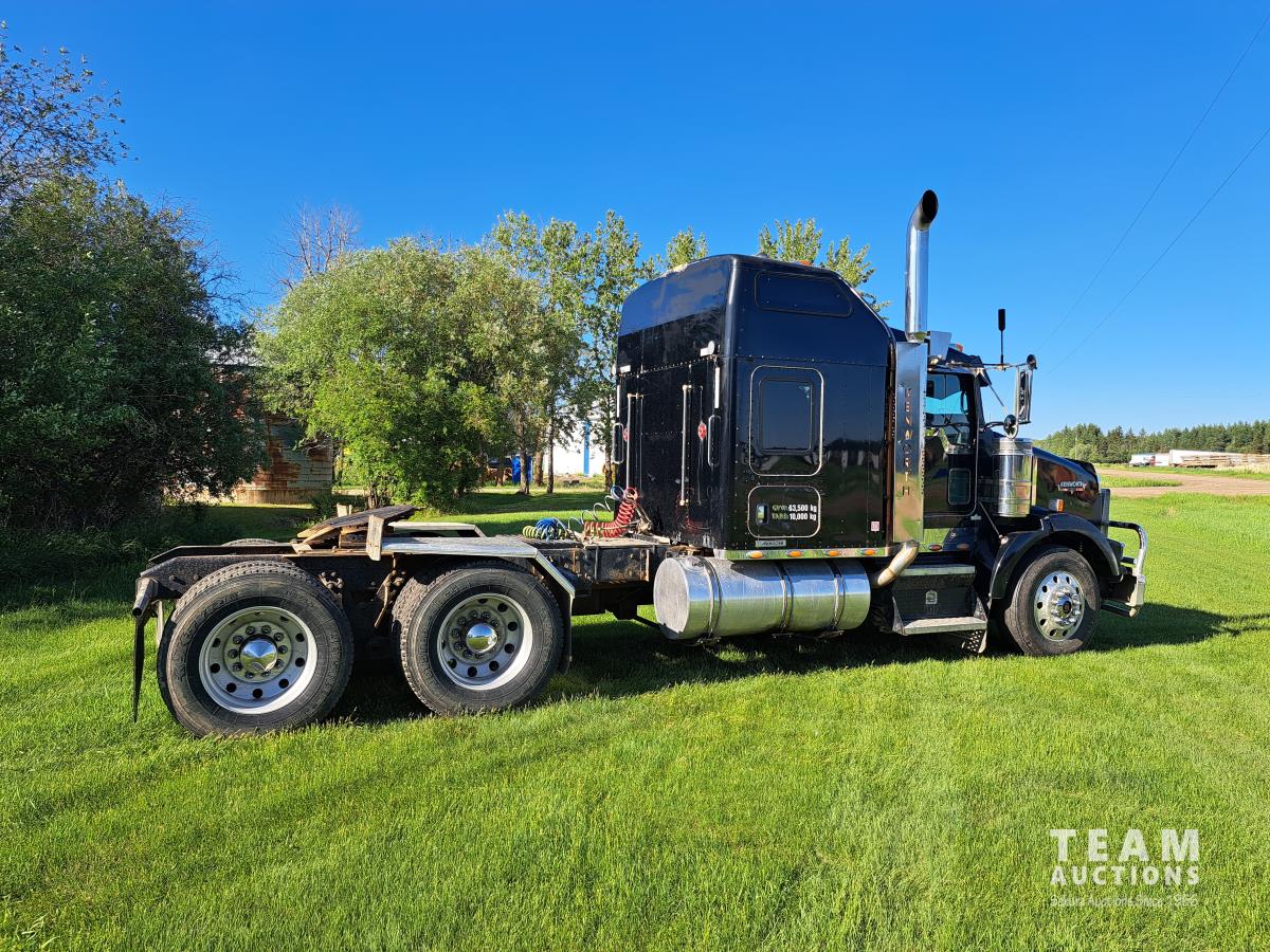 Caterpillar C15 ACERT 6 cylinder diesel engine, engine brake, Eaton Fuller RTLO18918B 18 speed manual transmission, mid rise 62 inch sleeper, A/C, cruise control, air ride seats, 12,000 lb front axle, 46,000 lb rear axles, full lockers, 3.91 ratio, 234 inch WB, Kenworth 8 Bag Air Ride Suspension , all aluminum wheels, 11R24.5 tires