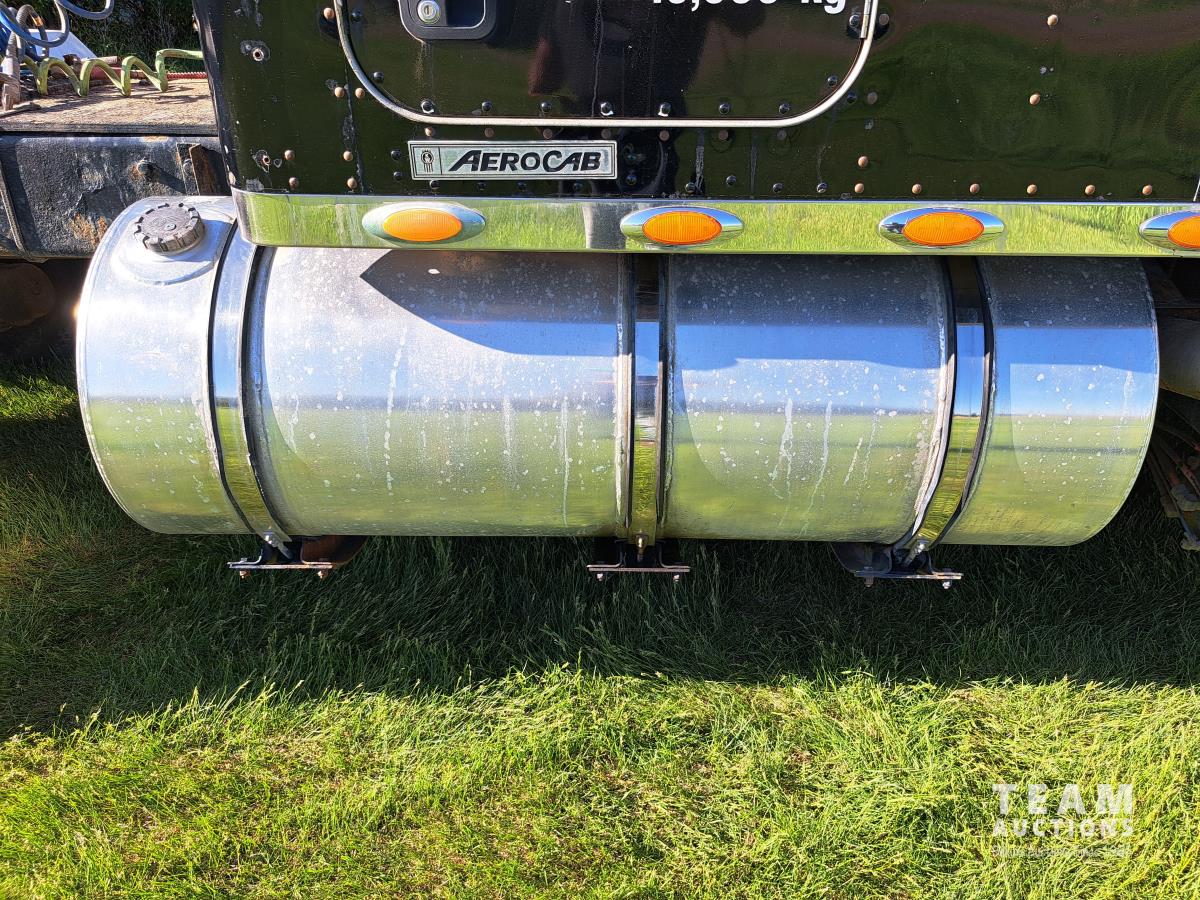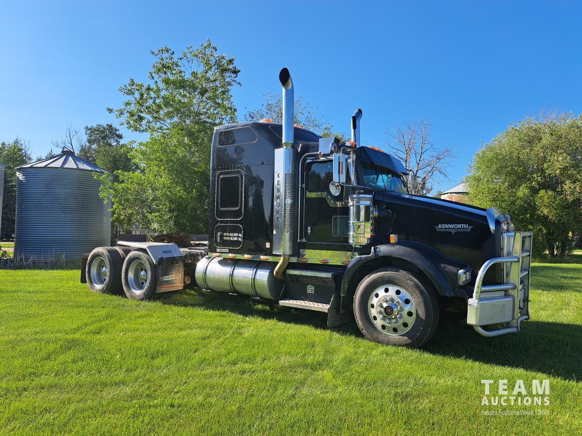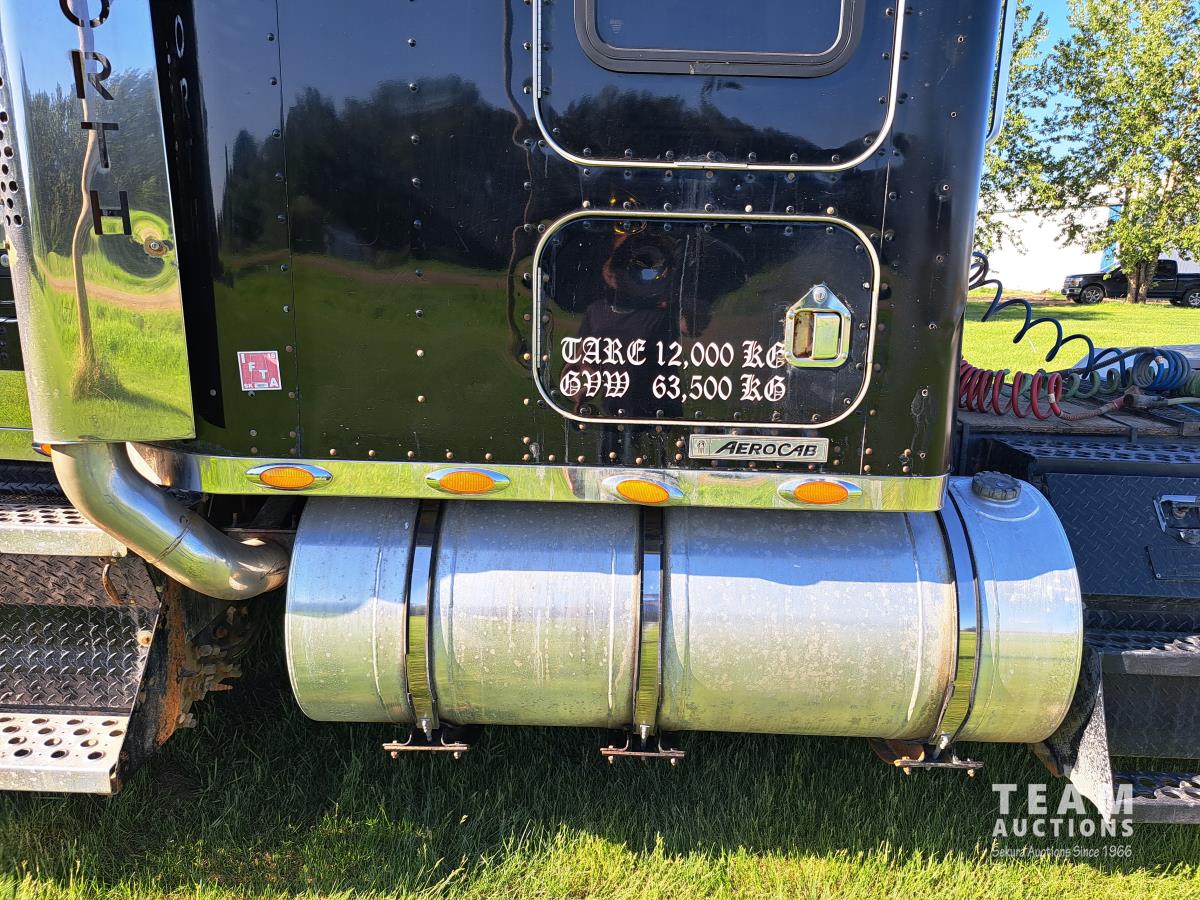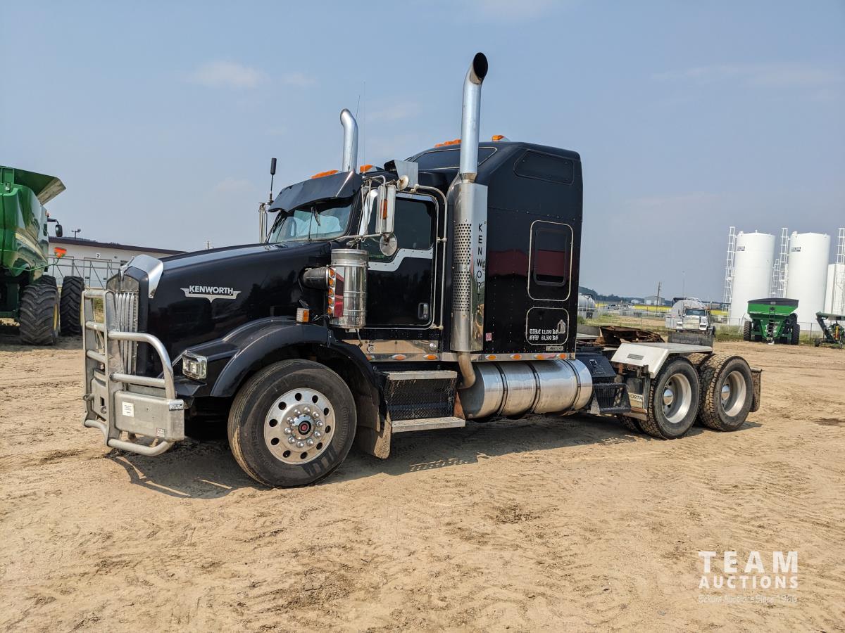 Caterpillar C15 ACERT 6 cylinder diesel engine, engine brake, Eaton Fuller RTLO18918B 18 speed manual transmission, mid rise 62 inch sleeper, A/C, cruise control, air ride seats, 12,000 lb front axle, 46,000 lb rear axles, full lockers, 3.91 ratio, 234 inch WB, Kenworth 8 Bag Air Ride Suspension , all aluminum wheels, 11R24.5 tires