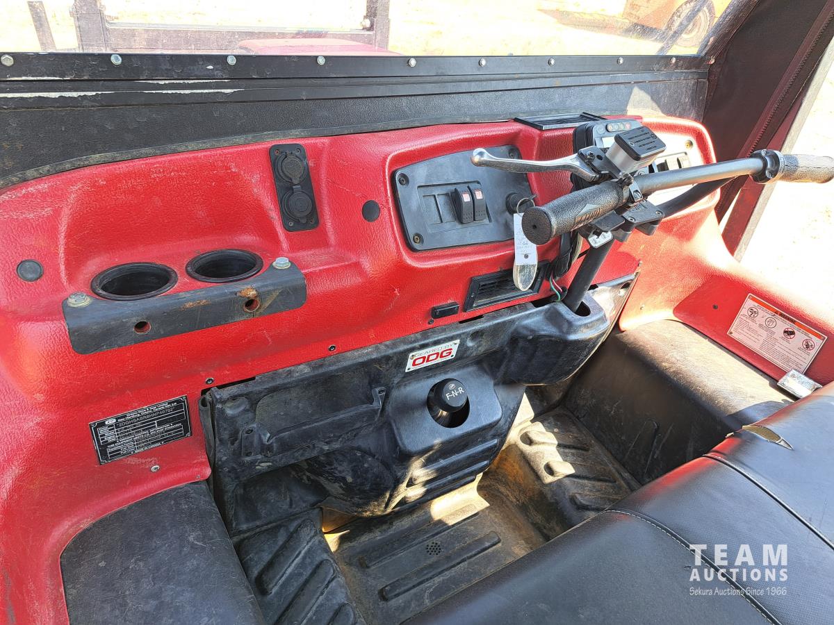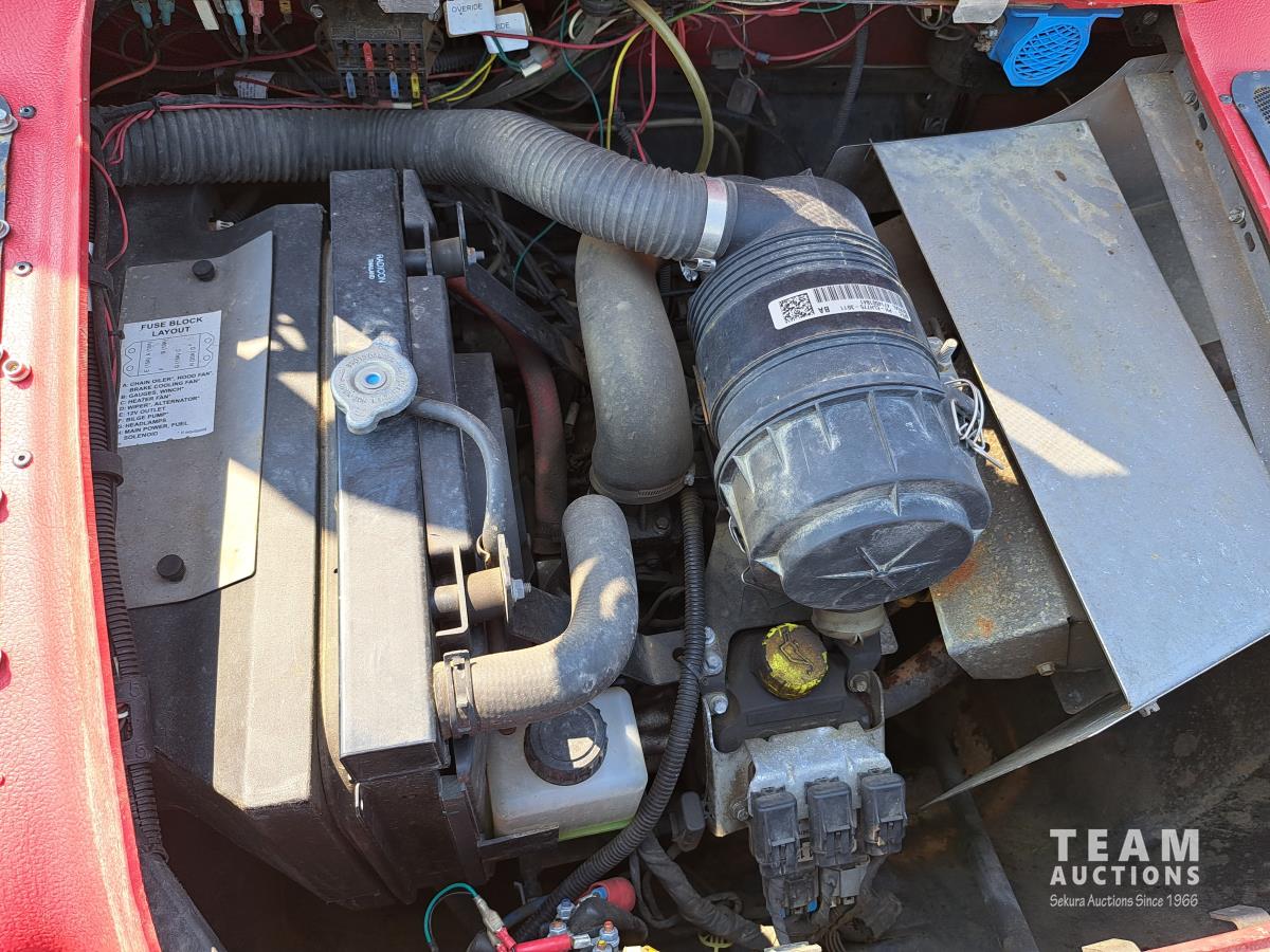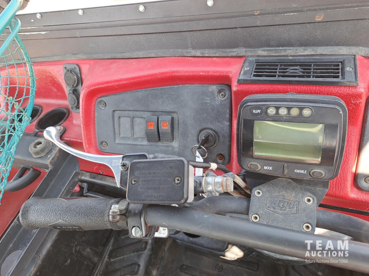 750 Kohler liquid cooled twin cylinder gas engine, Roll bar, canvas cover with poly windows, Hi-Lo range, 2500 lb Warn Pro Vantage winch, 2 inch receiver hitch, stretcher basket with all mounting hardware, 25X12.00-9 tires