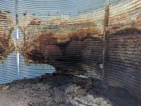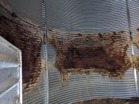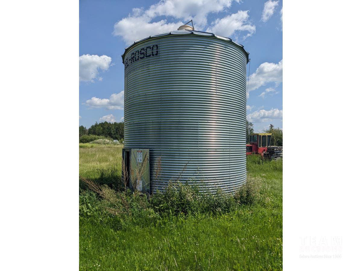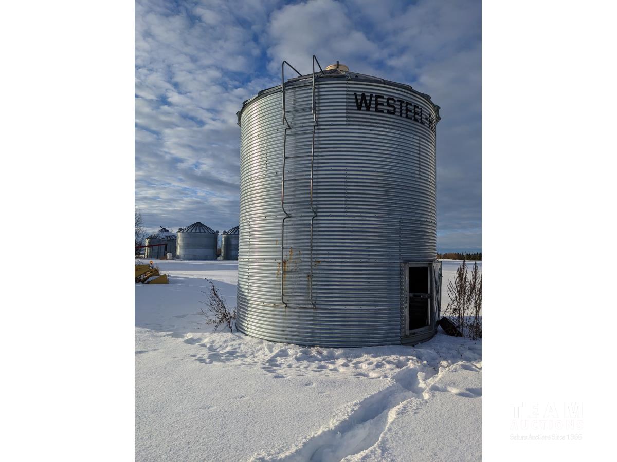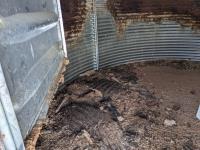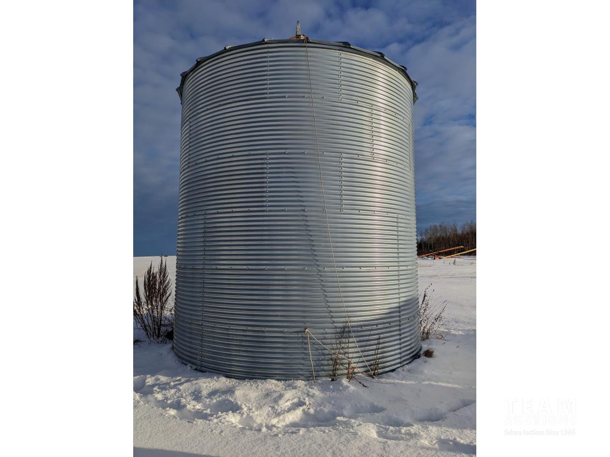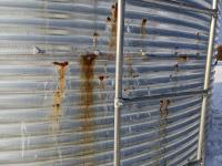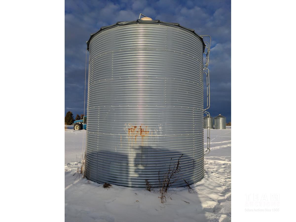 This is a complete estate dispersal of grain bins. This bin has some heated grain in it. It is the buyers responsibility to remove heated and moldy grain using proper protective clothing and respirator equipment. Moldy grain can be left at farm. There is wall damage and we do not know the condition of floor.