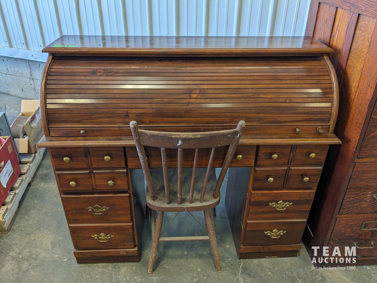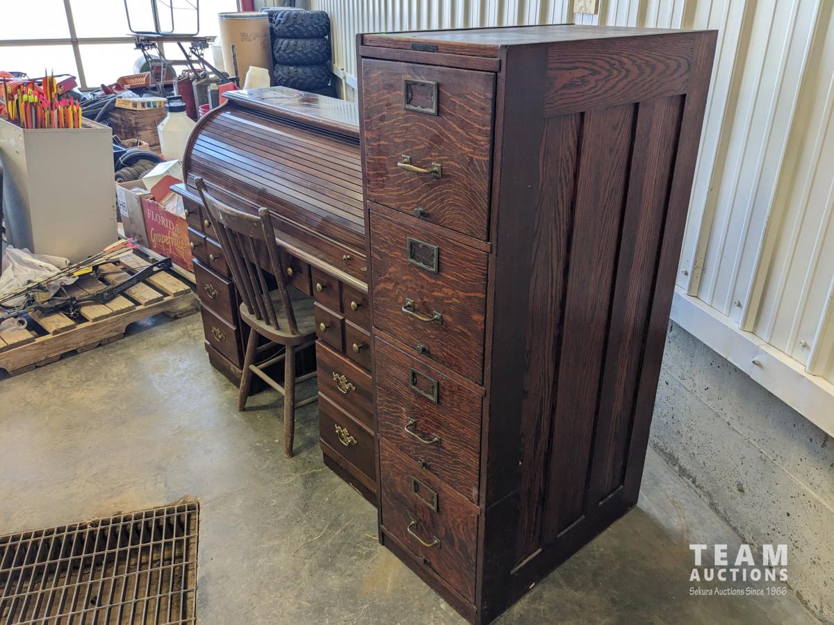 34 48 Inch Wood Roll Top Desk, 4 Drawer Wood Filing Cabinet