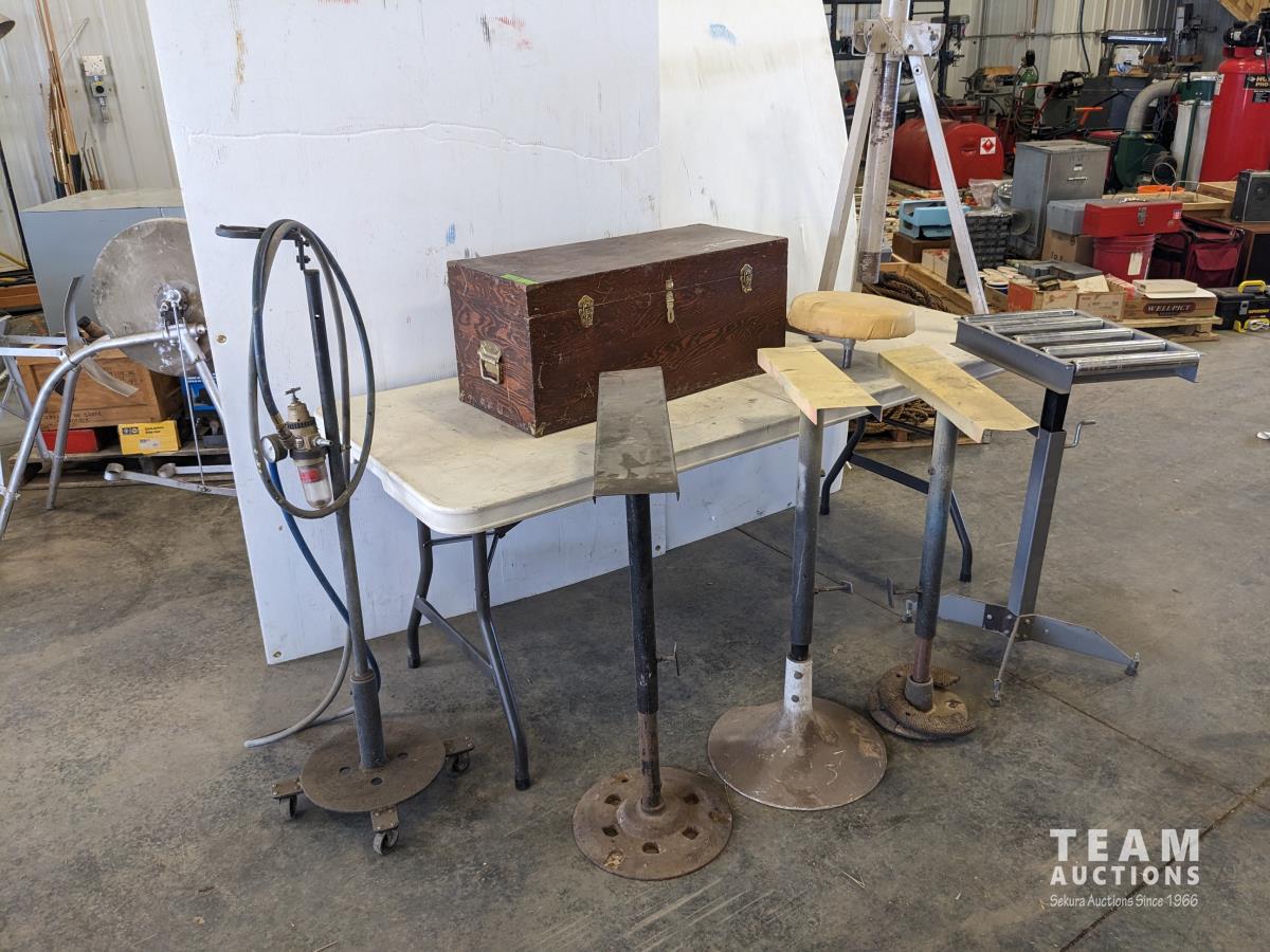 91 (5) Adjustable Stands, Air Hose Stand, Wooden Box