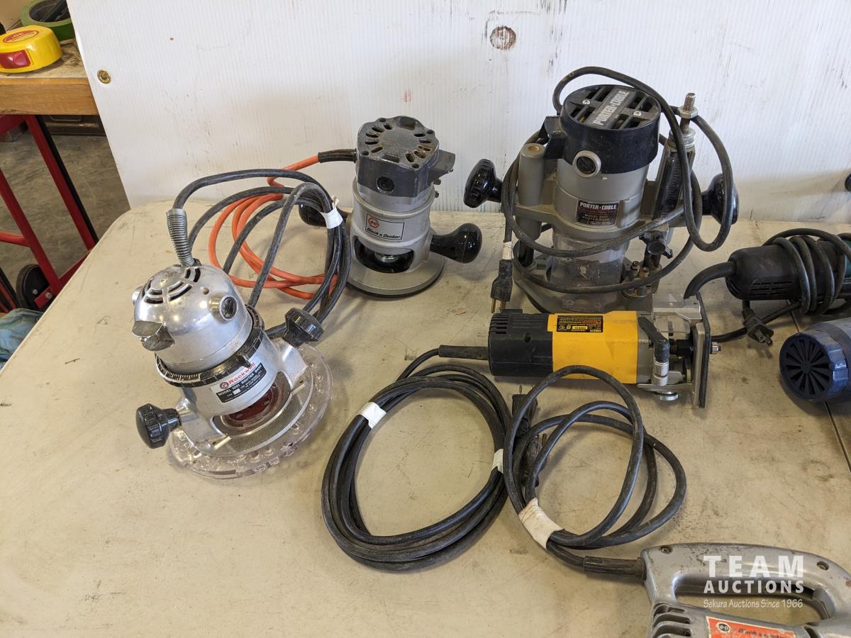 (4) routers, (3) angle grinders, heat gun, jig saw, (2) drills, sanders