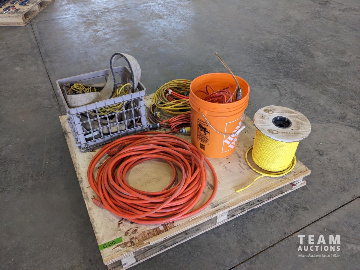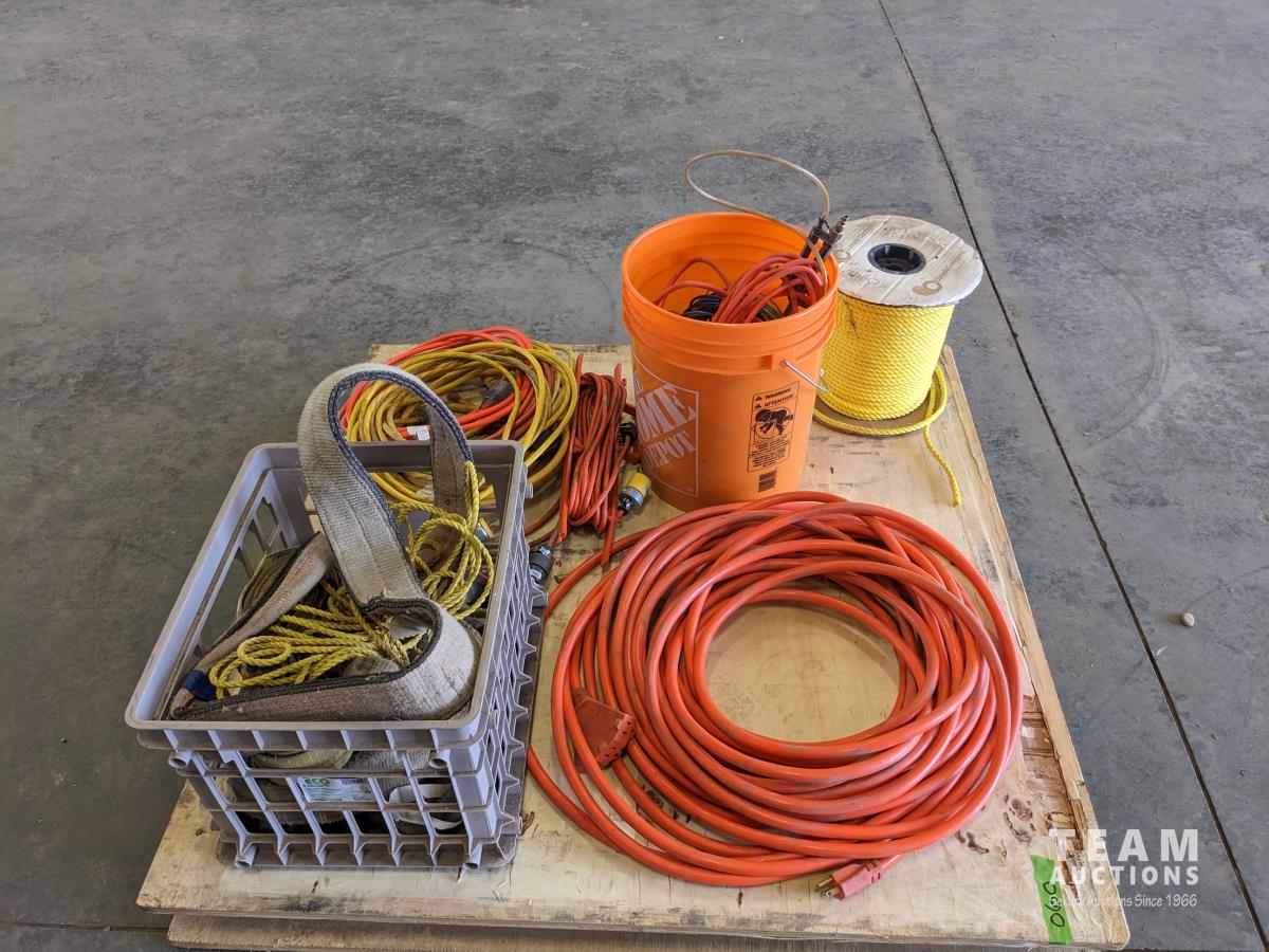 140 Qty of Slings, Straps, Extension Cords and Coil of Rope