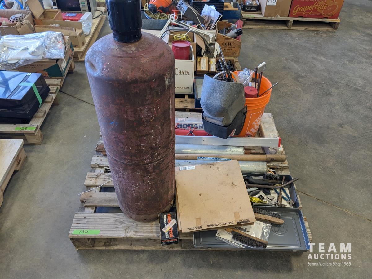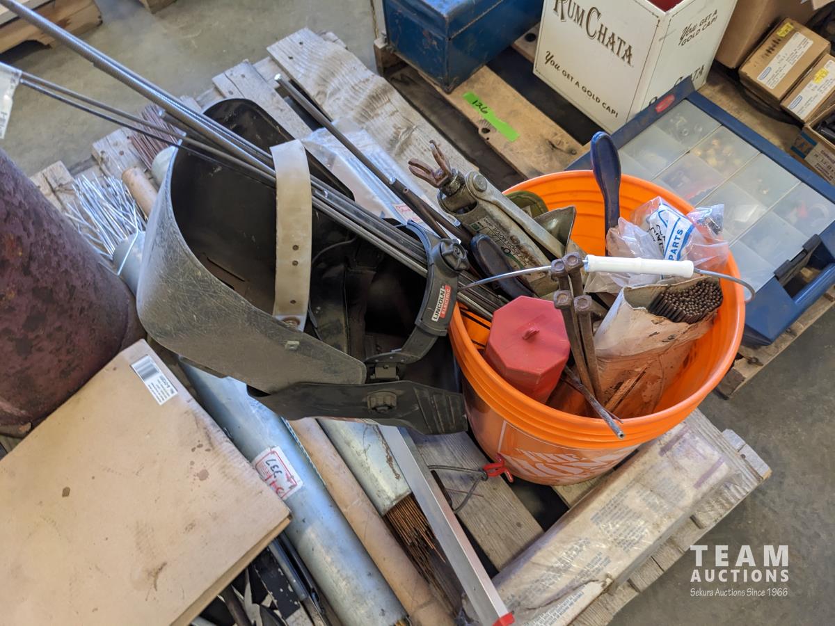 Qty of 14 inch cut off discs, acetylene bottle, miscellaneous welding rods and supplies