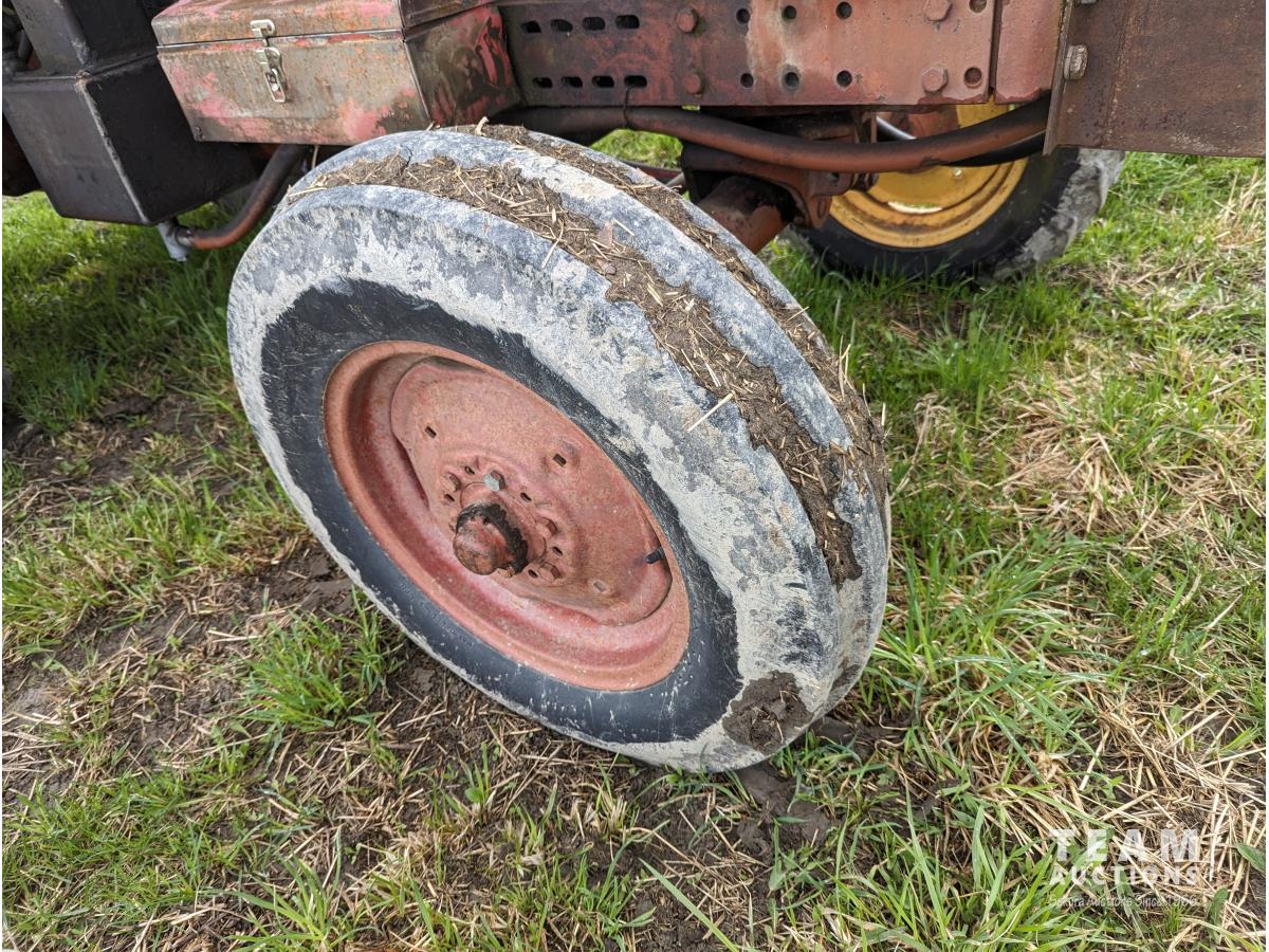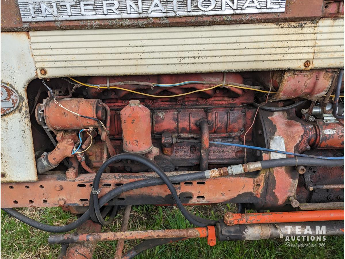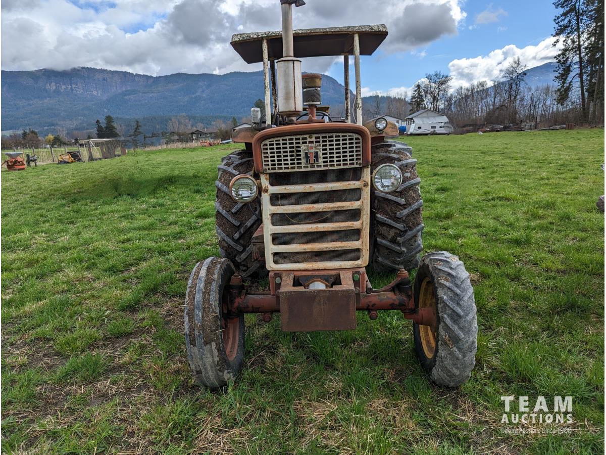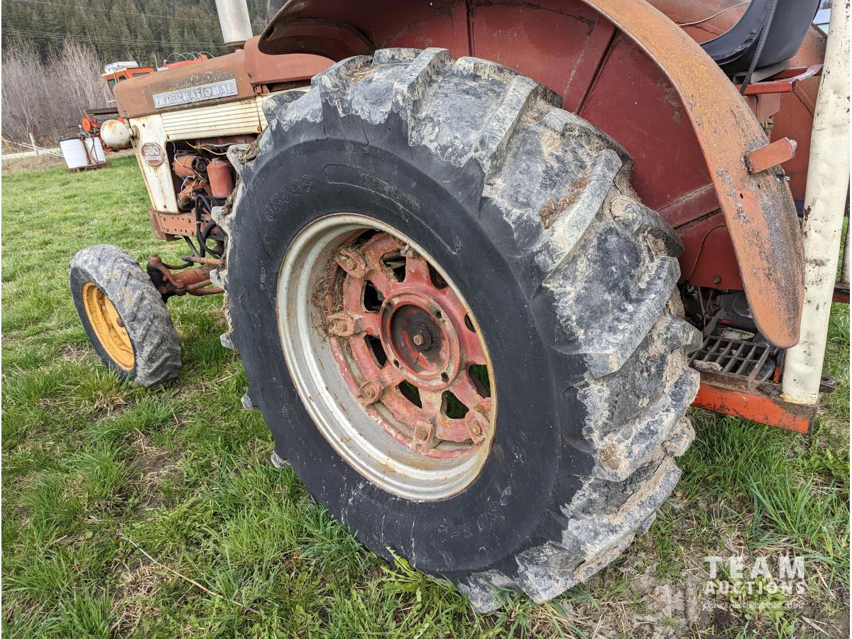 International 4.6 L 6 cylinder 72.5 HP, diesel engine, 59.48 PTO HP, 5 speed manual transmission, 12 GPM hydraulic pump, open station platform, front PTO, 540 PTO, 2 rear hydraulic outlets, 7.50-18 front tires, 18.4-30R-1 rear tires