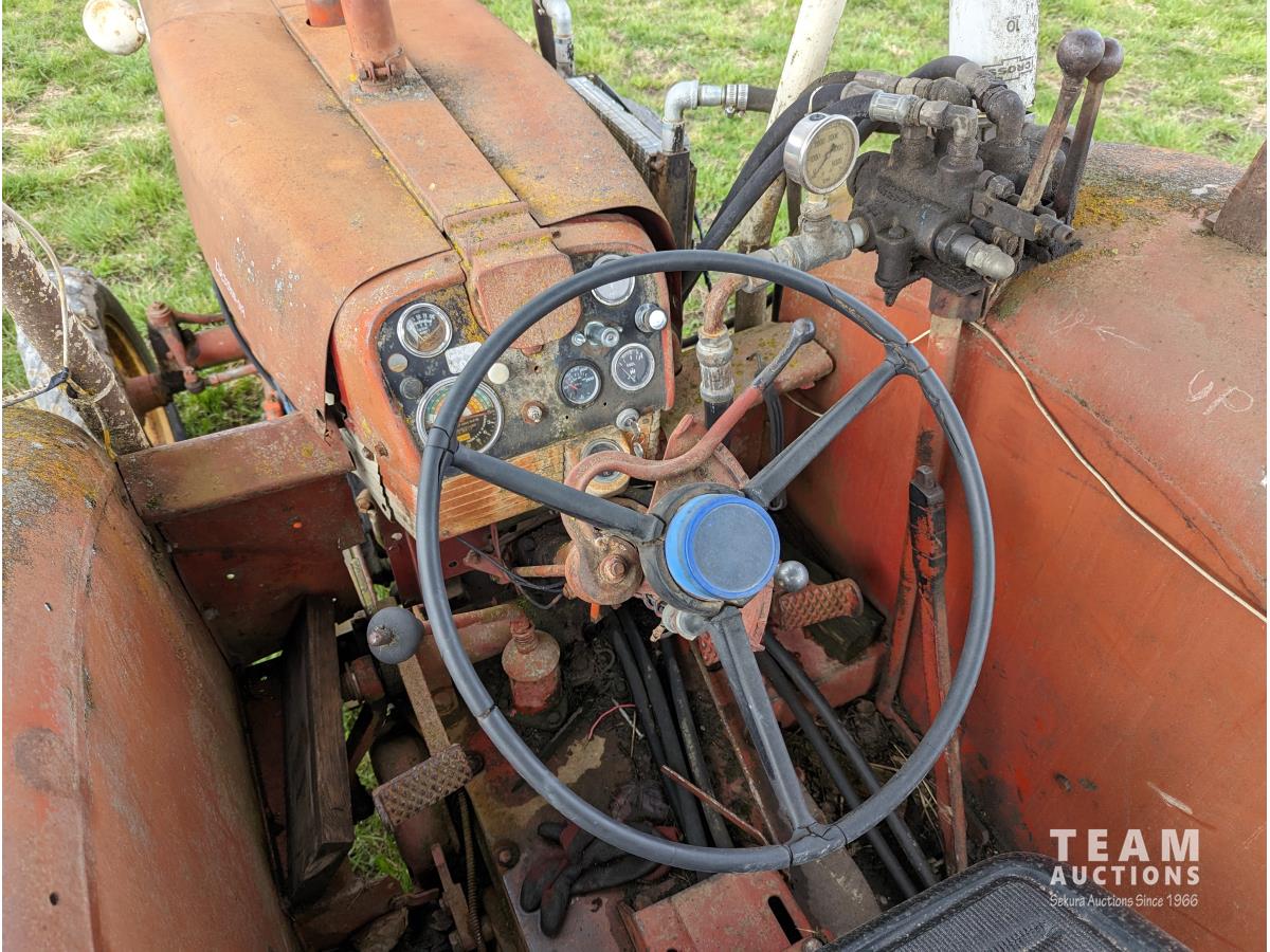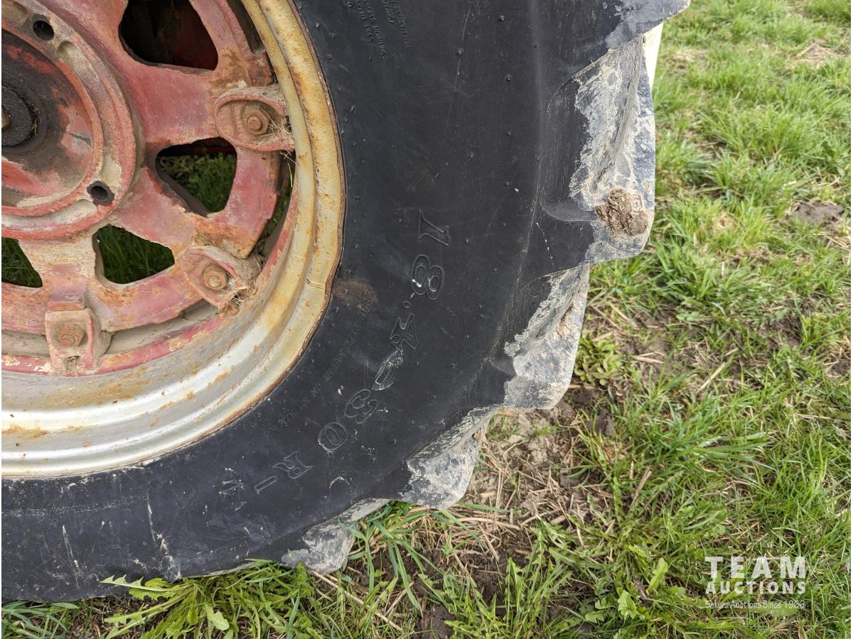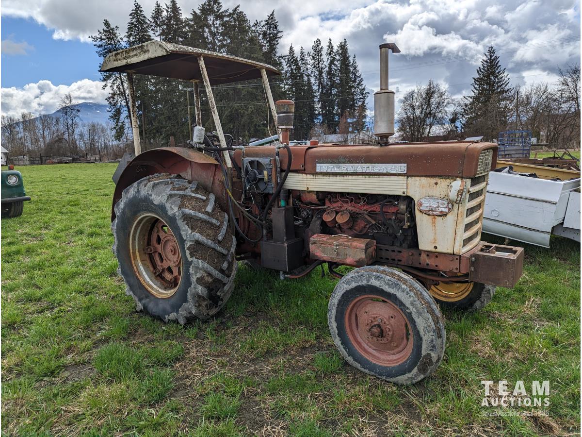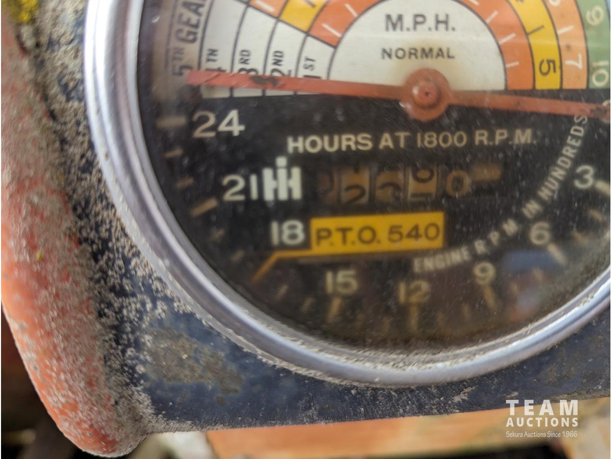 International 4.6 L 6 cylinder 72.5 HP, diesel engine, 59.48 PTO HP, 5 speed manual transmission, 12 GPM hydraulic pump, open station platform, front PTO, 540 PTO, 2 rear hydraulic outlets, 7.50-18 front tires, 18.4-30R-1 rear tires