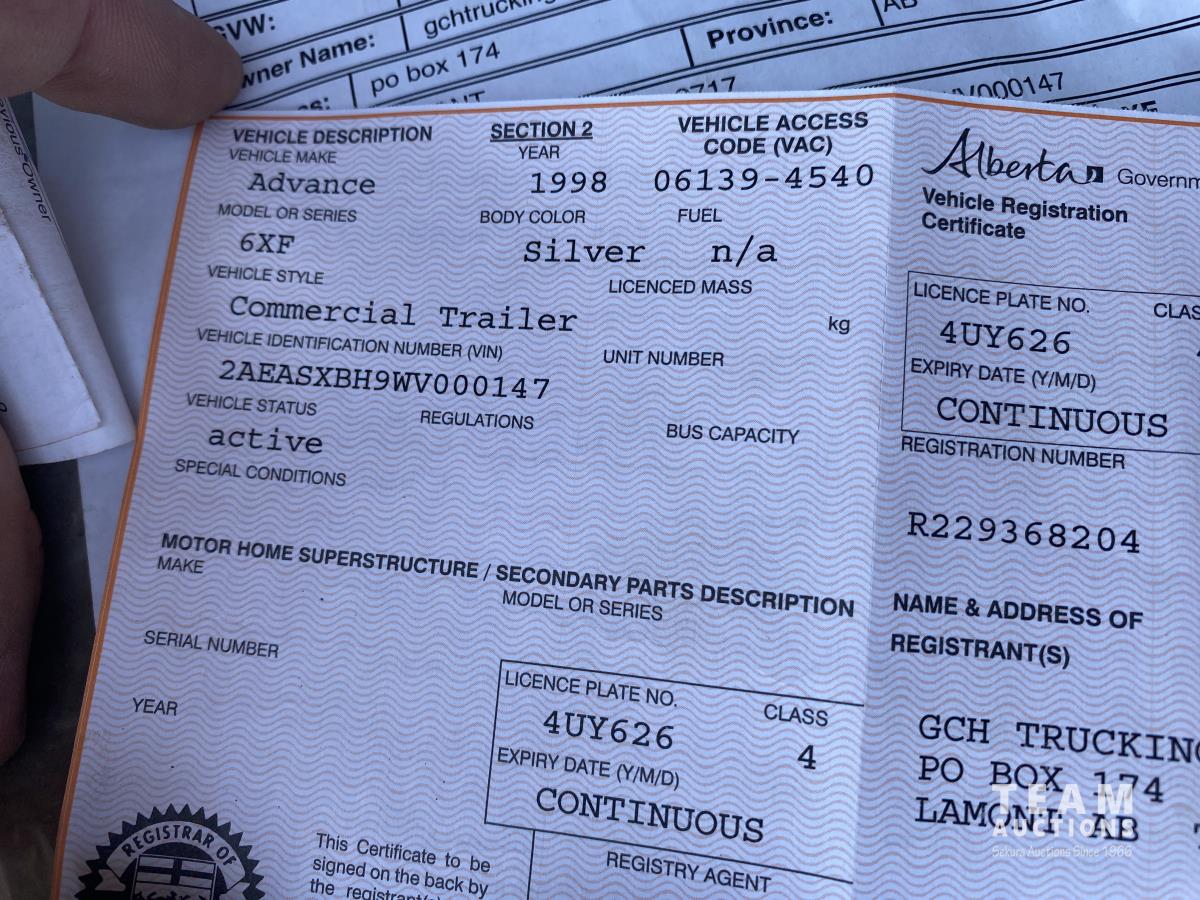 21 1998 Advance TRI/A Tank Trailer
