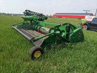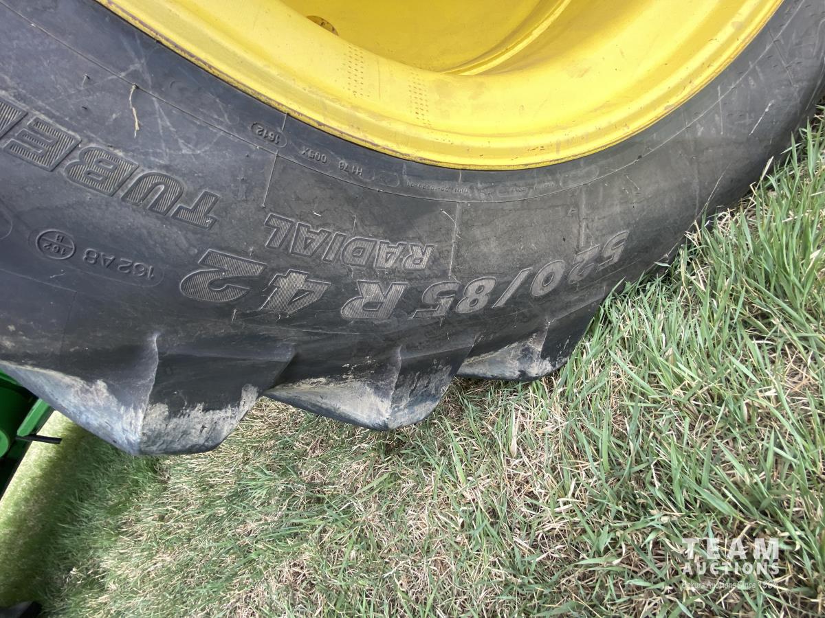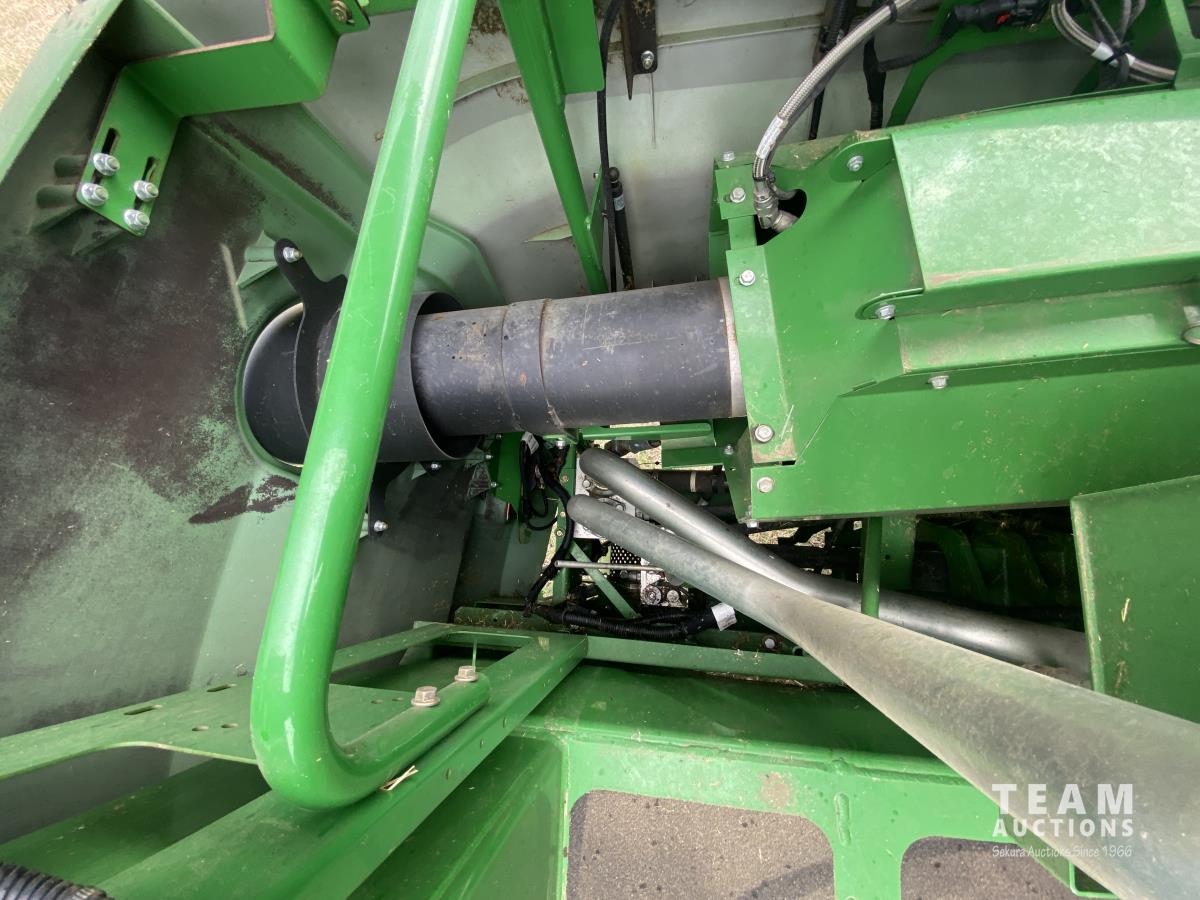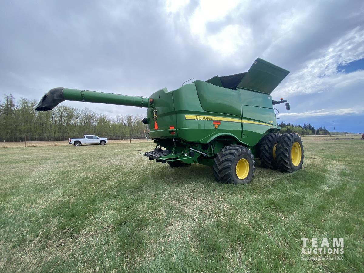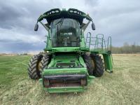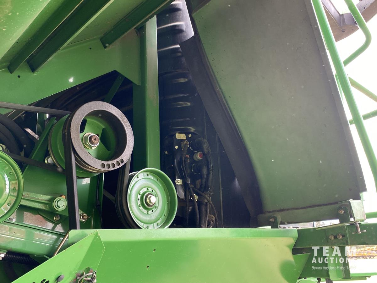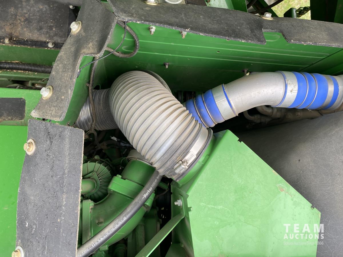 John Deere 615P pick-up header, variable speed reel, auto header height, fore & aft, reverser, lateral tilt, rock trap, chopper/straw spreader, grain tank extensions, A/C, radio, 520/85R42 front tires, duals, 750/65R26 rear tires