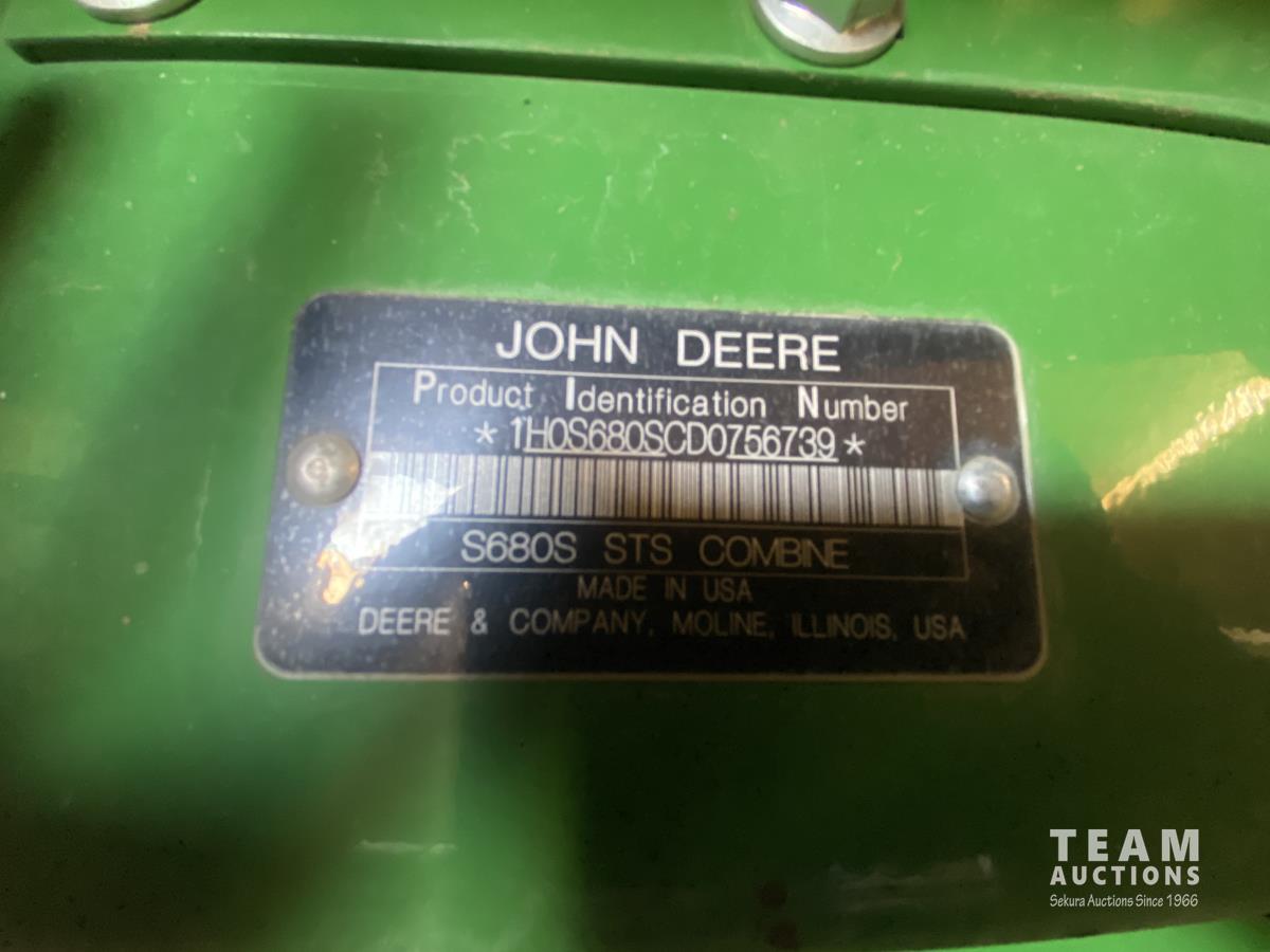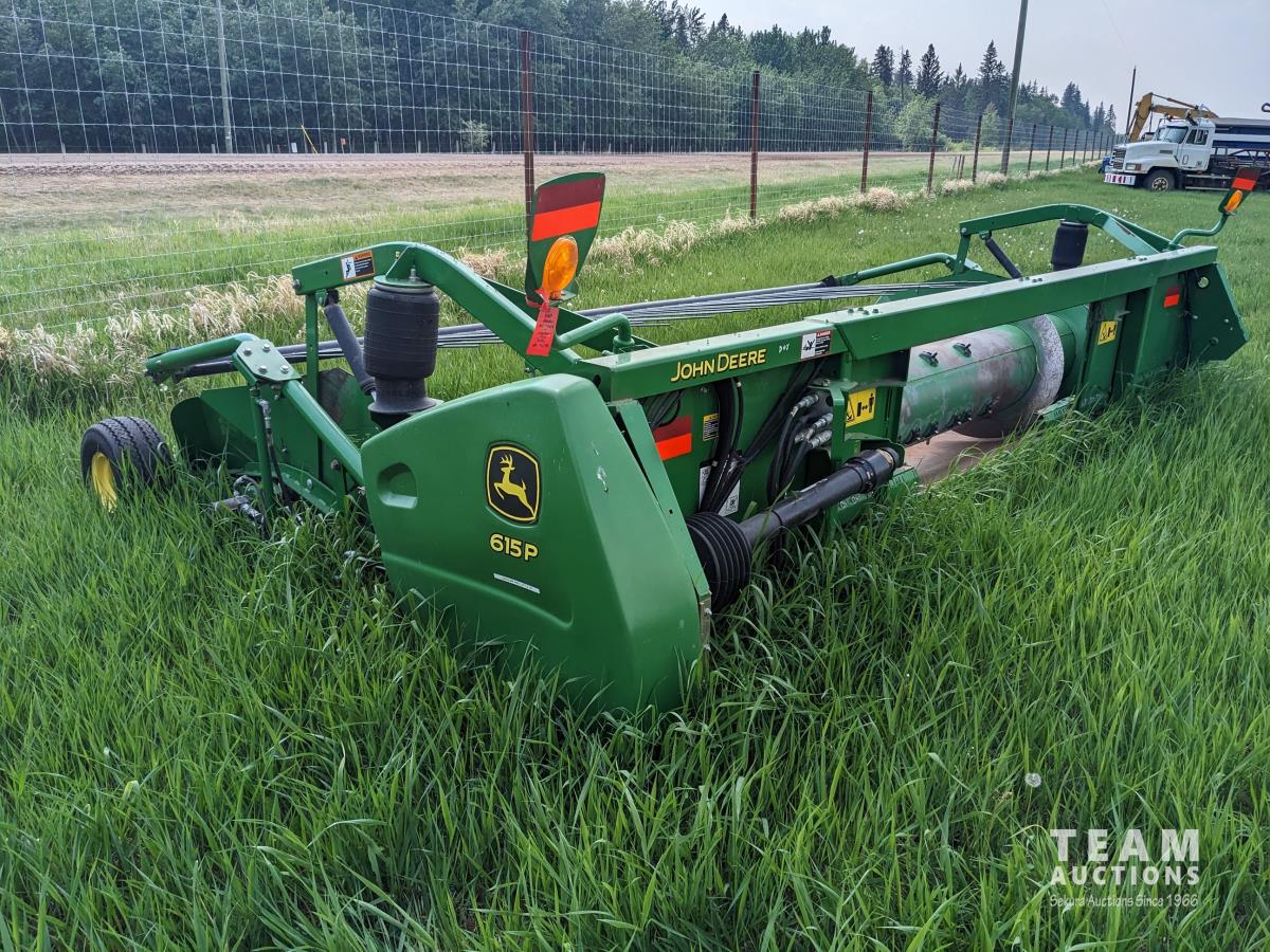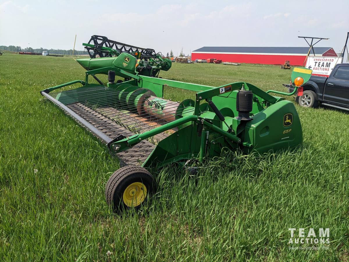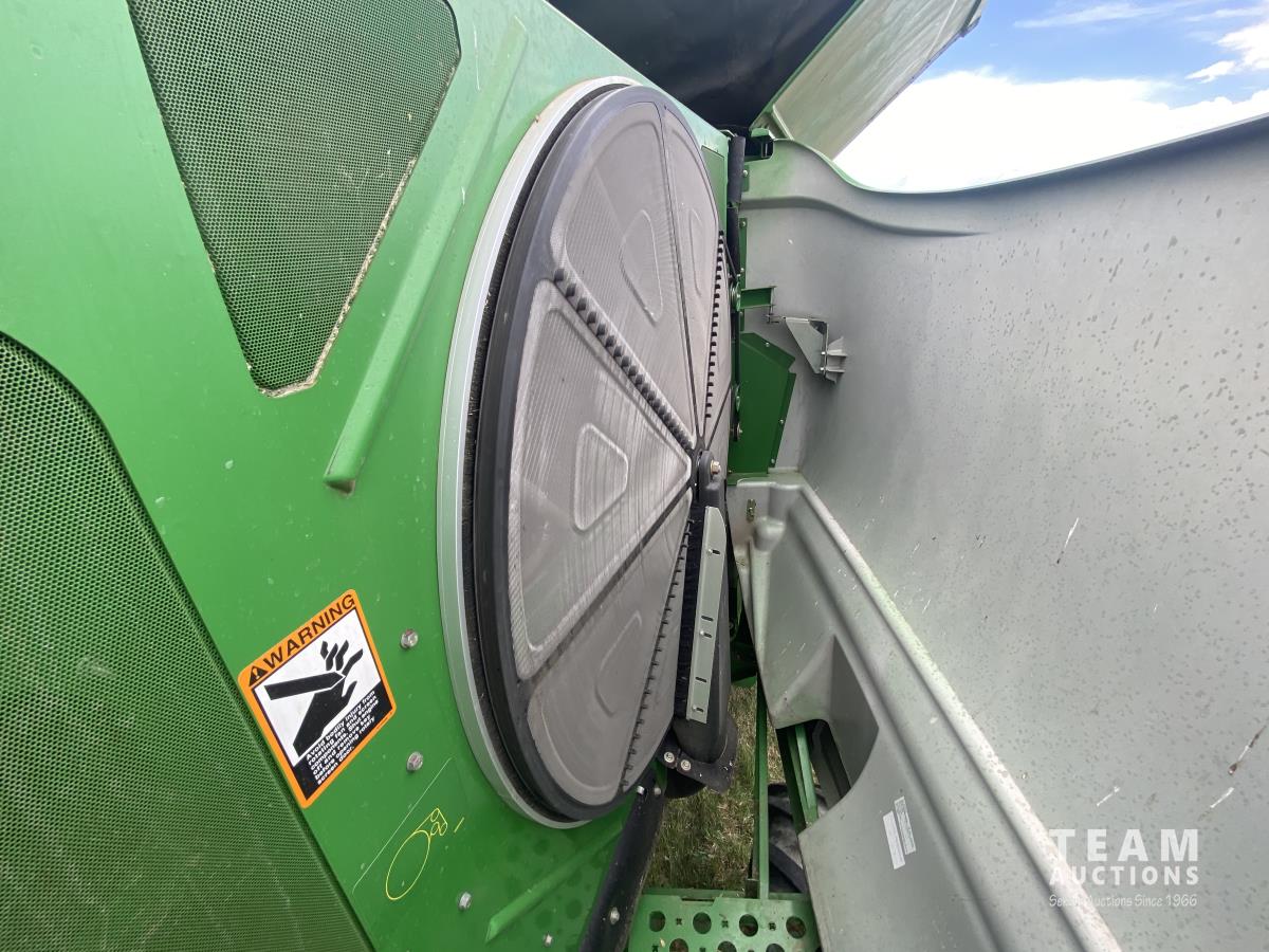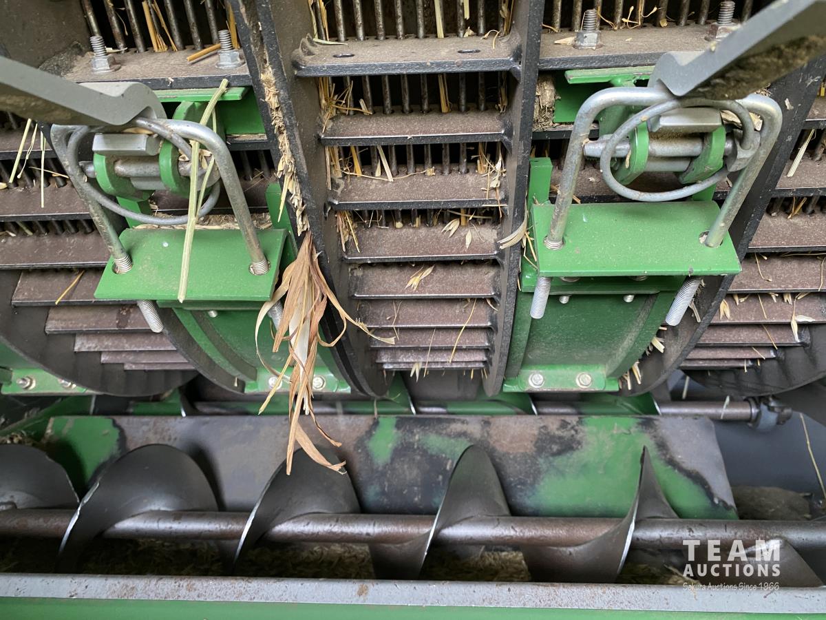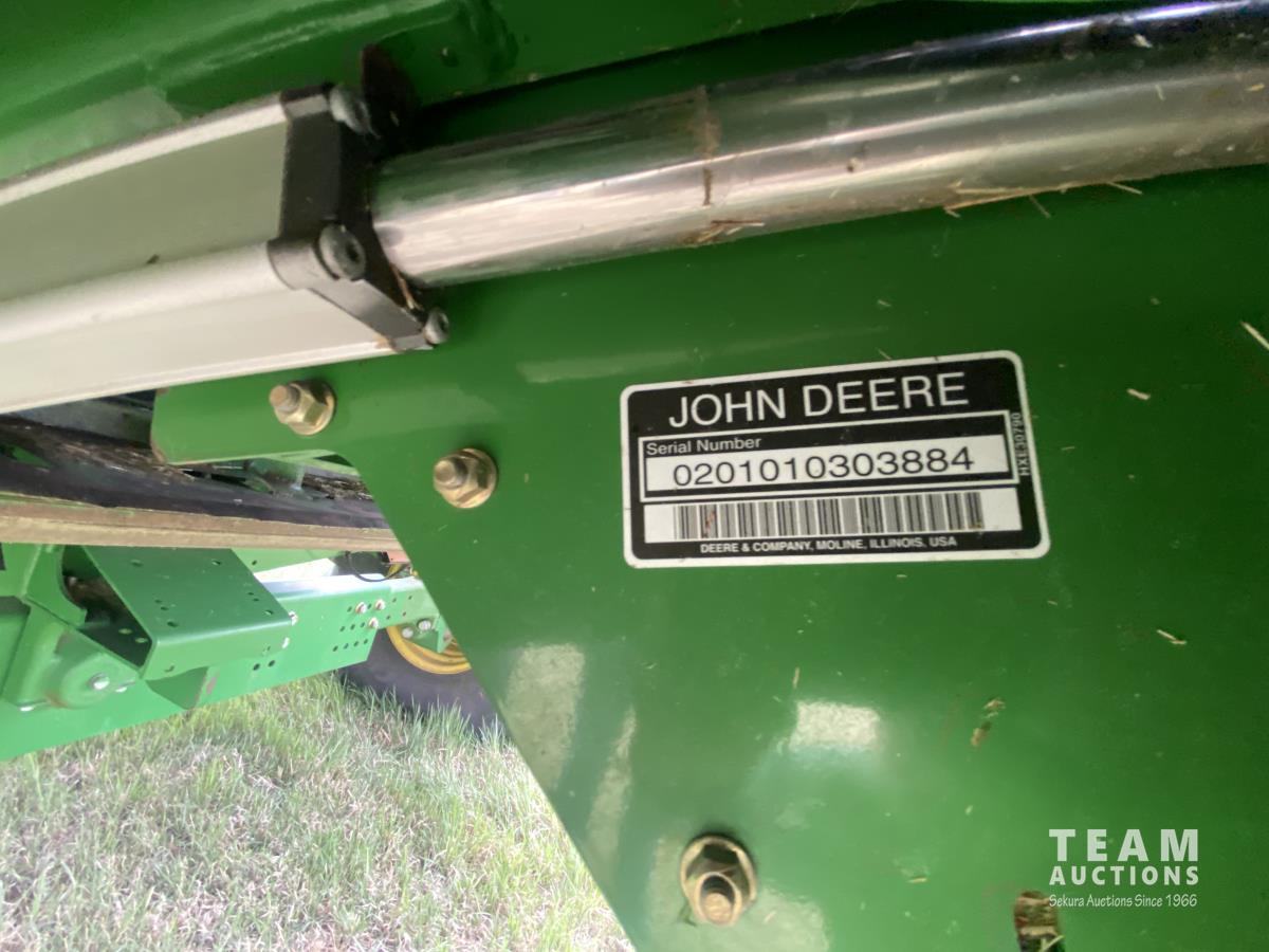 John Deere 615P pick-up header, variable speed reel, auto header height, fore & aft, reverser, lateral tilt, rock trap, chopper/straw spreader, grain tank extensions, A/C, radio, 520/85R42 front tires, duals, 750/65R26 rear tires