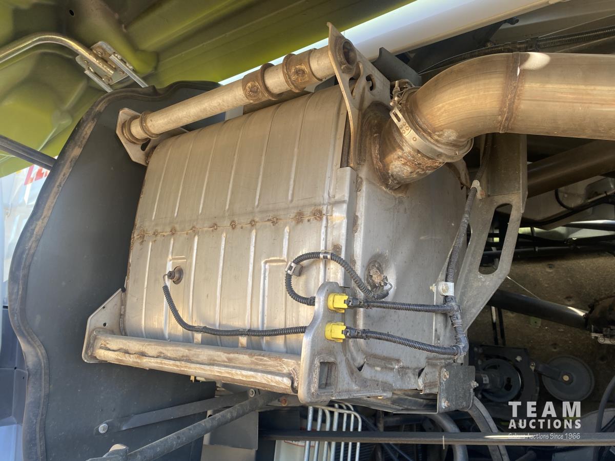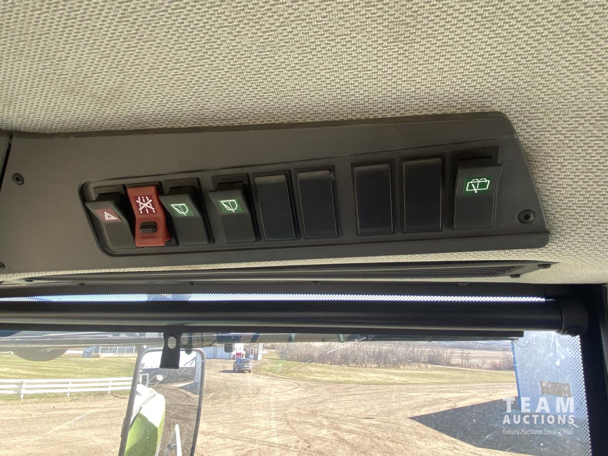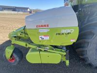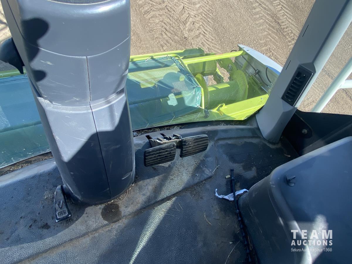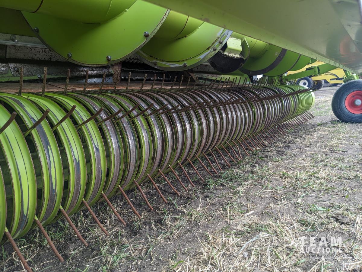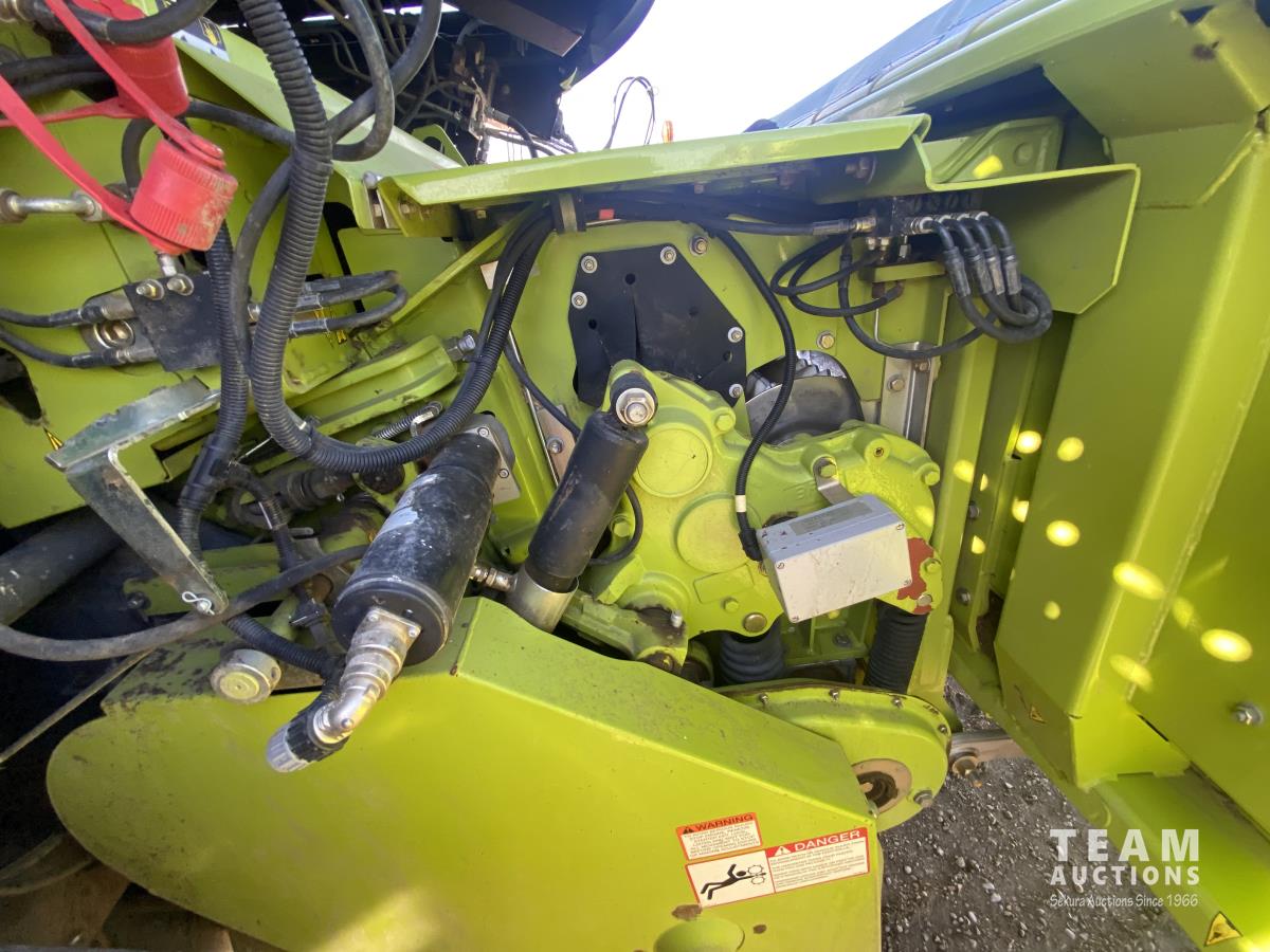 2015 Claas PU380HD 12 ft pickup, Mercedes OM470LA, 10.6 L, 6 cylinder, diesel engine, enclosed cab, A/C, air ride seat, hydrostatic drive, reverser, spout camera, metal detector, factory rock stopper, auto sharpening shear bar,18.5X8.5-8 pickup tires, 800/65R32 front, 16.5/85R24 rear