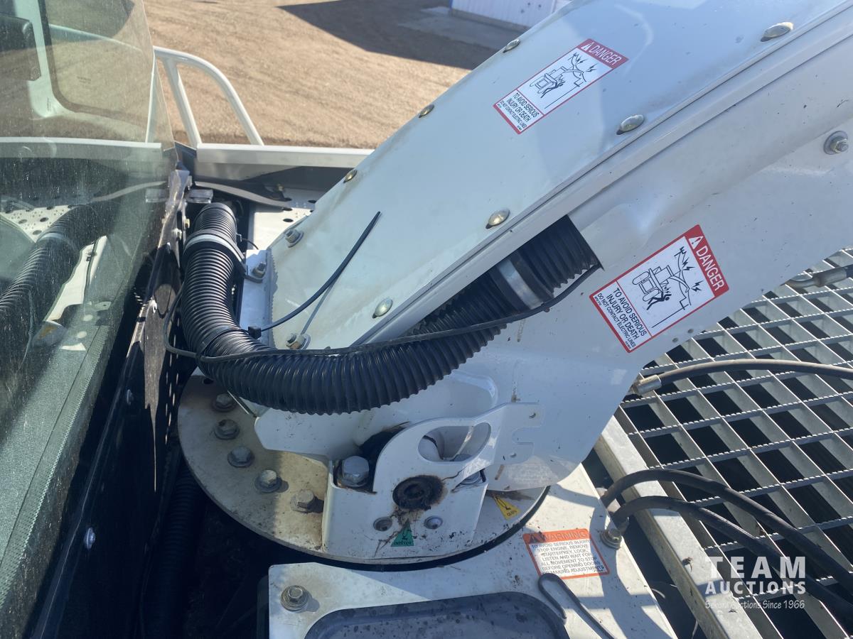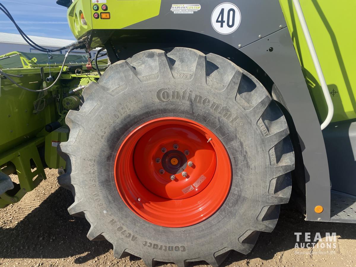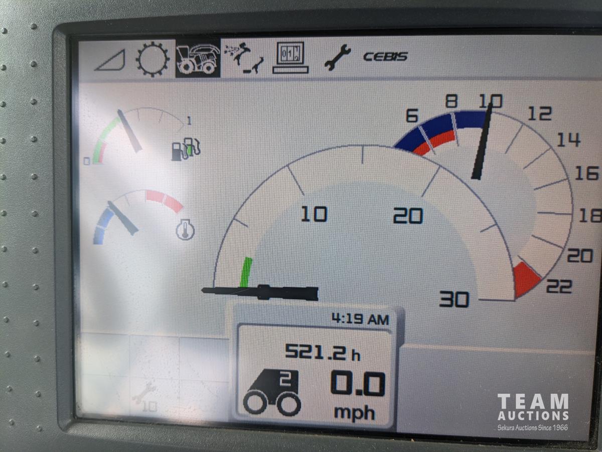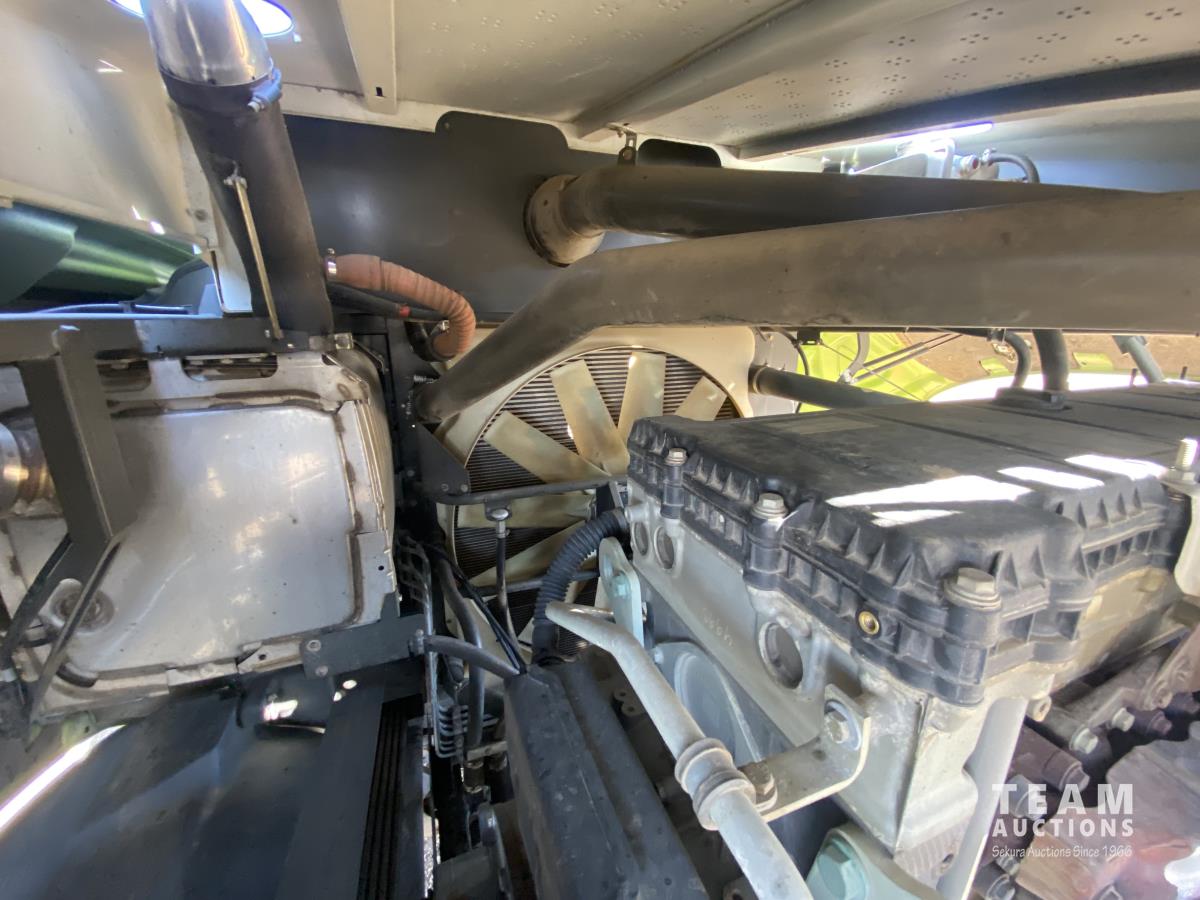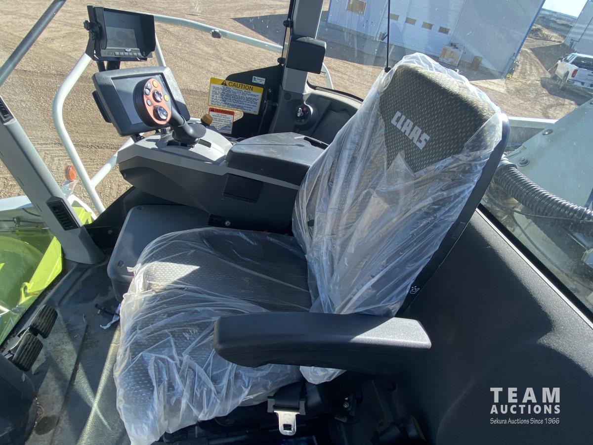 2015 Claas PU380HD 12 ft pickup, Mercedes OM470LA, 10.6 L, 6 cylinder, diesel engine, enclosed cab, A/C, air ride seat, hydrostatic drive, reverser, spout camera, metal detector, factory rock stopper, auto sharpening shear bar,18.5X8.5-8 pickup tires, 800/65R32 front, 16.5/85R24 rear