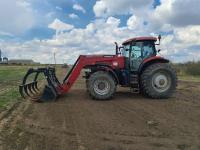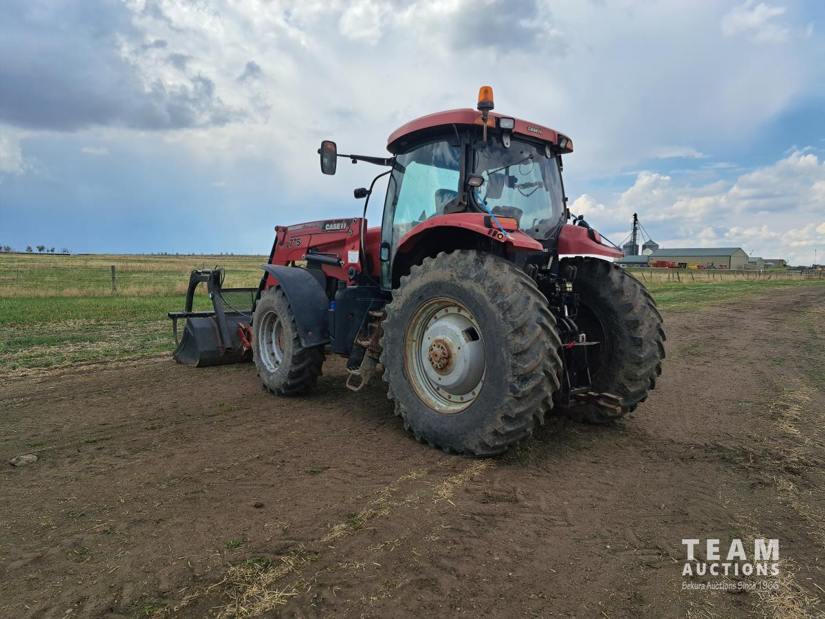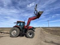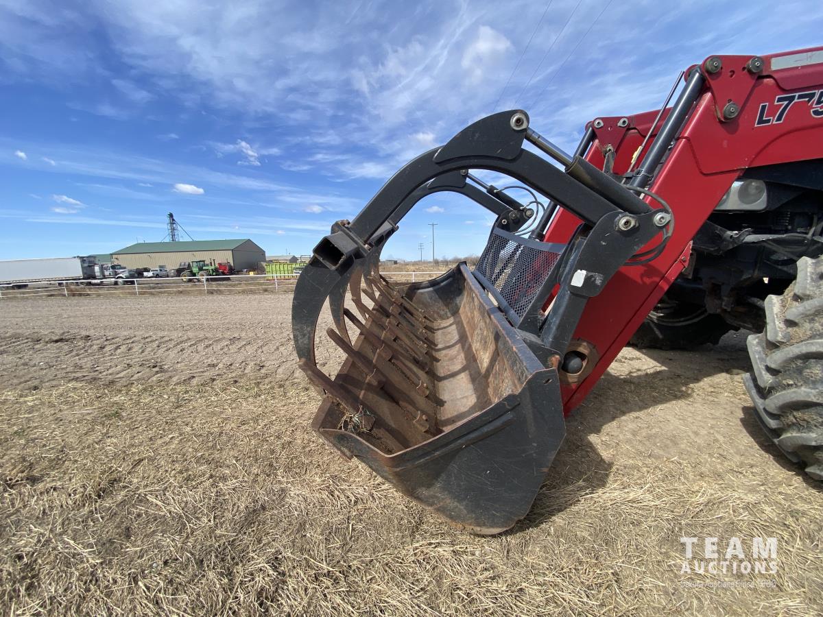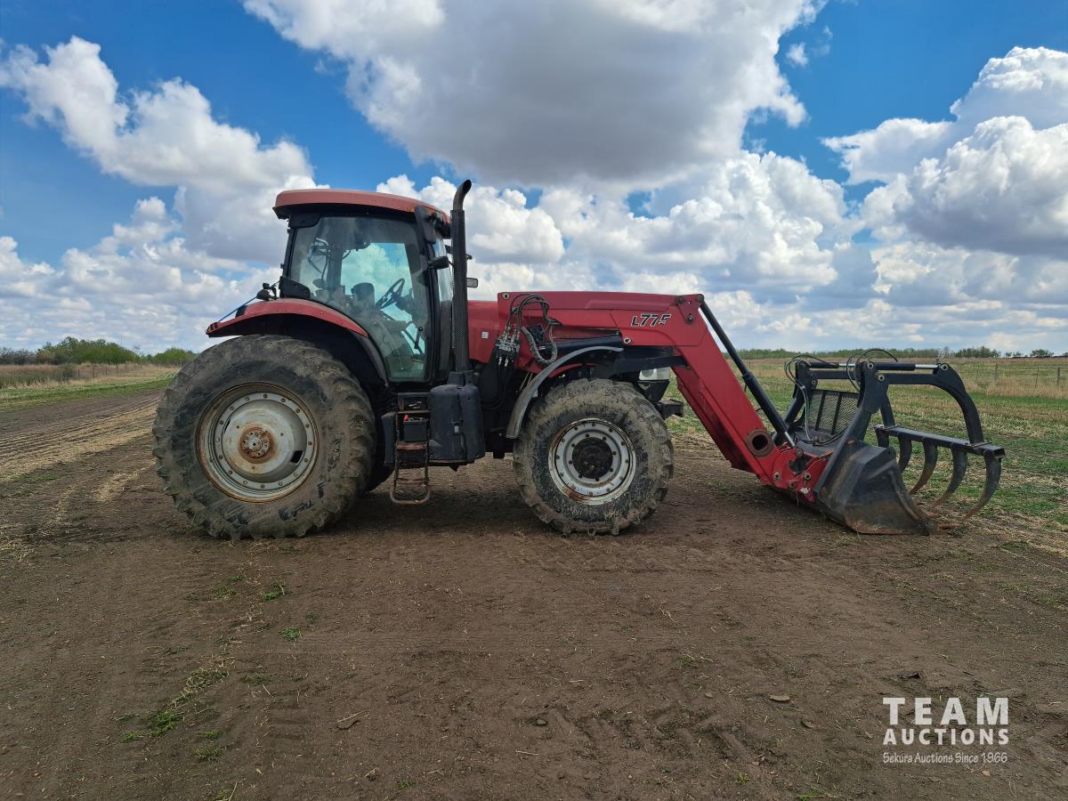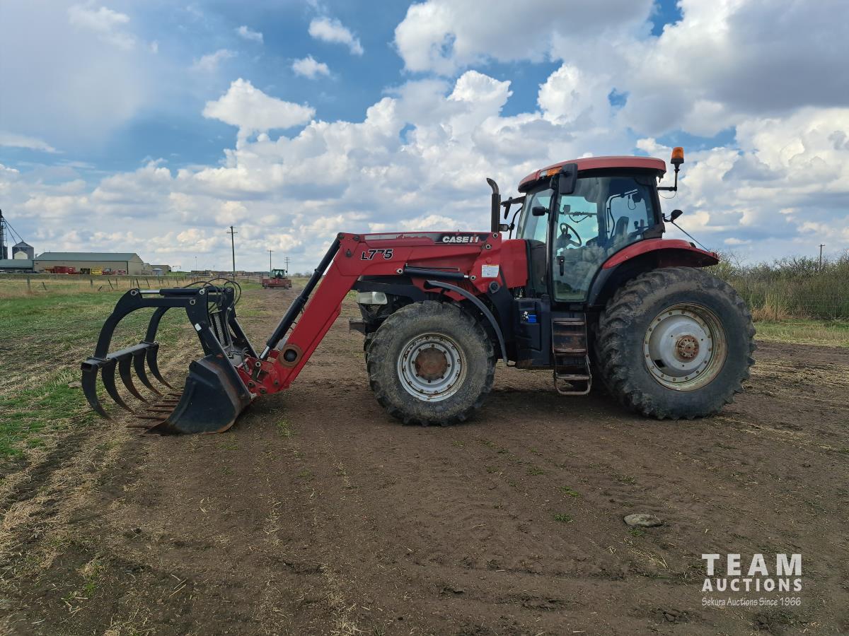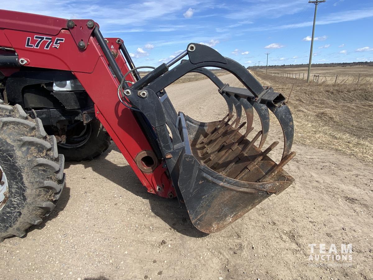 Case Ih L775 loader, Q/A, bucket, grapple, mid mount hydraulic connection, 6.7 L 6 cylinder 167 HP, diesel engine, 135 PTO HP, 18 speed power shift transmission, cab, ROPS, A/C, 540/1000 PTO, 3 point hitch, 3 rear hydraulic outlets, 420/85R28 front tires, 520/85R38 rear tires