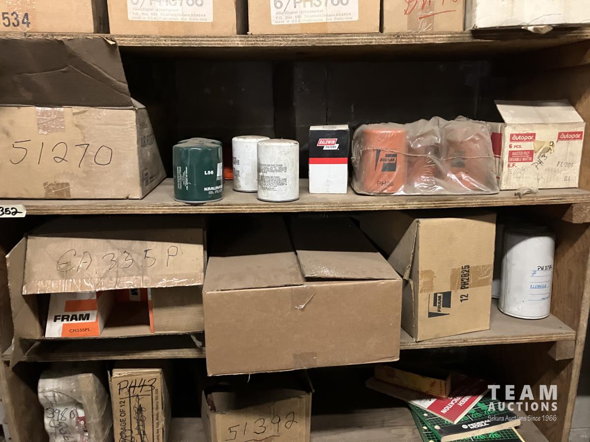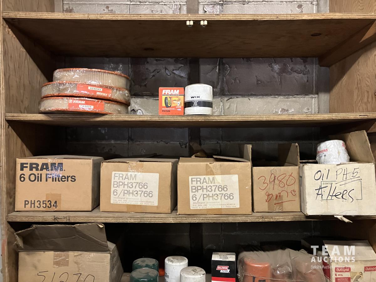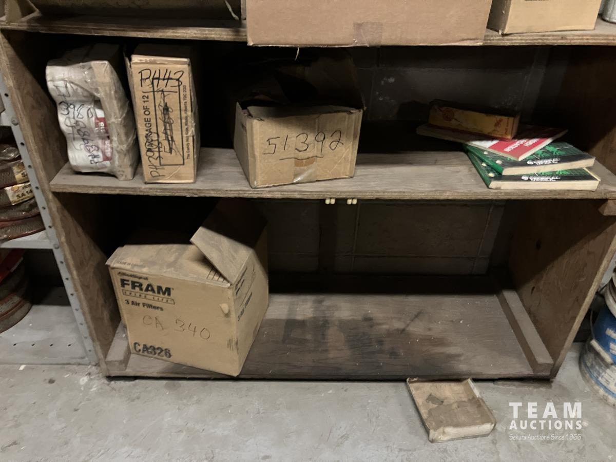 3039 Various Air Filters and Wooden Shelving Unit