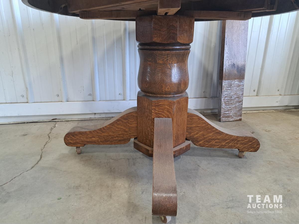 45 inch diameter, 7 inch leaves which extend the diameter to 66 inch