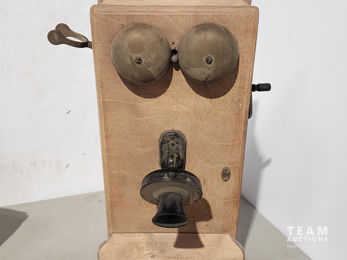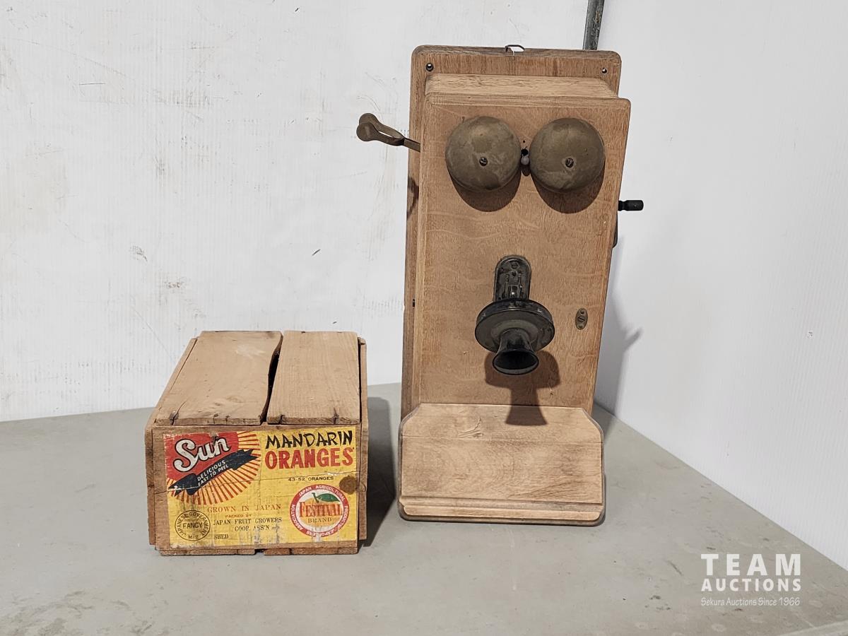 116 Antique Telephone and Wooden Sun Orange Box