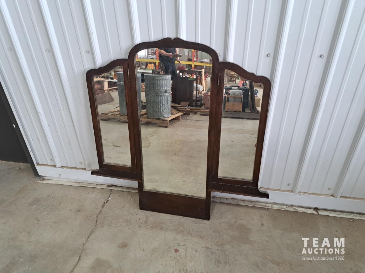64 Antique Tri-Fold Mirror