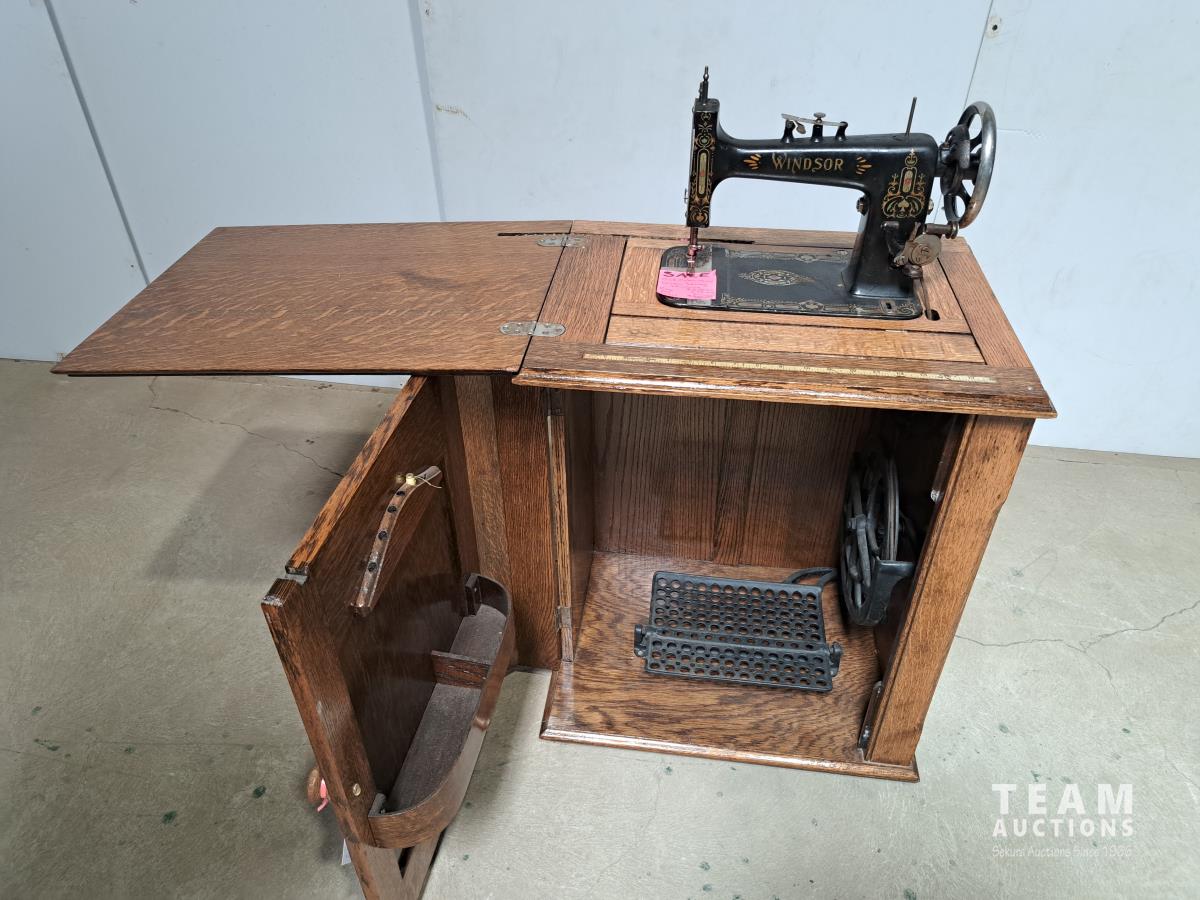 51 Antique Windsor Treadle Sewing Machine with Oak Cabinet