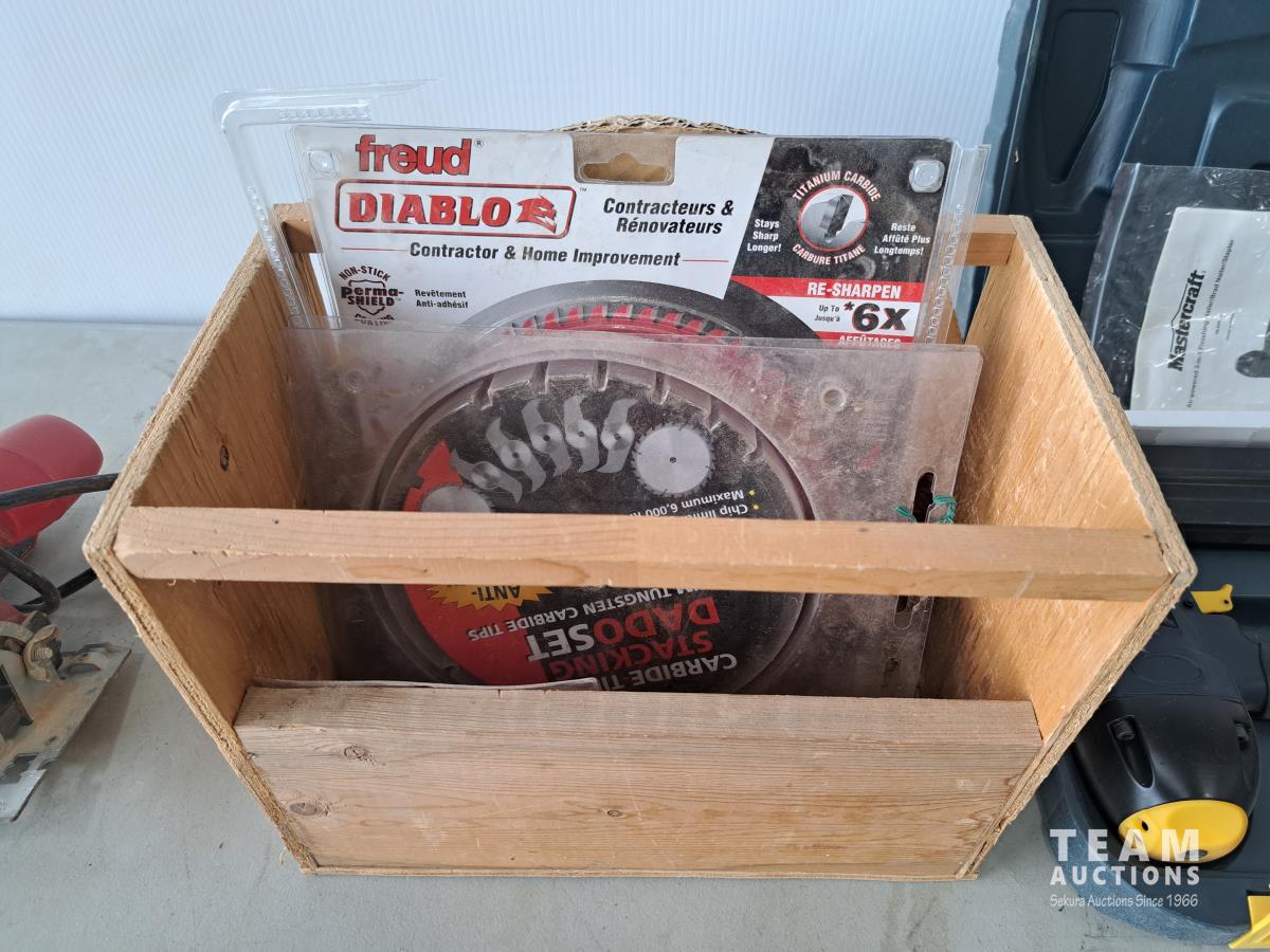 196 Dewalt Tilting Arbor Table Saw and Various Saw Blades