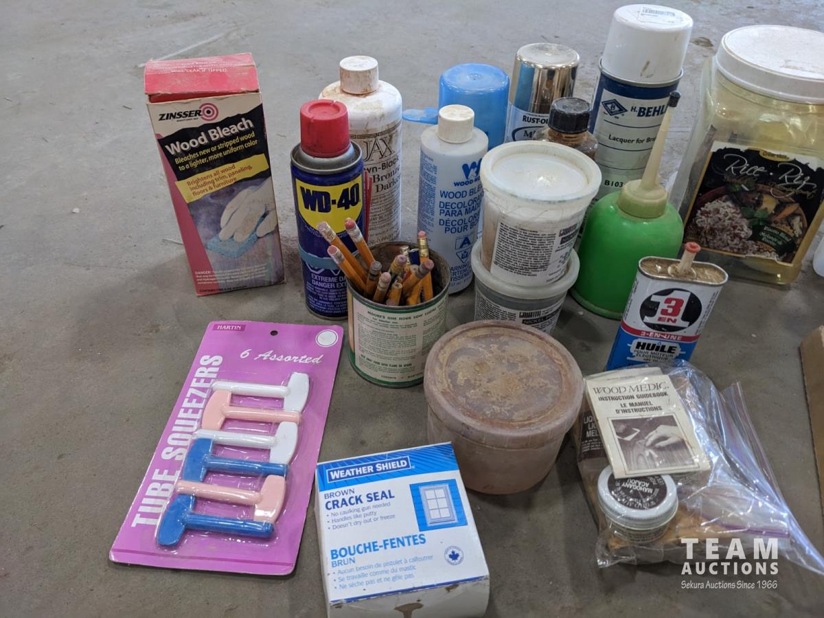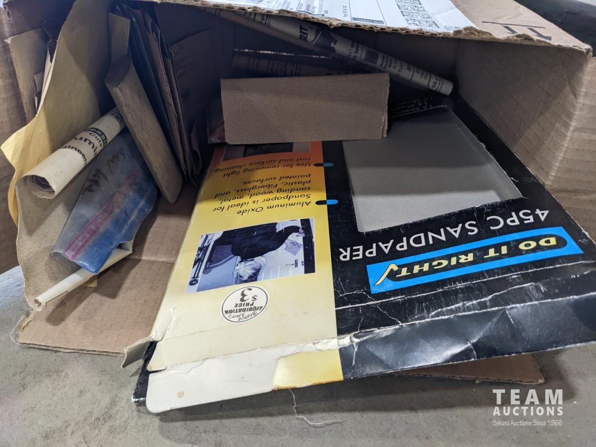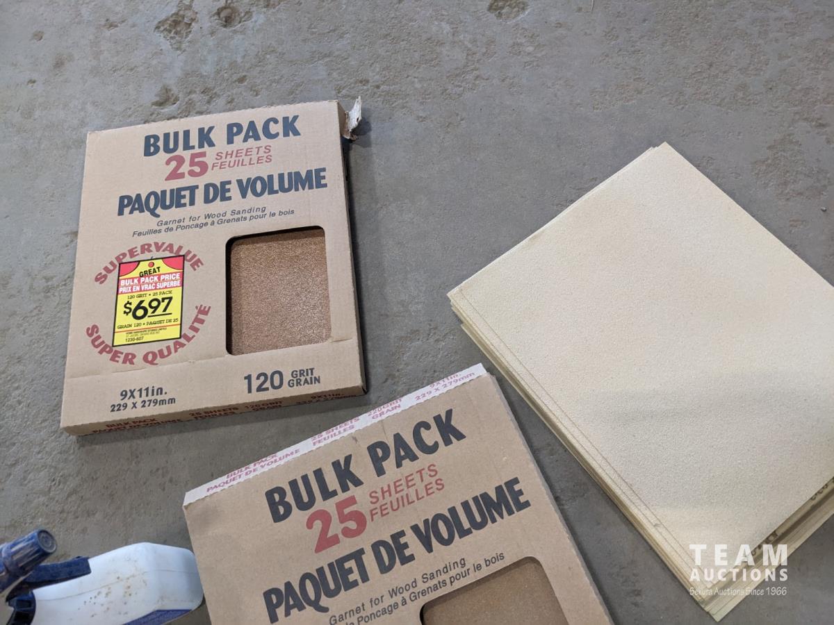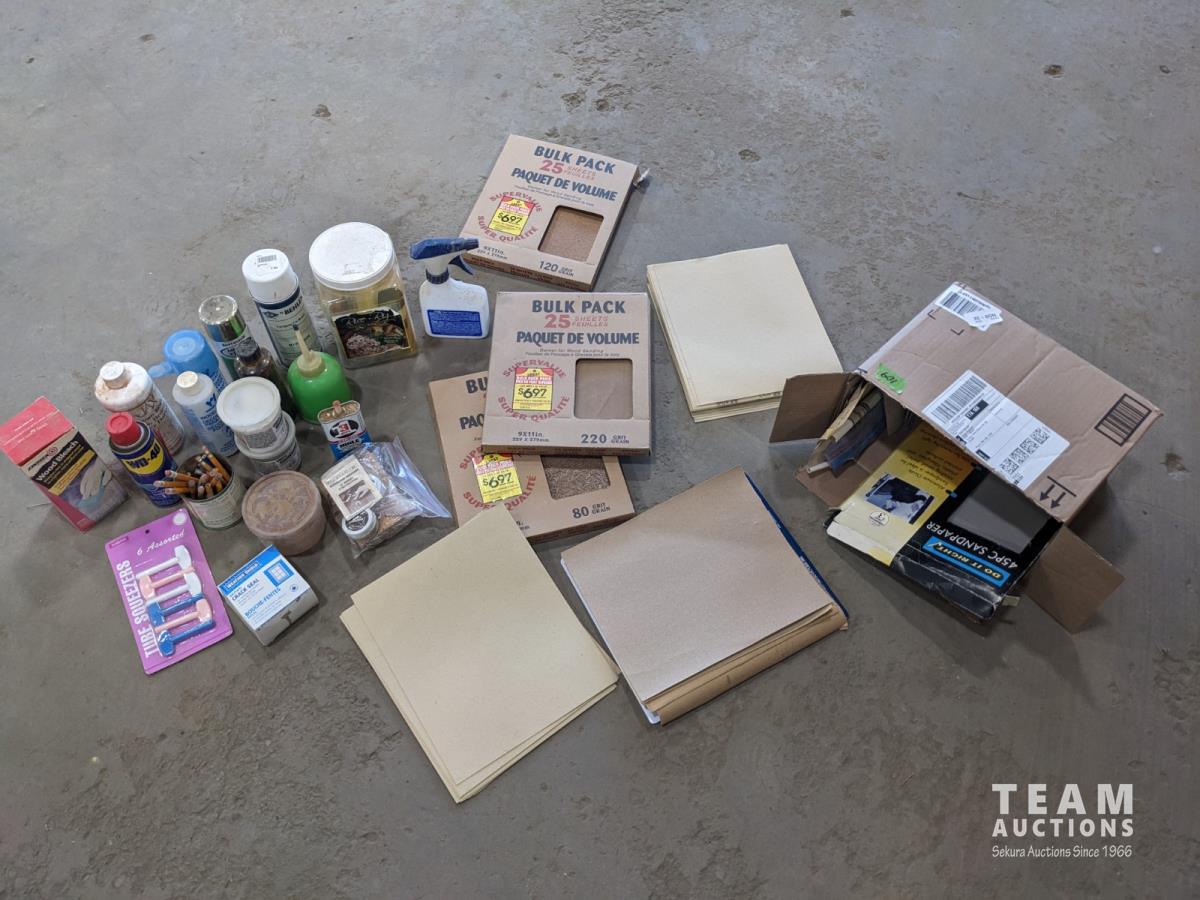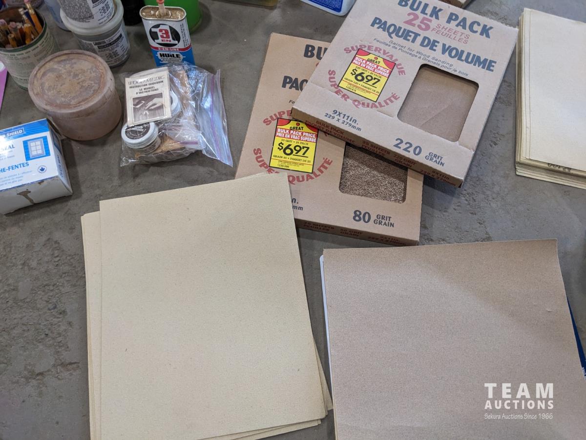 Sand paper, router bits, miscellaneous fluids