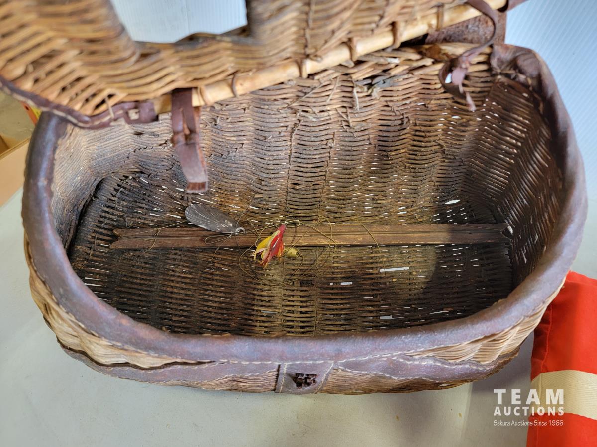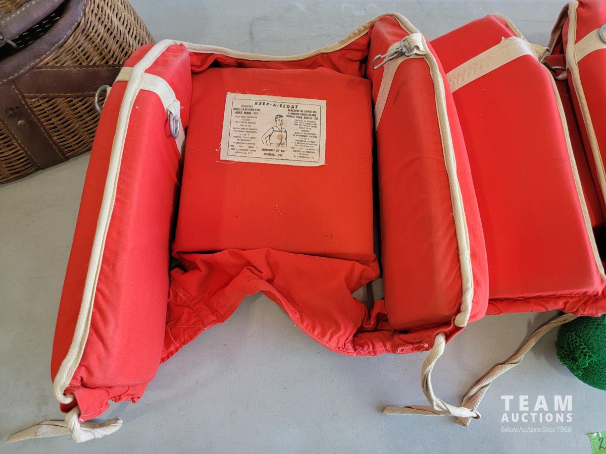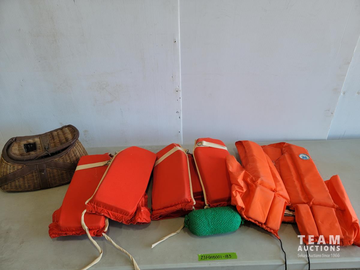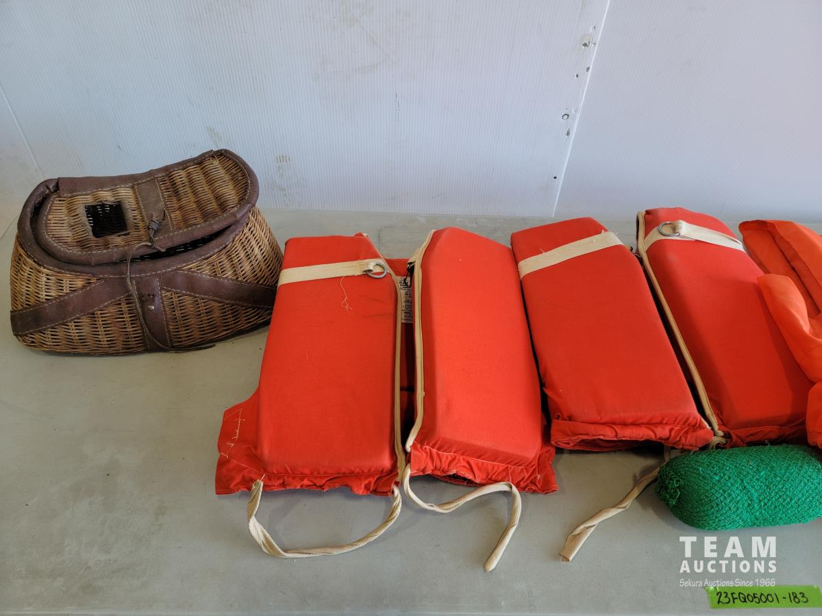 158 Vintage Wicker Fishing Creel and Life Jackets