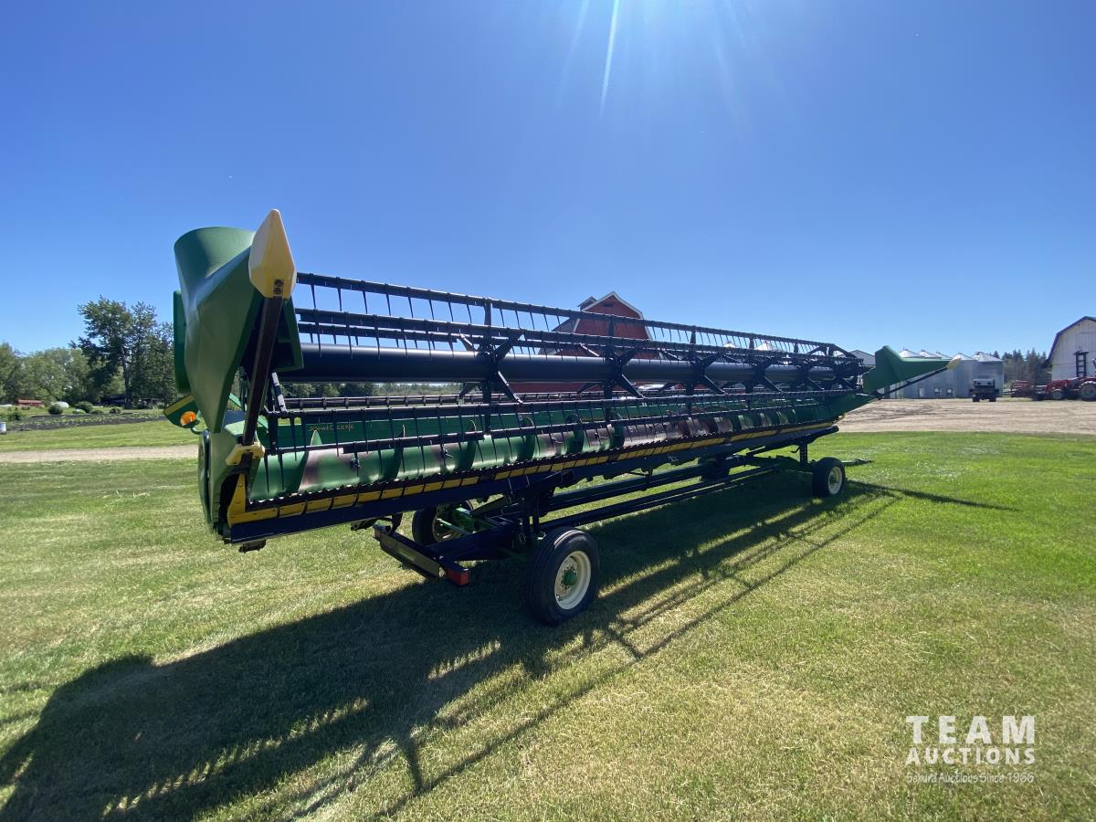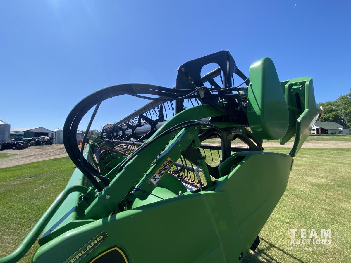 pickup reels, fore & aft, cross auger, poly skid plates, height control sensors, crop dividers, Horst transport, fits Later John Deere combines