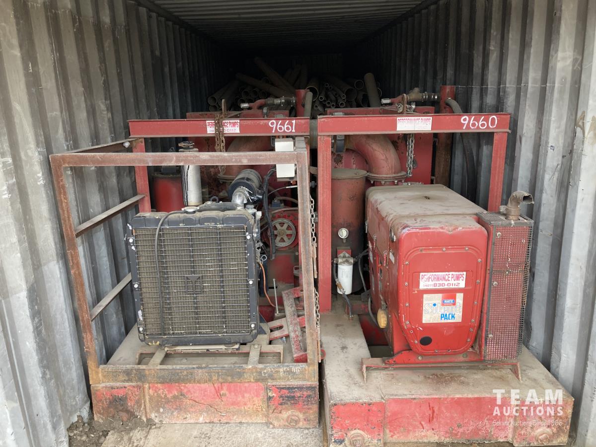 Pump Skid #1 - Isuzu 3 liter, 4 cylinder diesel engine with 7.5 inch pump Pump Skid #2 - Hatz 4 liter, 4 cylinder diesel engine with 7.5 inch pump Various lengths and diameter hose and PVC pipe used to remove water, well points, accessories