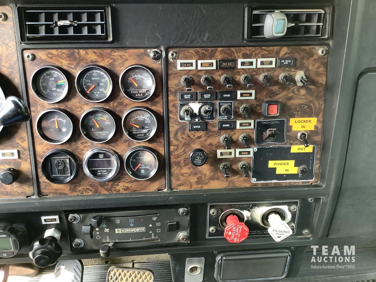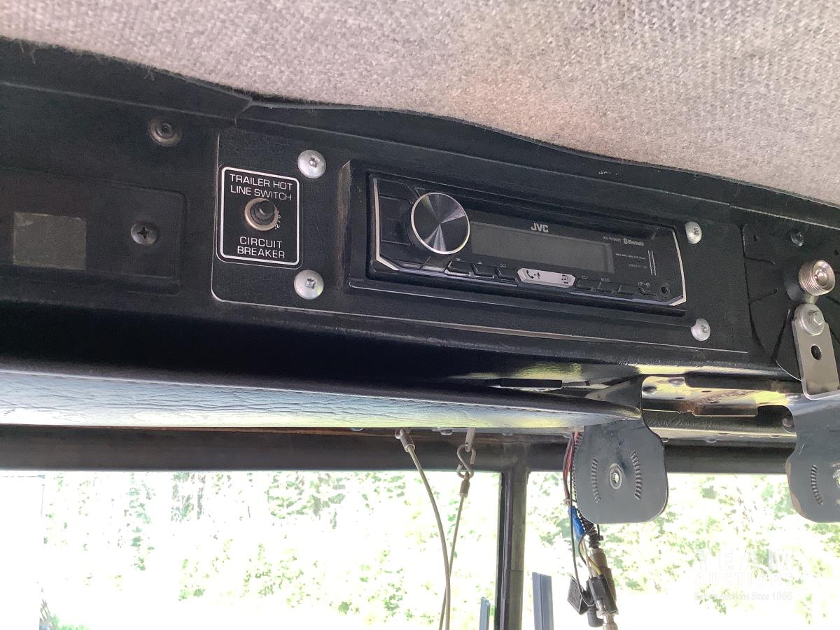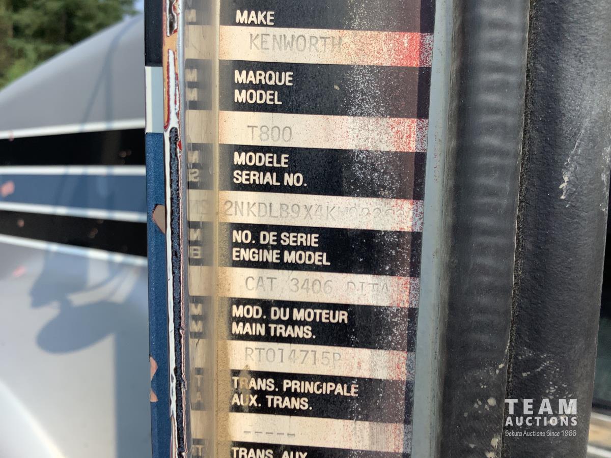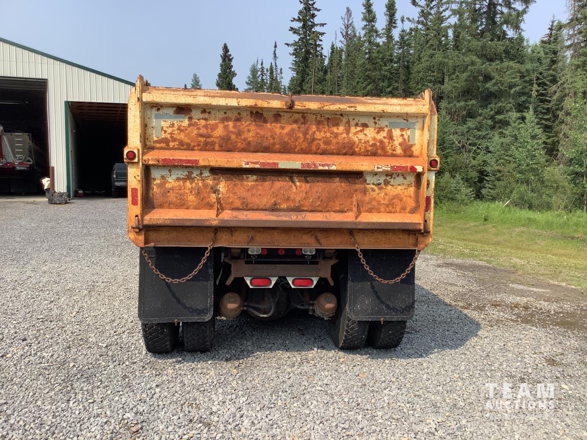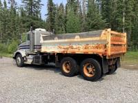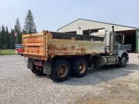 Caterpillar C15 3406B engine, Engine Pro engine heater, engine brake, Eaton Fuller 15 speed manual transmission, cab heater, Henderson rubber block suspension, 12,000 lb front axle, 40,000 lb rear axles, diff lock, engine pro heater, master switches, toolbox, rear trailer air supply valve, 15 ft steel box with Teflon liner, air shift PTO in cab controller, 11R24.5 rear tires