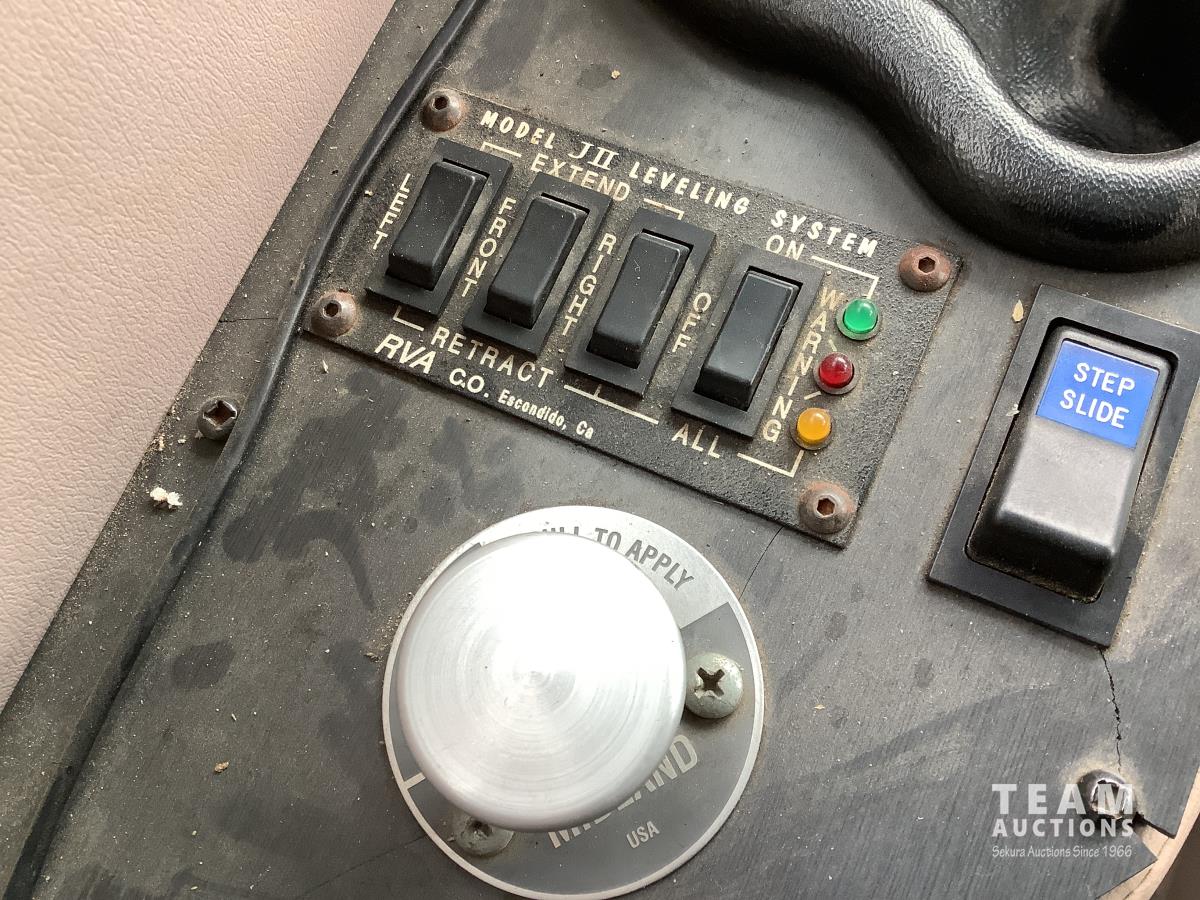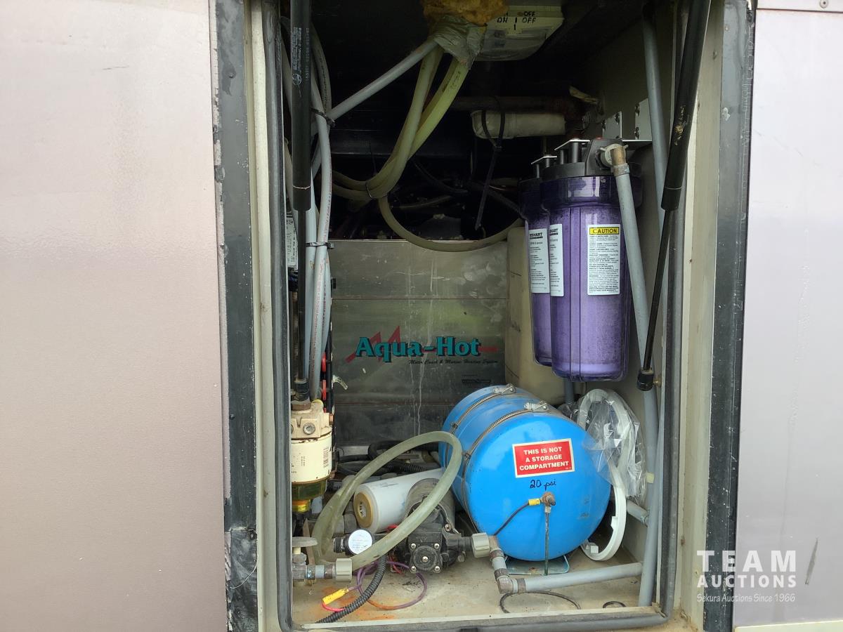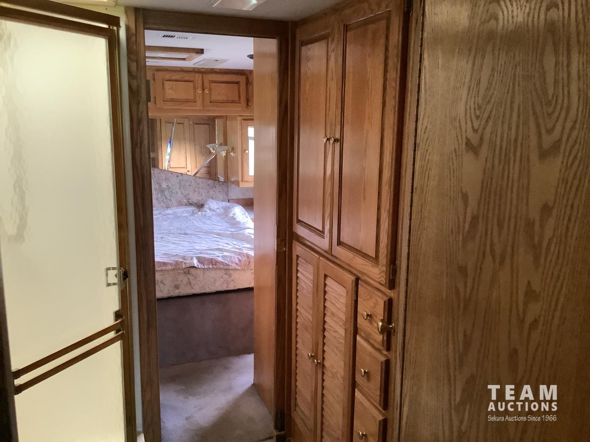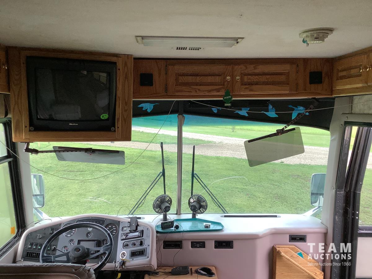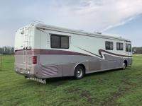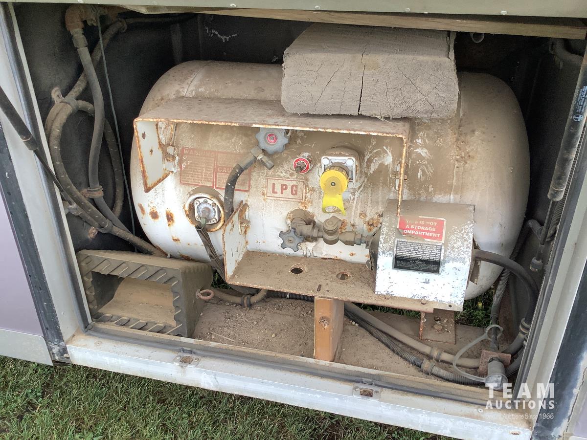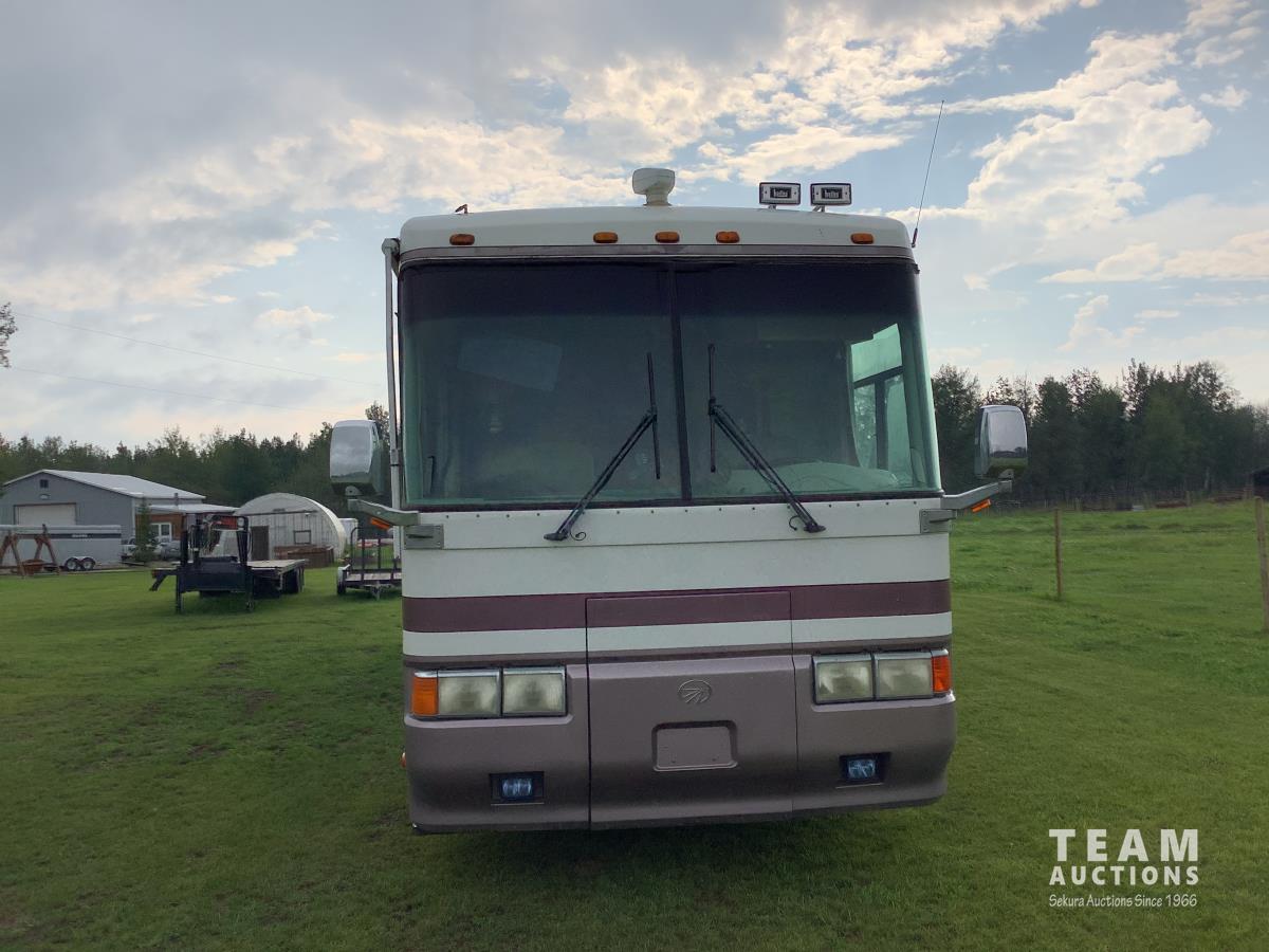 Cummins engine, Allison automatic transmission, Onan Marquis 6500 LP 54 amp power plant, 1 slide out, hydraulic levelling system, back up camera, air ride suspension, lots of manuals, awnings, bathroom, fridge stove microwave, rear bedroom, rear tow receiver hitch, good 22.5 inch tires on aluminum rims, Note: Not able to license this unit
