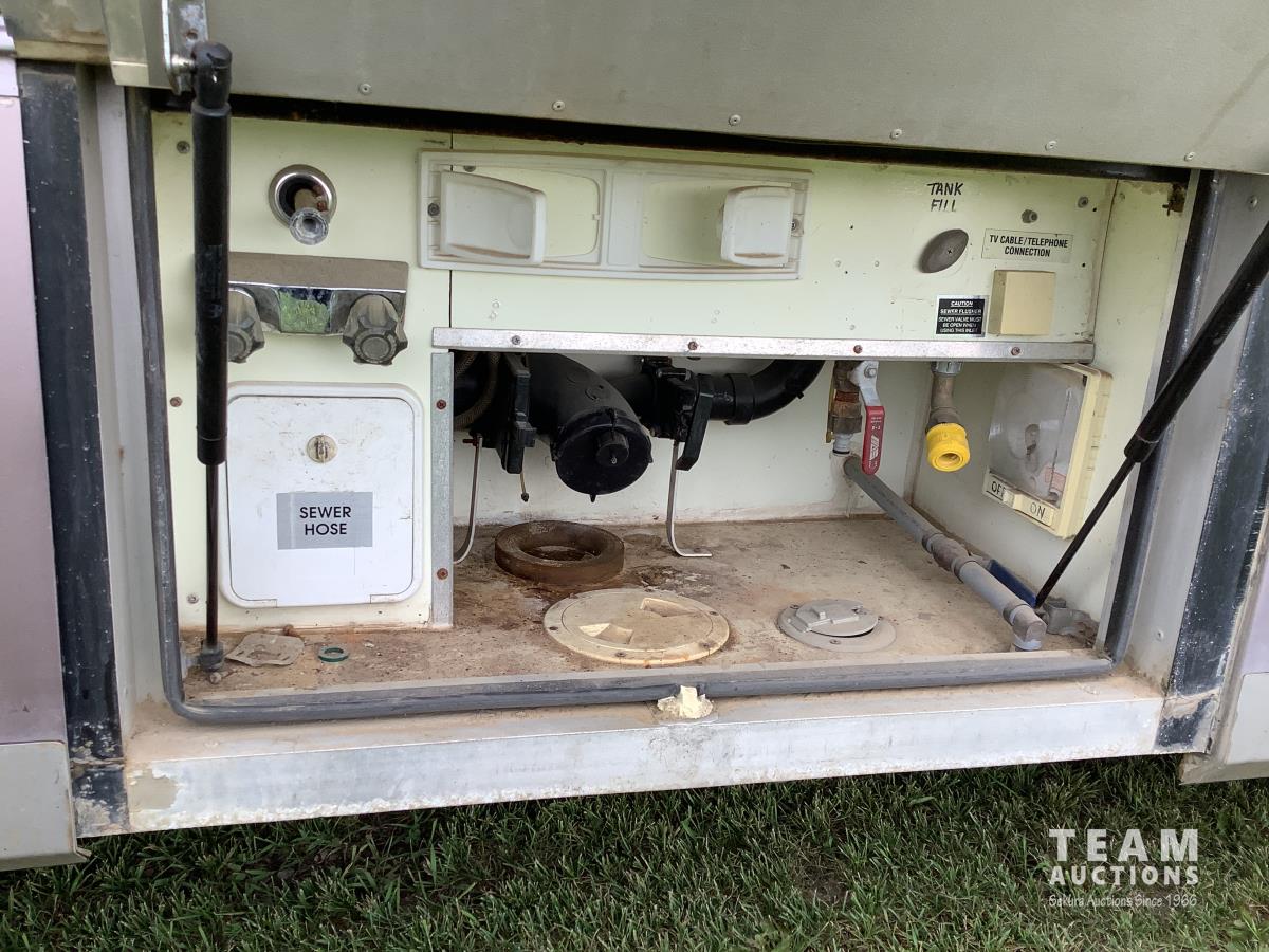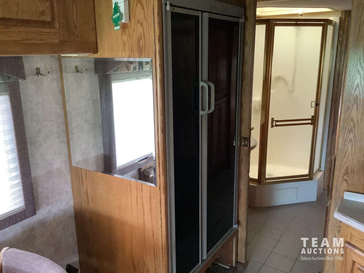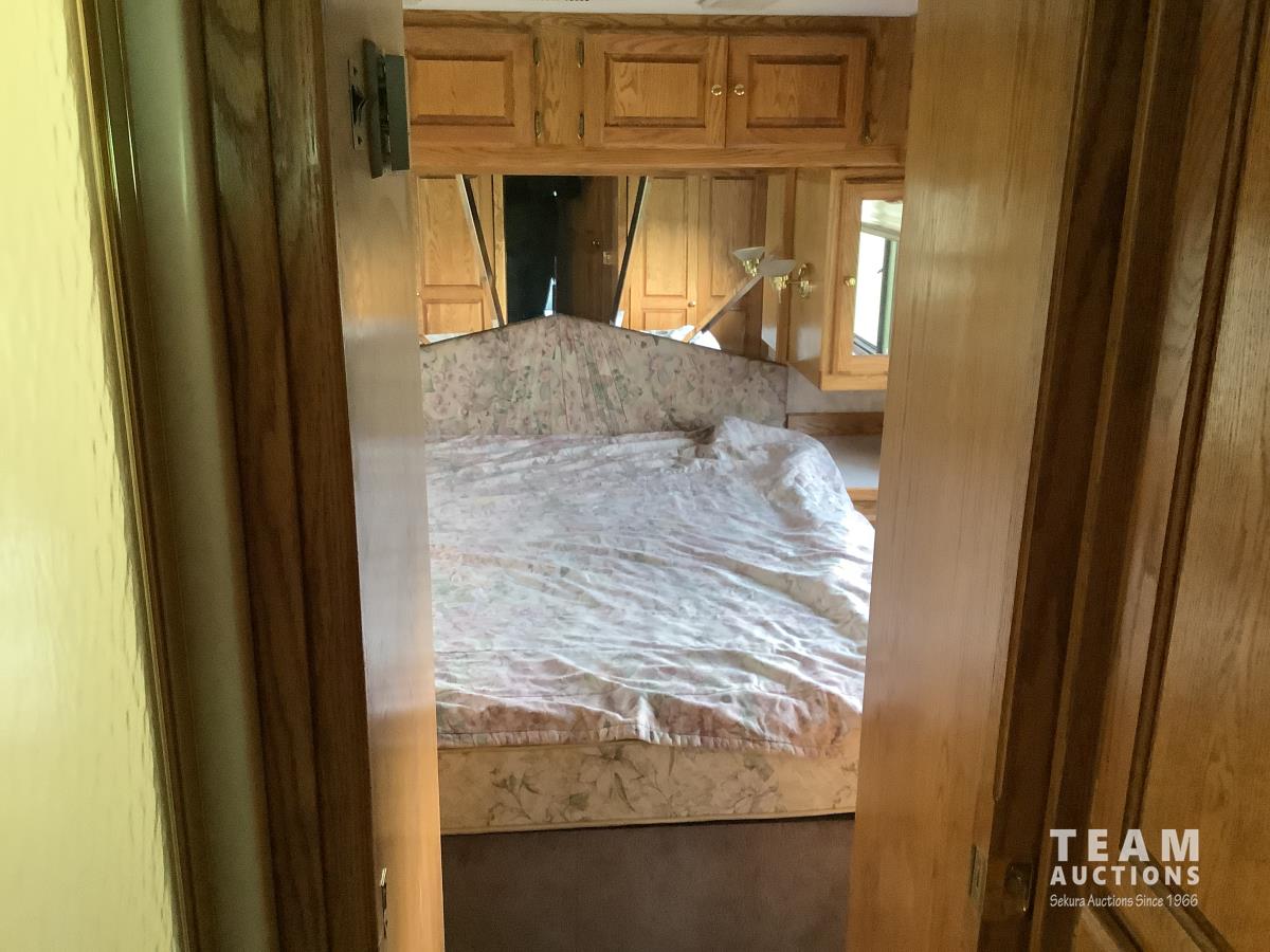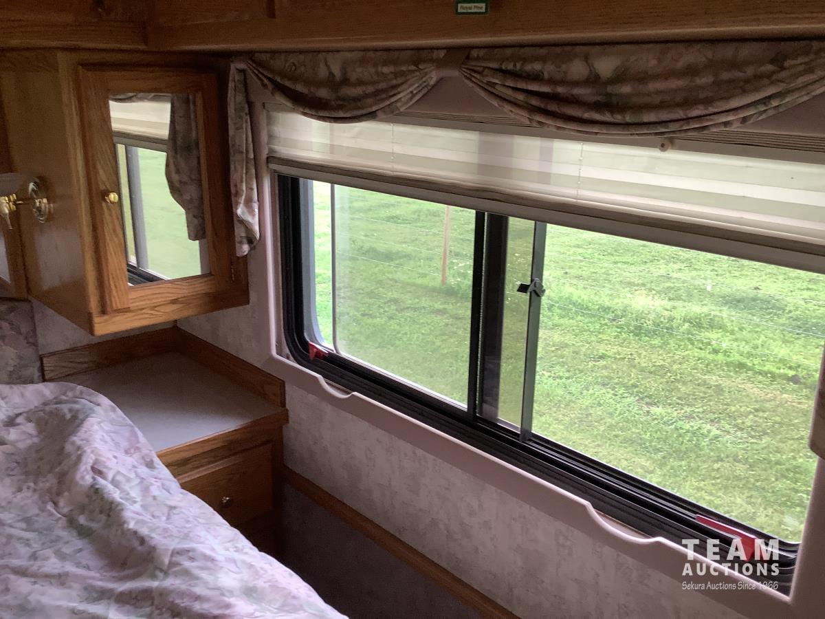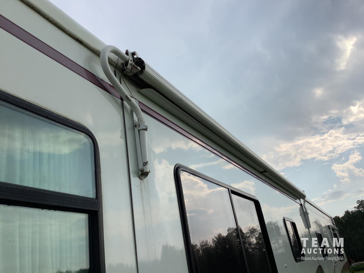 Cummins engine, Allison automatic transmission, Onan Marquis 6500 LP 54 amp power plant, 1 slide out, hydraulic levelling system, back up camera, air ride suspension, lots of manuals, awnings, bathroom, fridge stove microwave, rear bedroom, rear tow receiver hitch, good 22.5 inch tires on aluminum rims, Note: Not able to license this unit