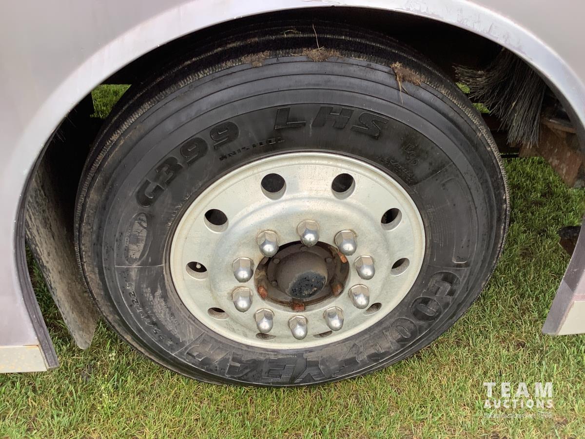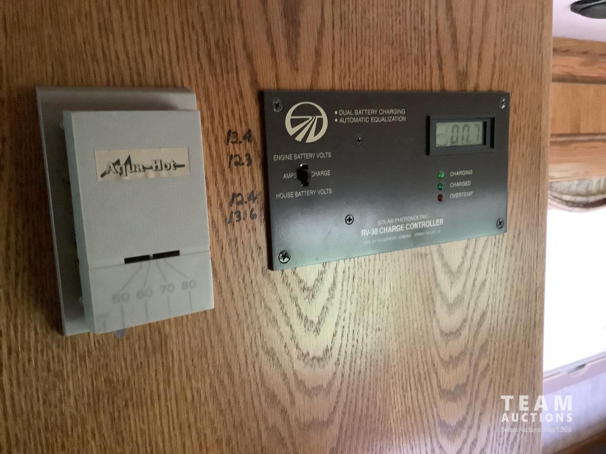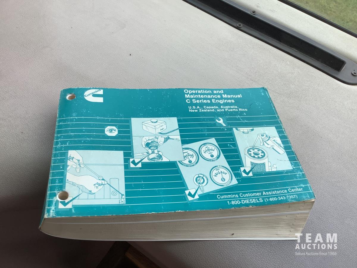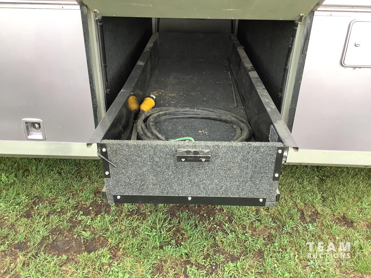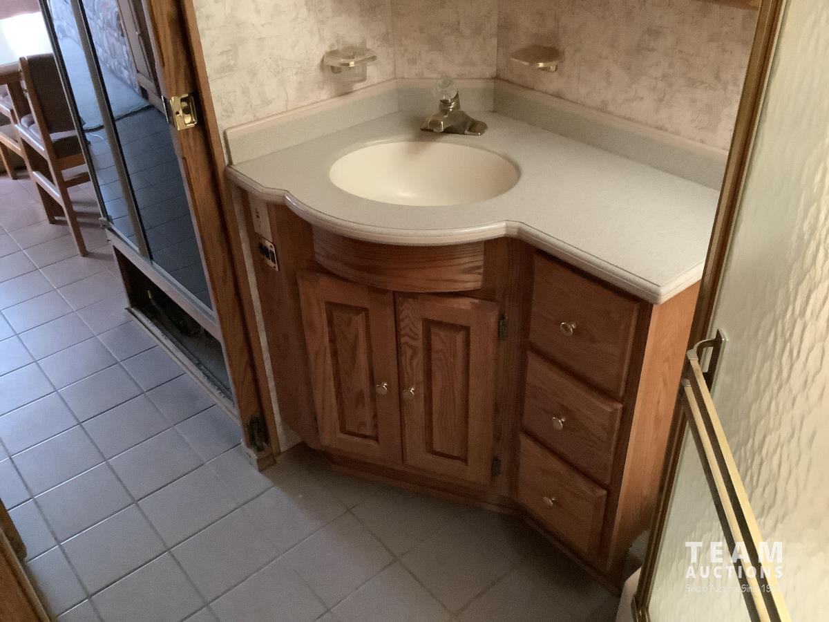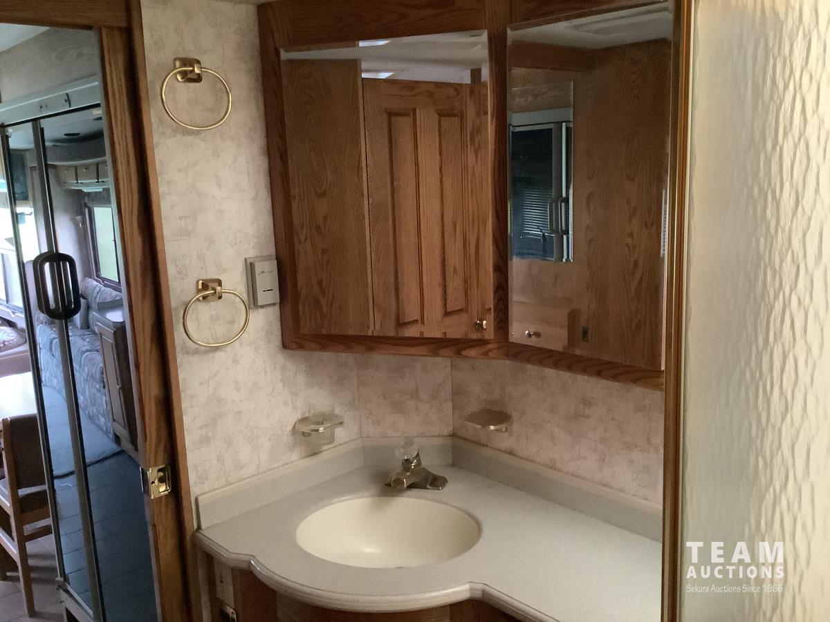 Cummins engine, Allison automatic transmission, Onan Marquis 6500 LP 54 amp power plant, 1 slide out, hydraulic levelling system, back up camera, air ride suspension, lots of manuals, awnings, bathroom, fridge stove microwave, rear bedroom, rear tow receiver hitch, good 22.5 inch tires on aluminum rims, Note: Not able to license this unit