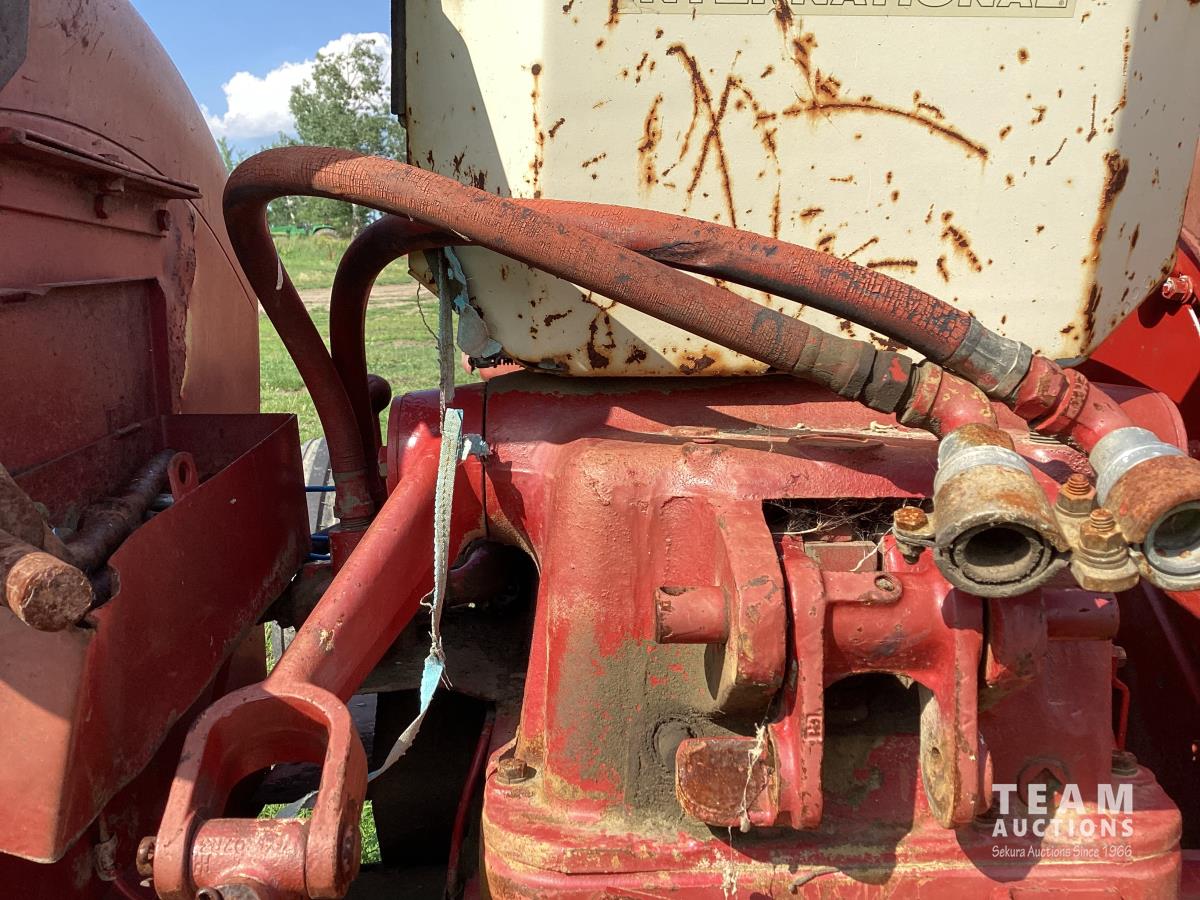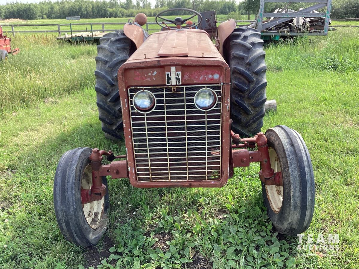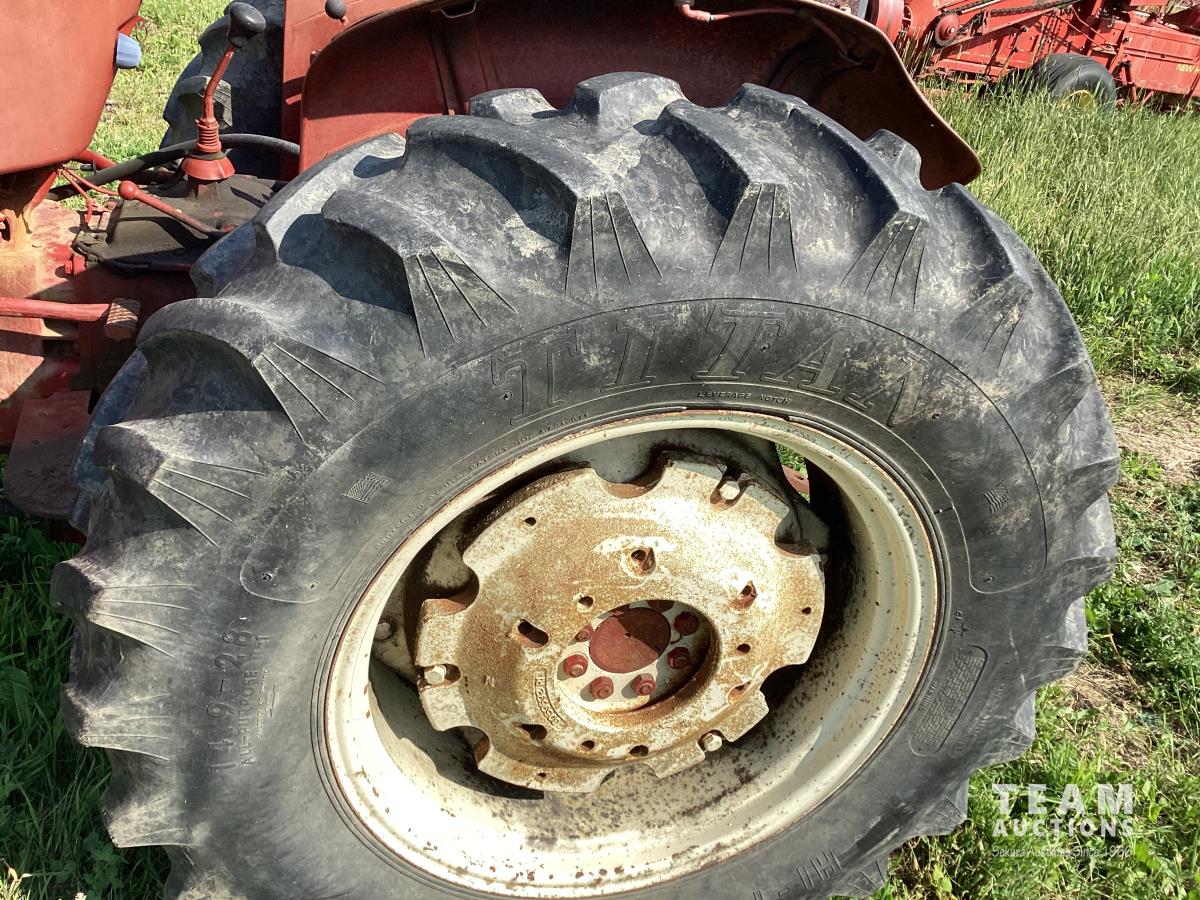 International 2.5 L 4 cylinder 43 HP, gas engine, 8 speed manual transmission, 540 PTO, 3 point hitch, 1 rear hydraulic outlets, 14.9-28 rear tires