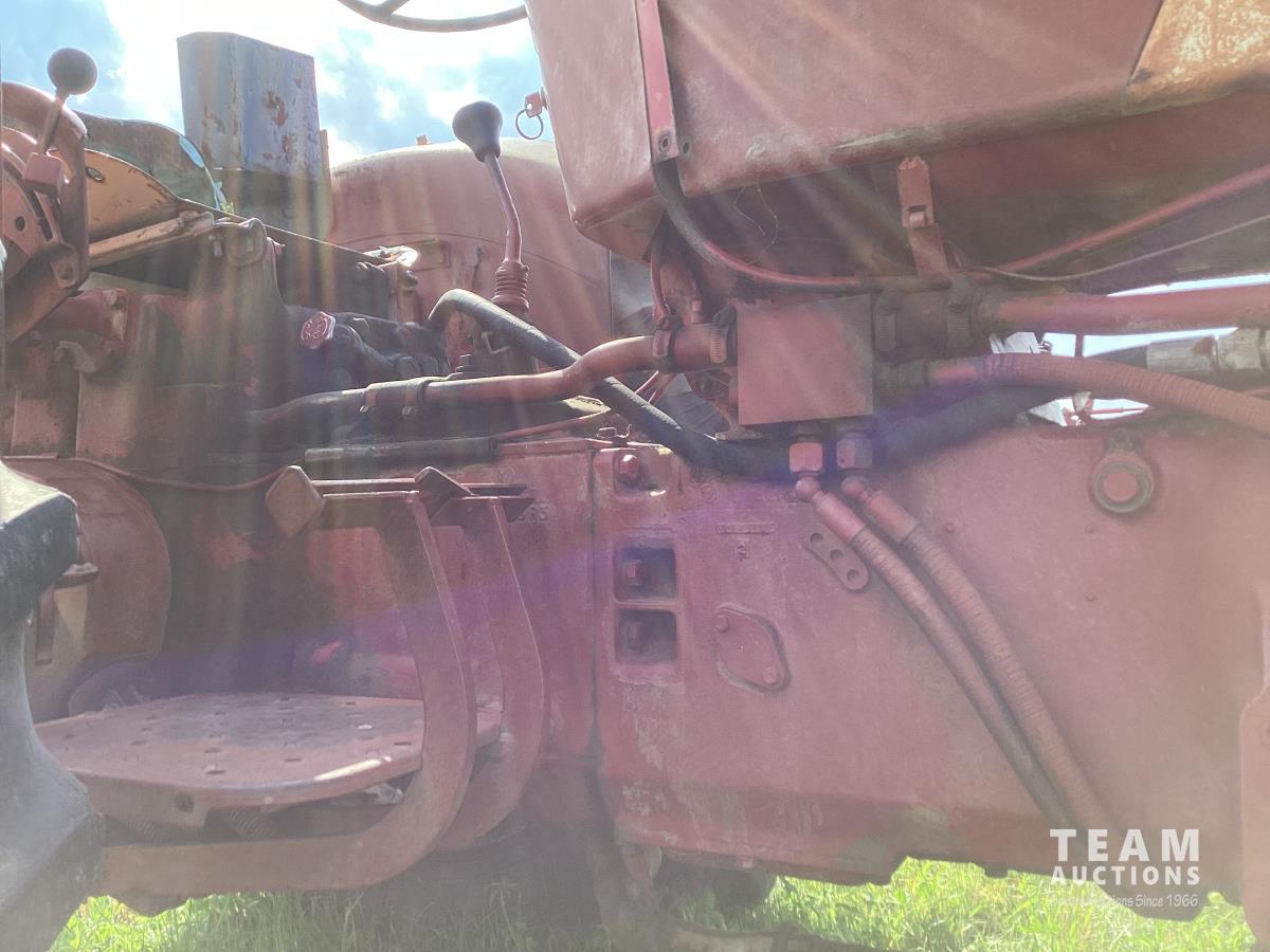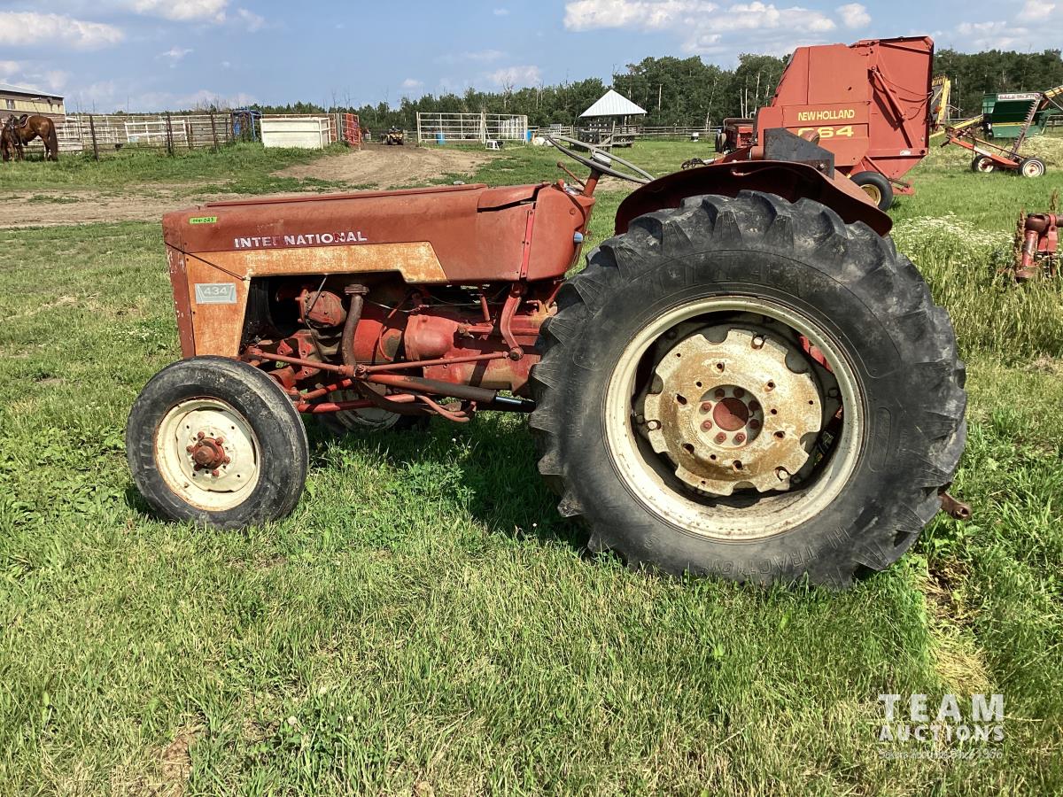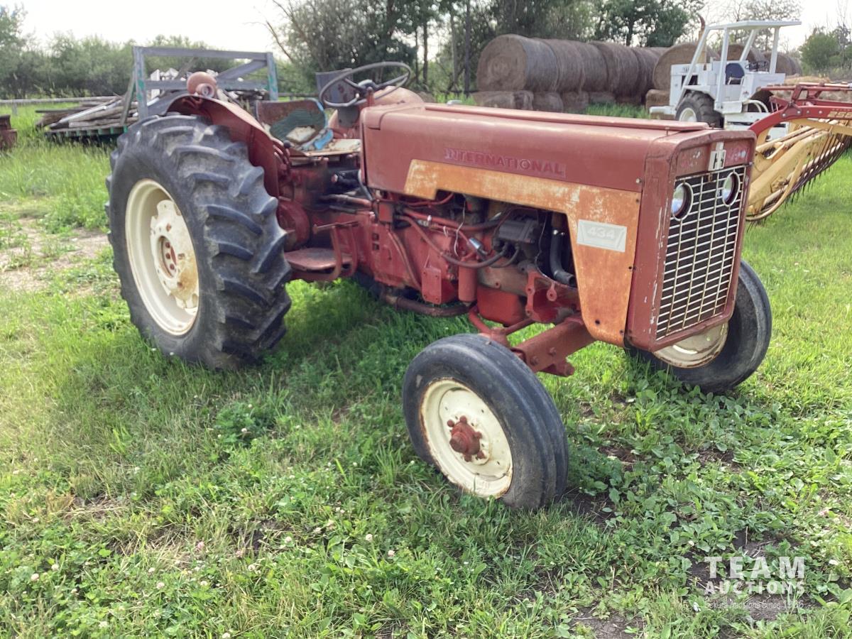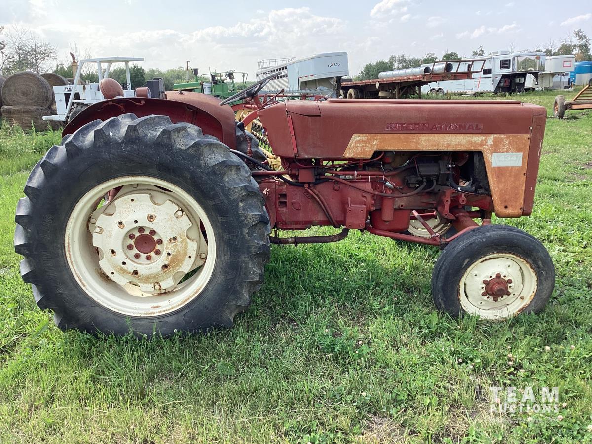 International 2.5 L 4 cylinder 43 HP, gas engine, 8 speed manual transmission, 540 PTO, 3 point hitch, 1 rear hydraulic outlets, 14.9-28 rear tires