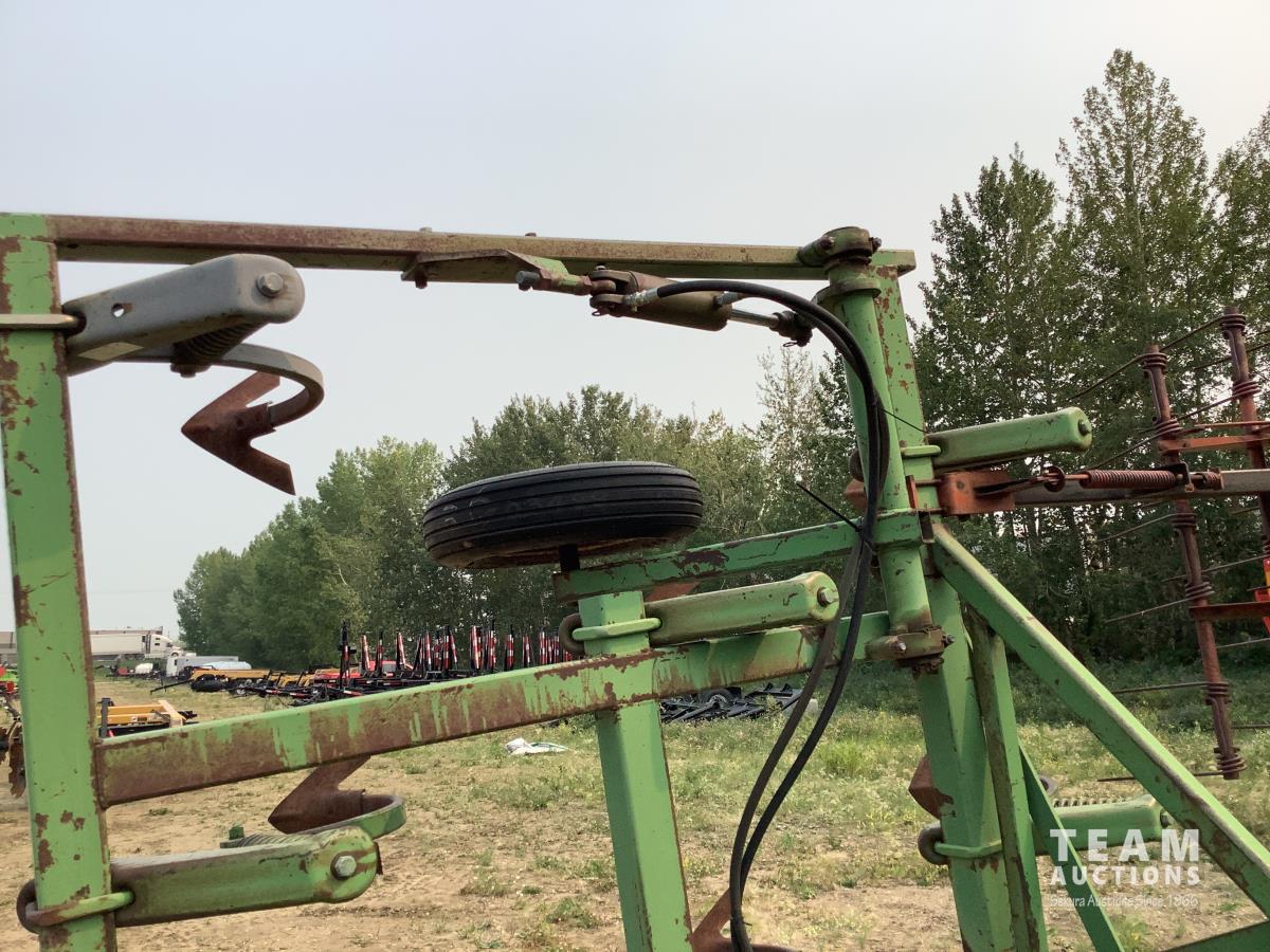 12 inch spacing, sweeps, hydraulic lift cylinder, 4 bar mounted harrows