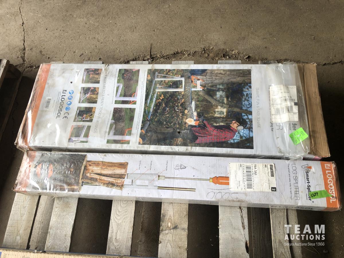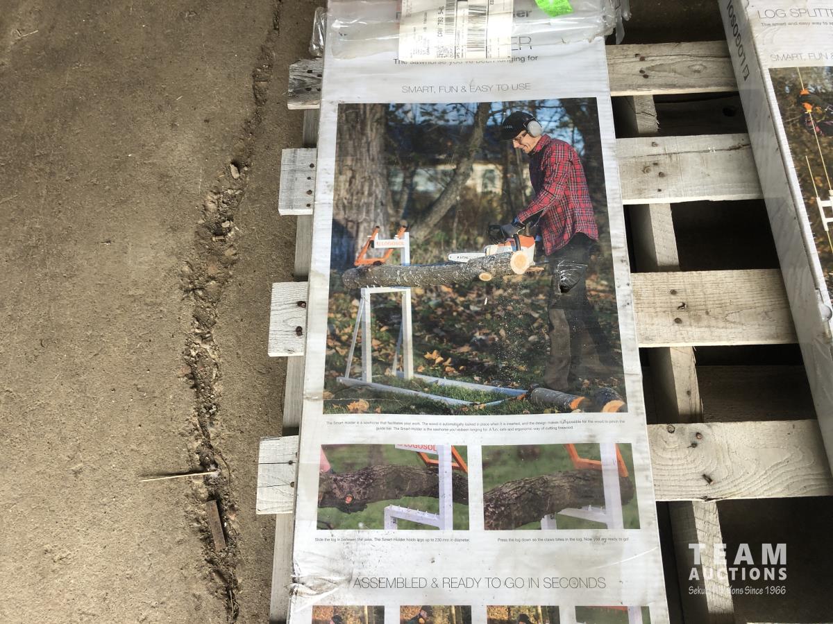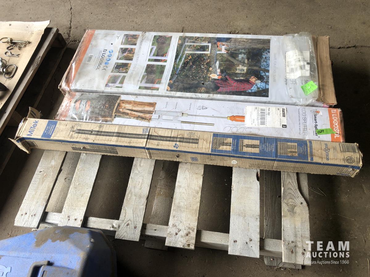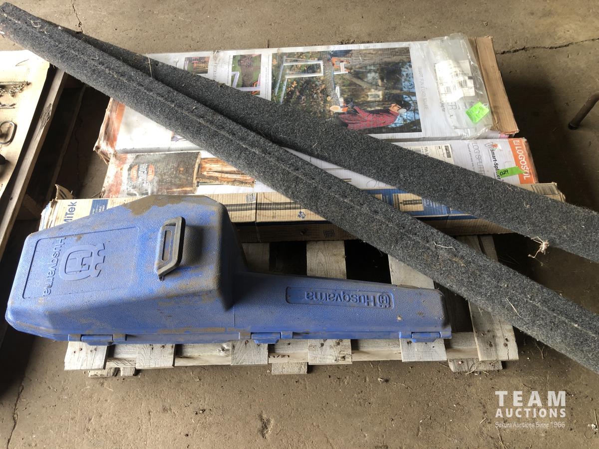 Husqvarna chain saw case, V -Smart log Splitter (unused), Smart Log Holder (unused), (2) boat supports, Adjustable support post