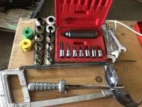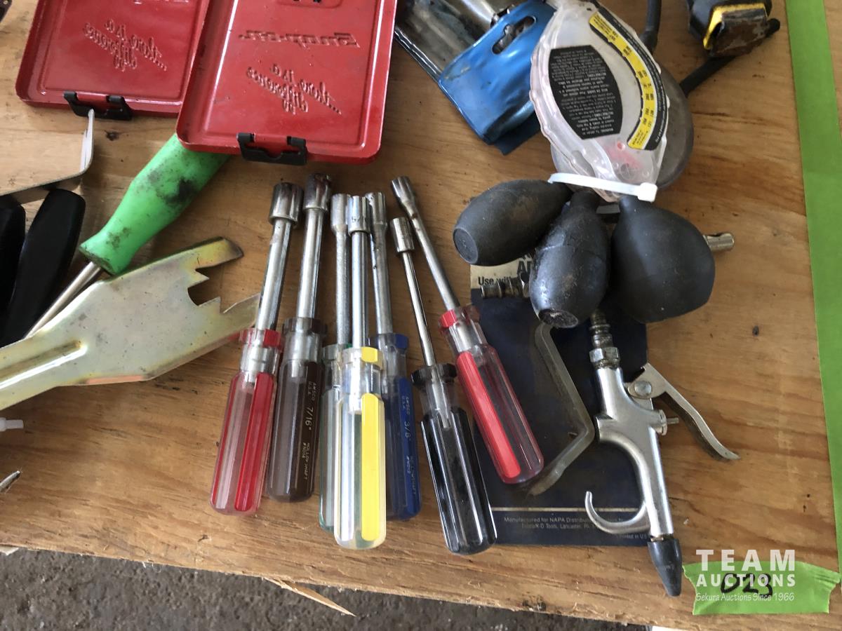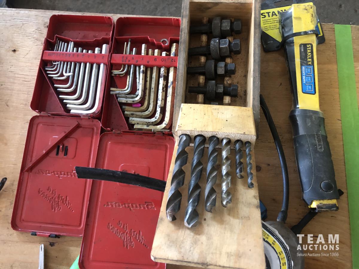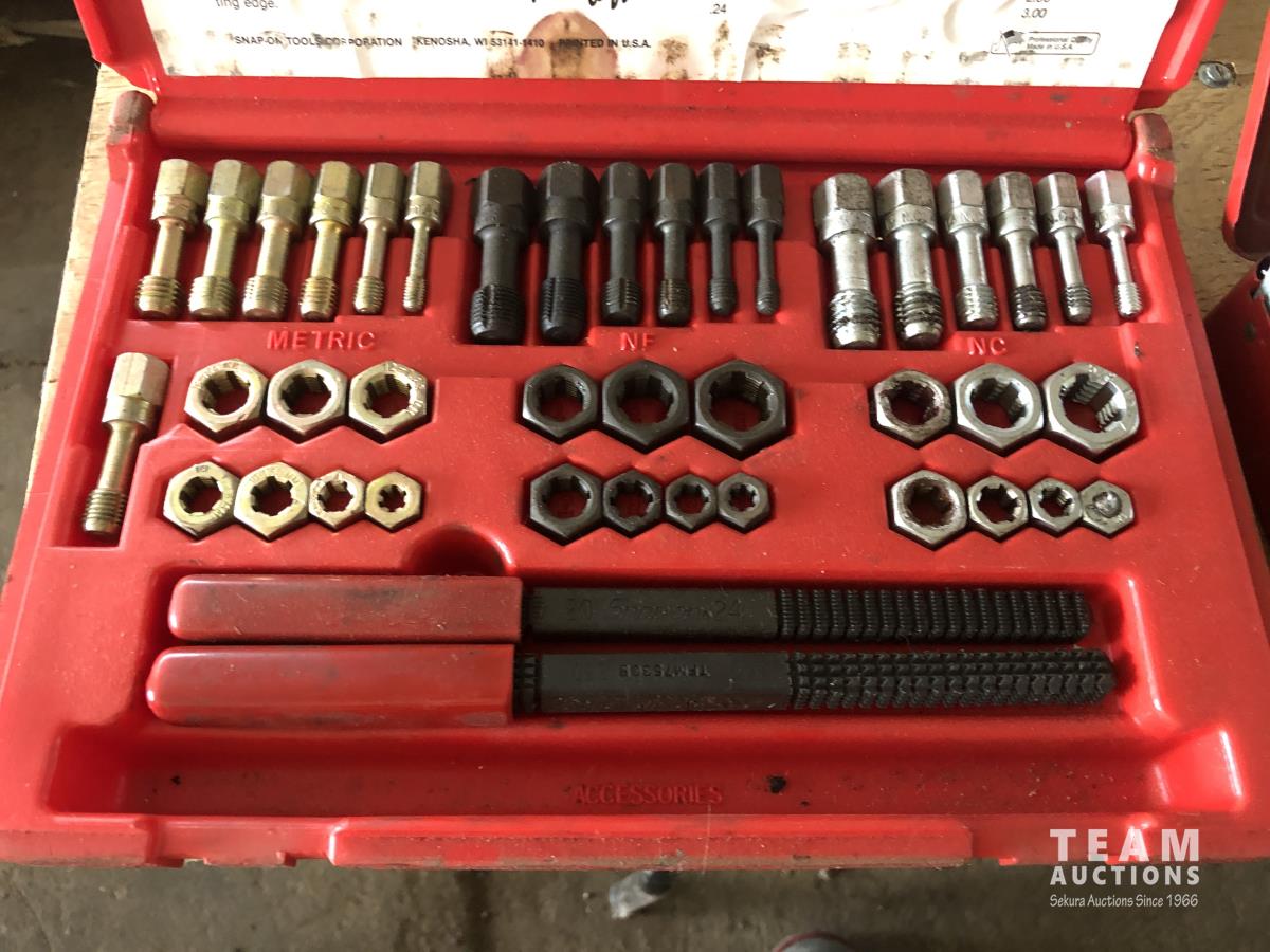 Snap-On rethreading Kit, burr tools, Allen keys, Stanley stapler, 7 piece screwdriver set, miscellaneous tools