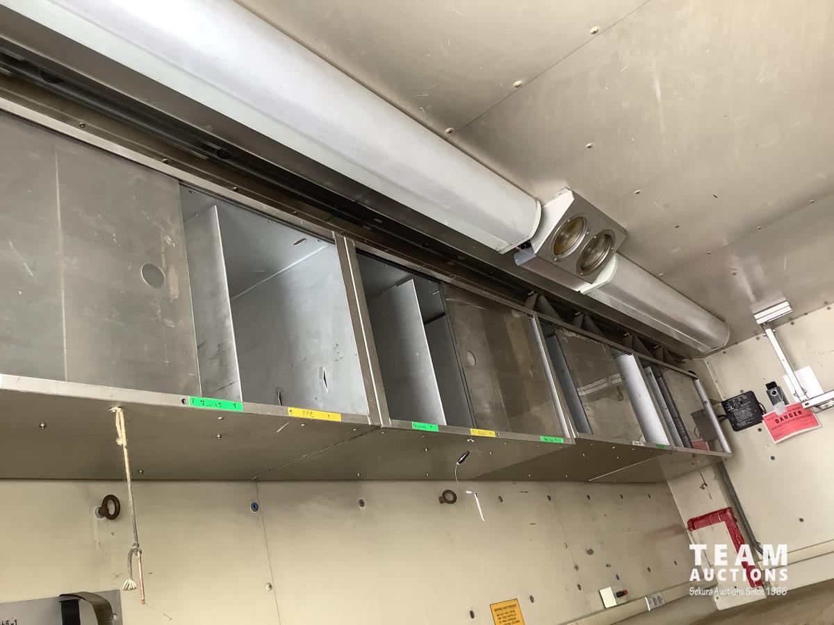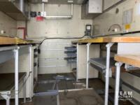 Wired, diesel heater, aluminum finished inside and out, counters, shelving, benches
