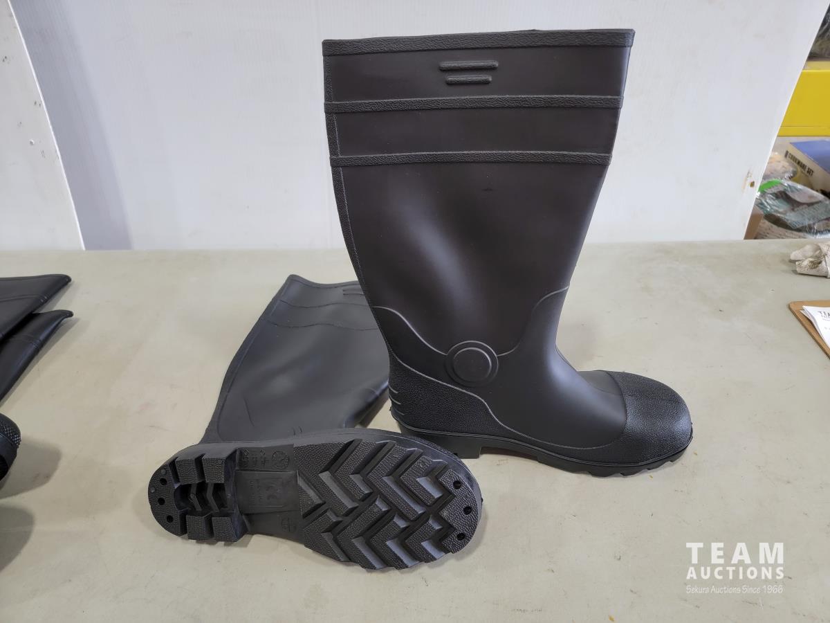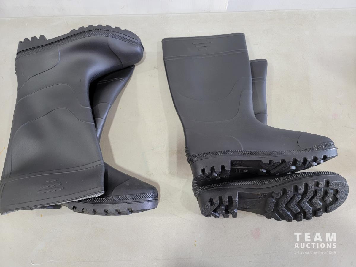 147 (1) Pair Size 10 Steel Toe and (2) Size 11 Black Rubber Boots (Unused)