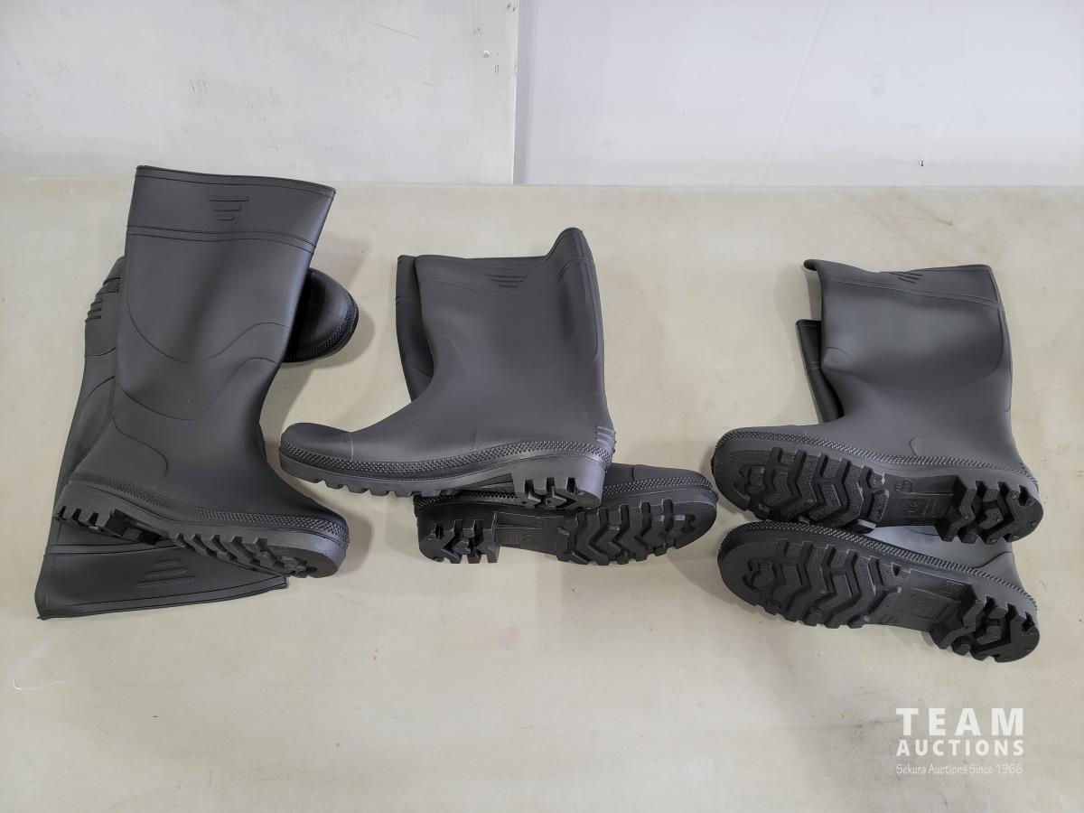 151 (1) Pair Size 11 (2) Size 12 Black Rubber Boots (Unused)