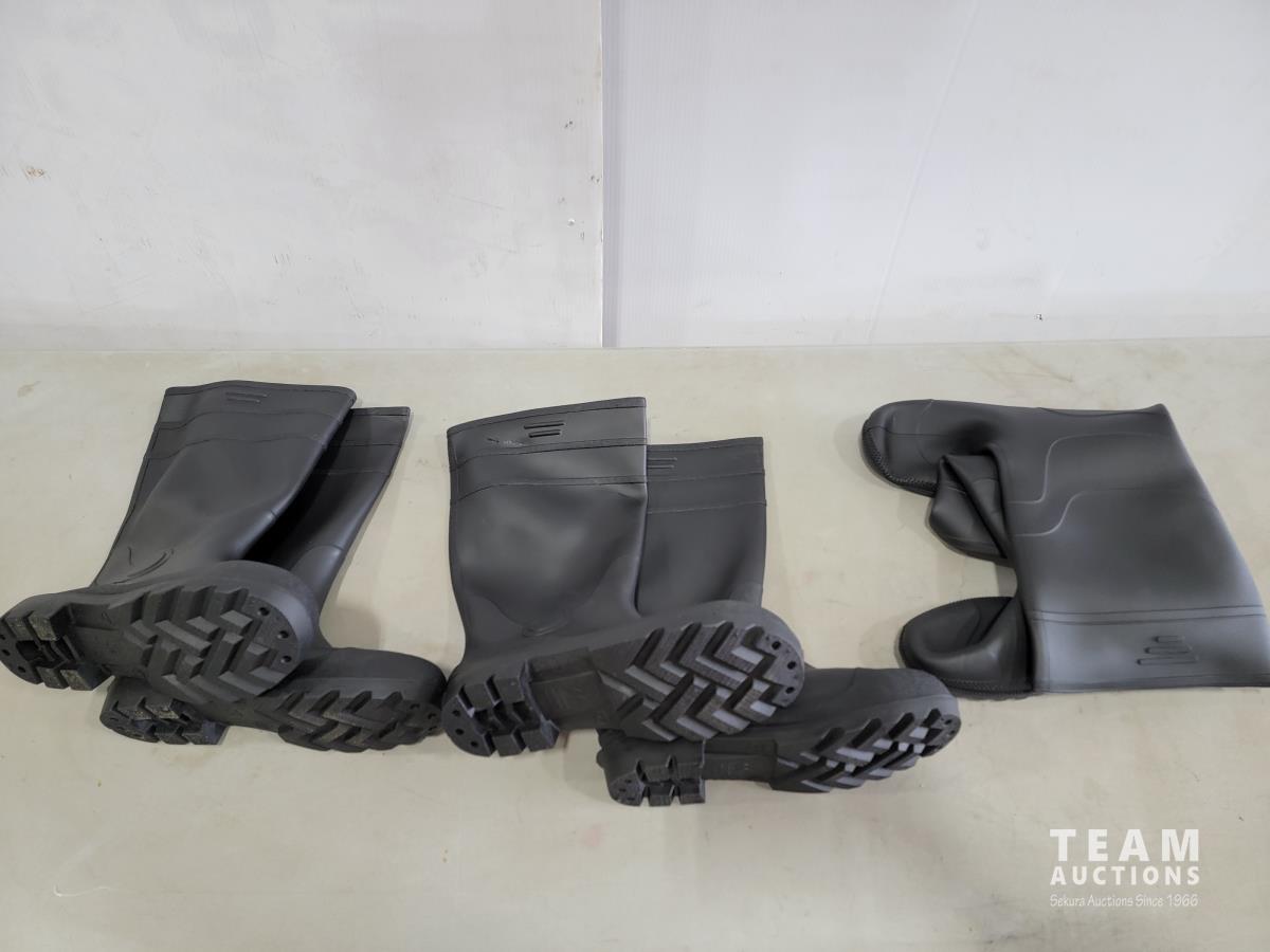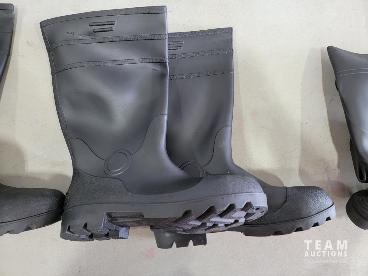 160 (1) Pair Size 12 Regular (2) Size 12 Steel Toe Black Rubber Boots (Unused)