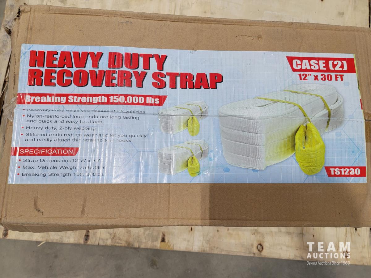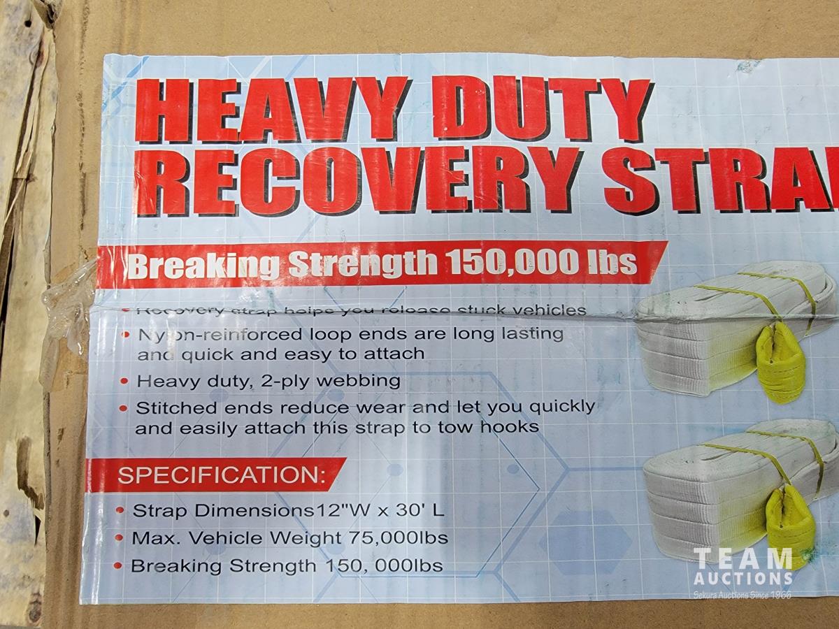 118 Case of (2) Heavy Duty Recovery Straps 12 Inch X 30 Ft (Unused)