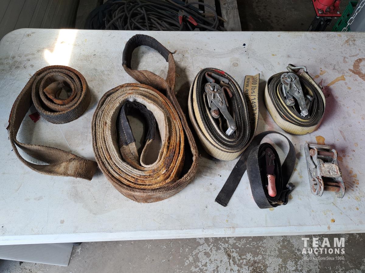 103 (3) Ratchet Straps, (2) Slings, Qty of Strapping