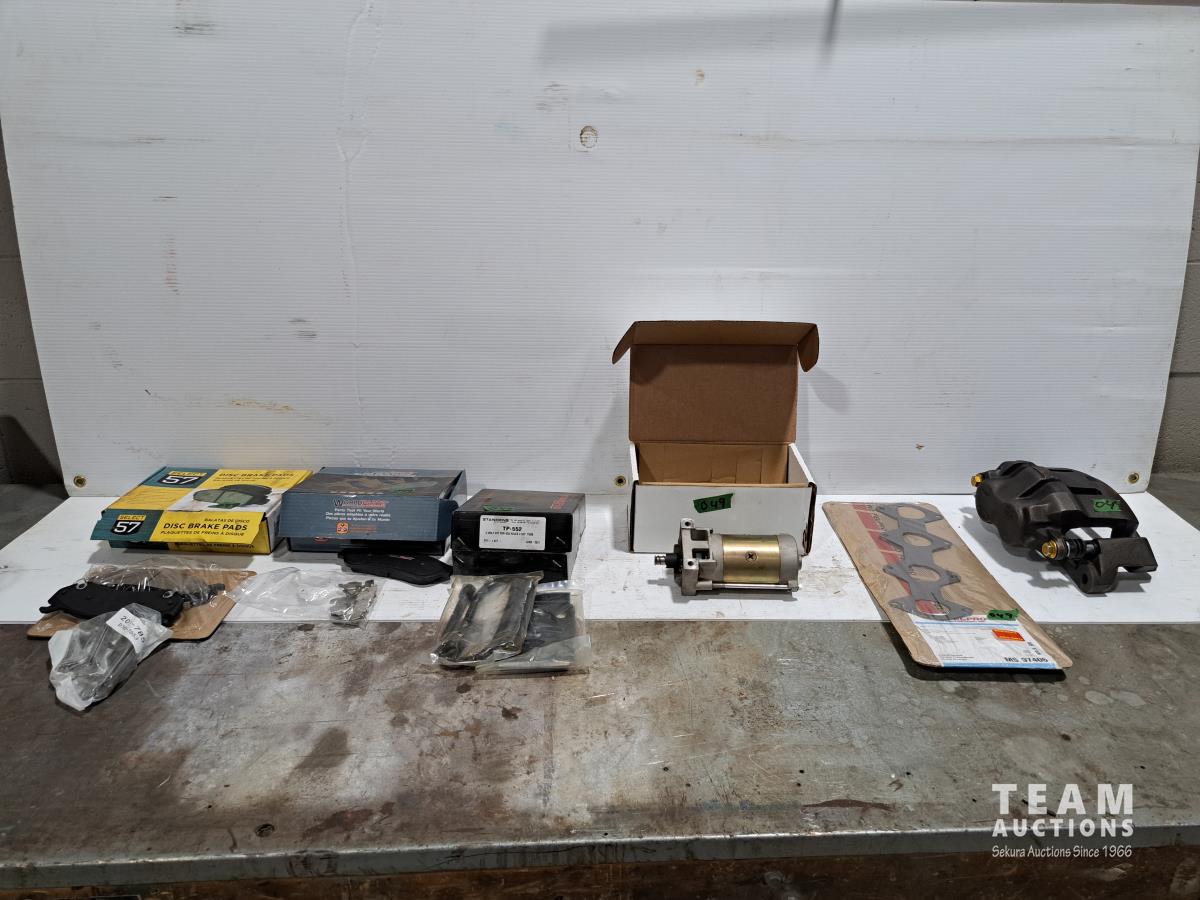 58 (3) Sets of Brake Pads, (1) Caliper, (1) Exhaust Gasket, (1) Small Starter
