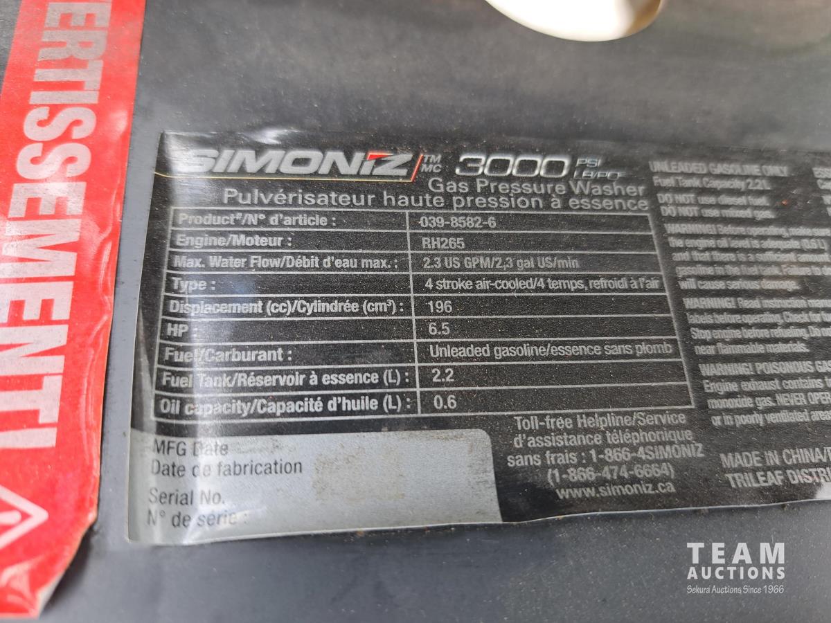 174 Simoniz Platinum Series Gas 3000 PSI Pressure Washer