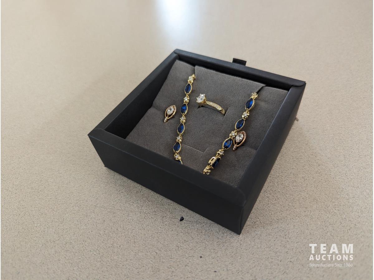 Size 7 ring, leverback earrings, 7-8 inch blue topaz bracelet