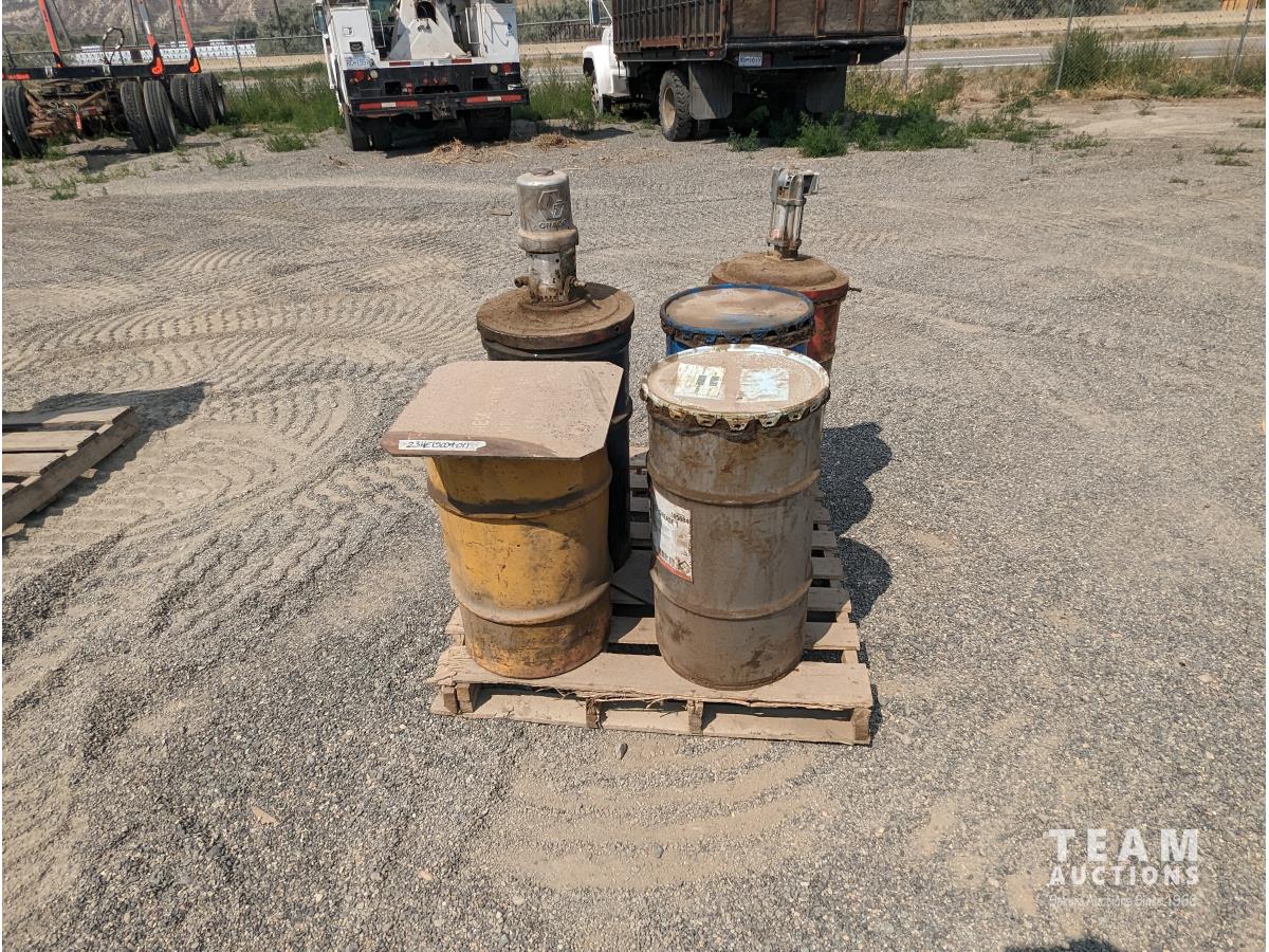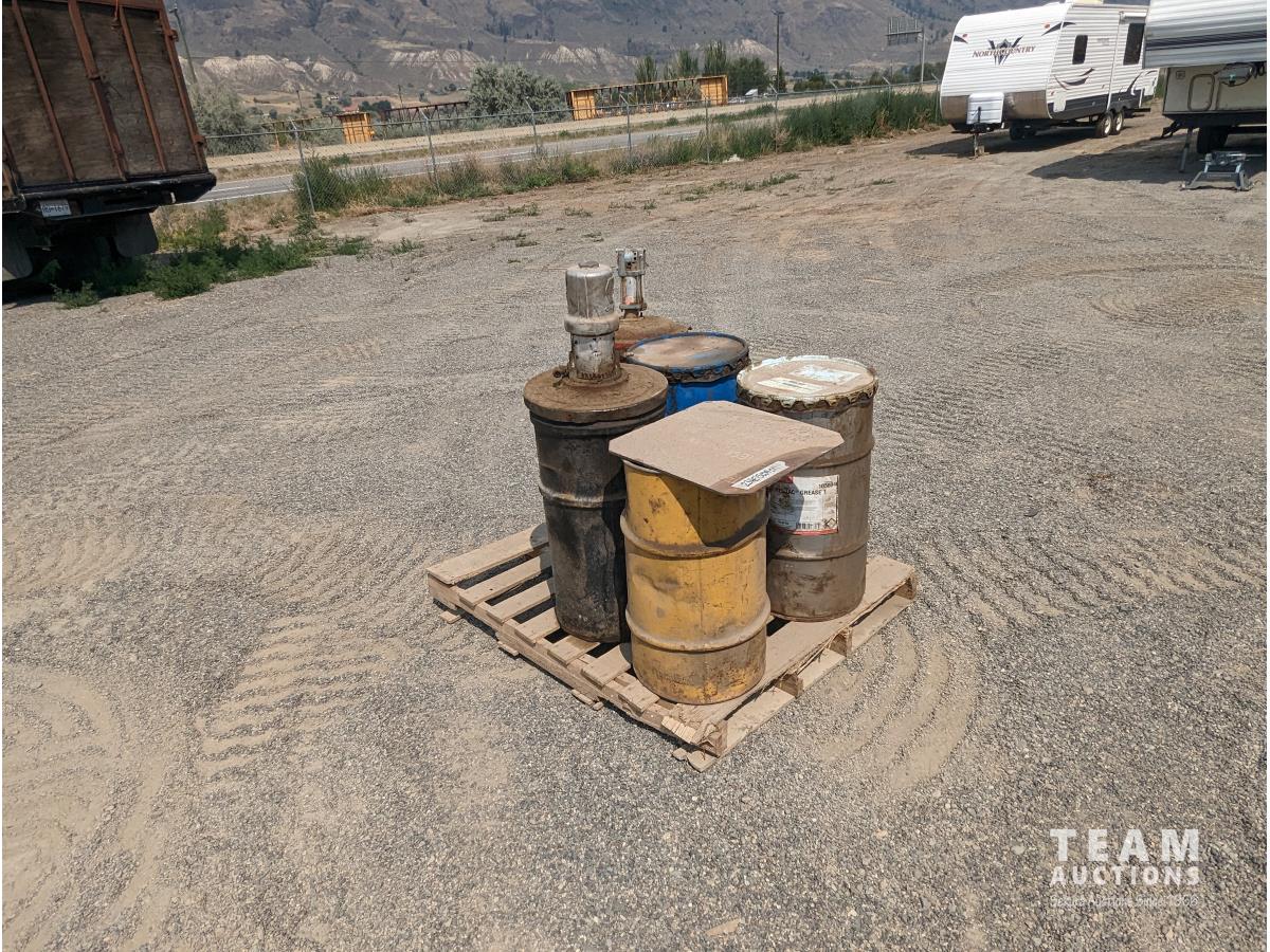 267 Qty of Grease Drums, Pumps & Tire Chains