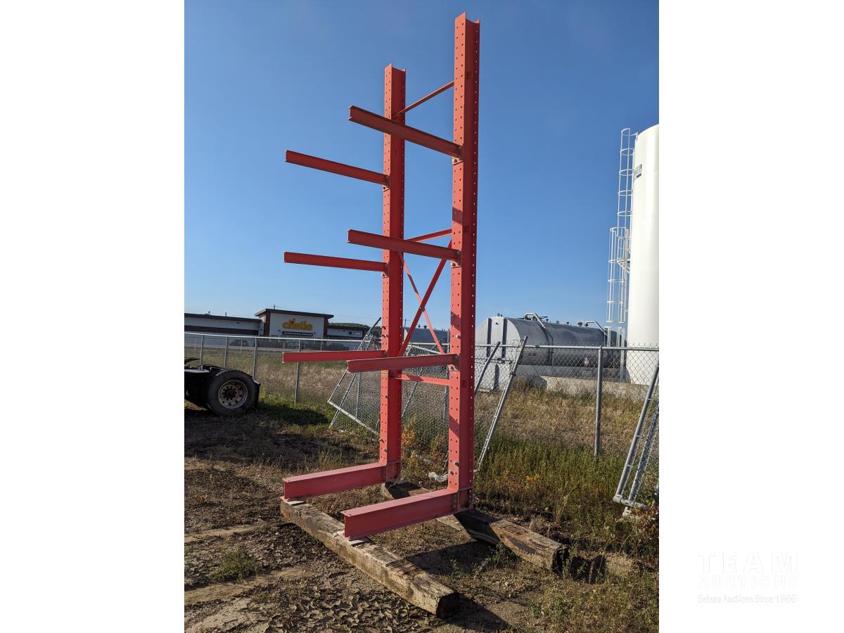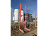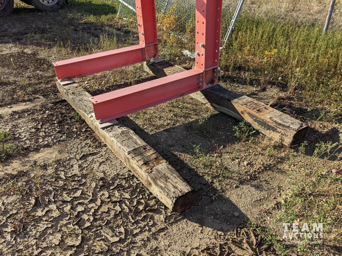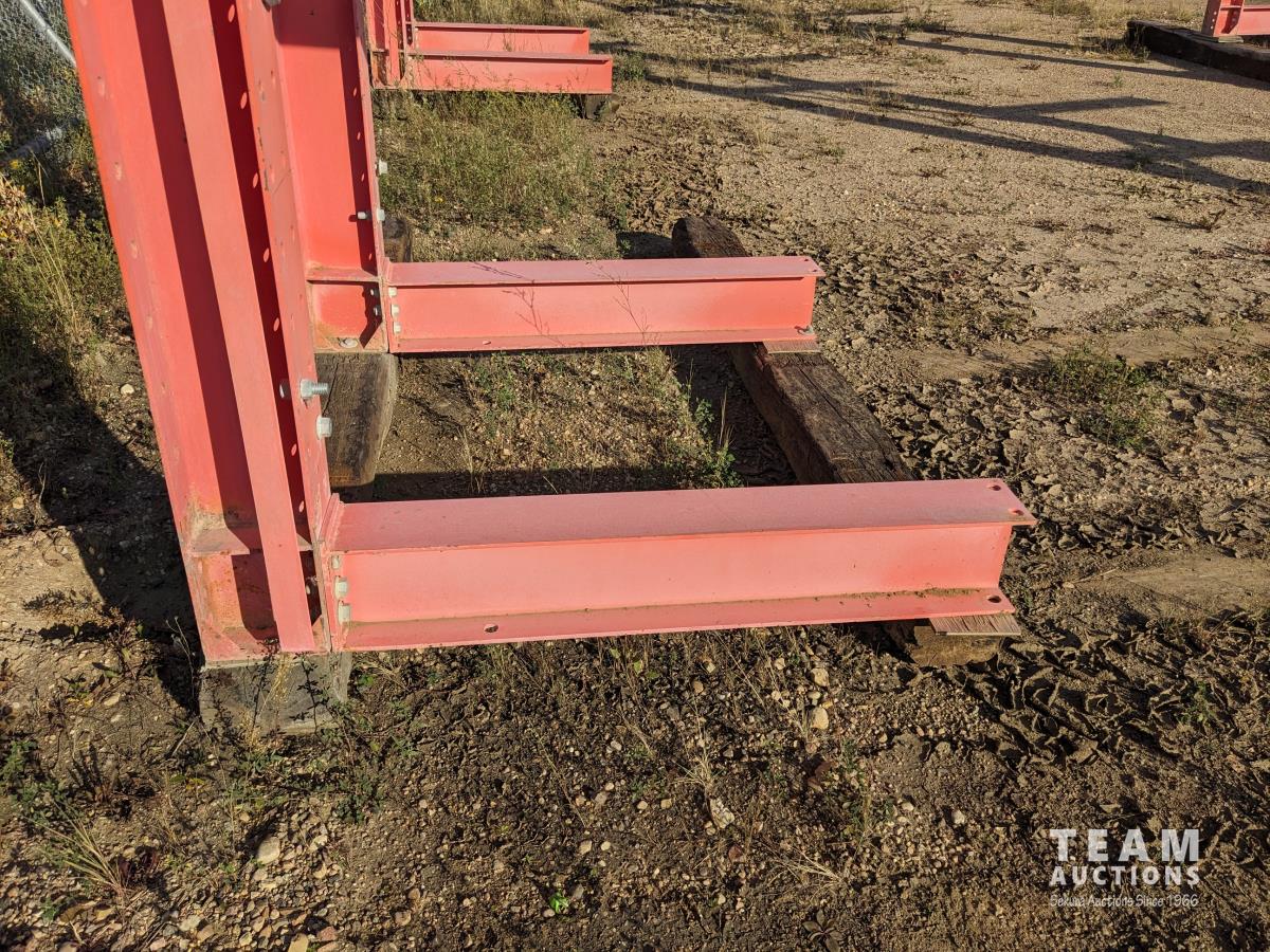 54 inch wide, (6) 48 inch shelf brackets, frame 6 inch X 8 inch H iron, mounted on railway ties