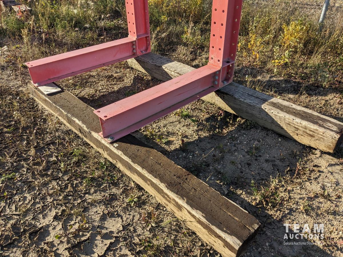 54 inch wide, (6) 48 inch shelf brackets, frame 6 inch X 8 inch H iron, mounted on railway ties