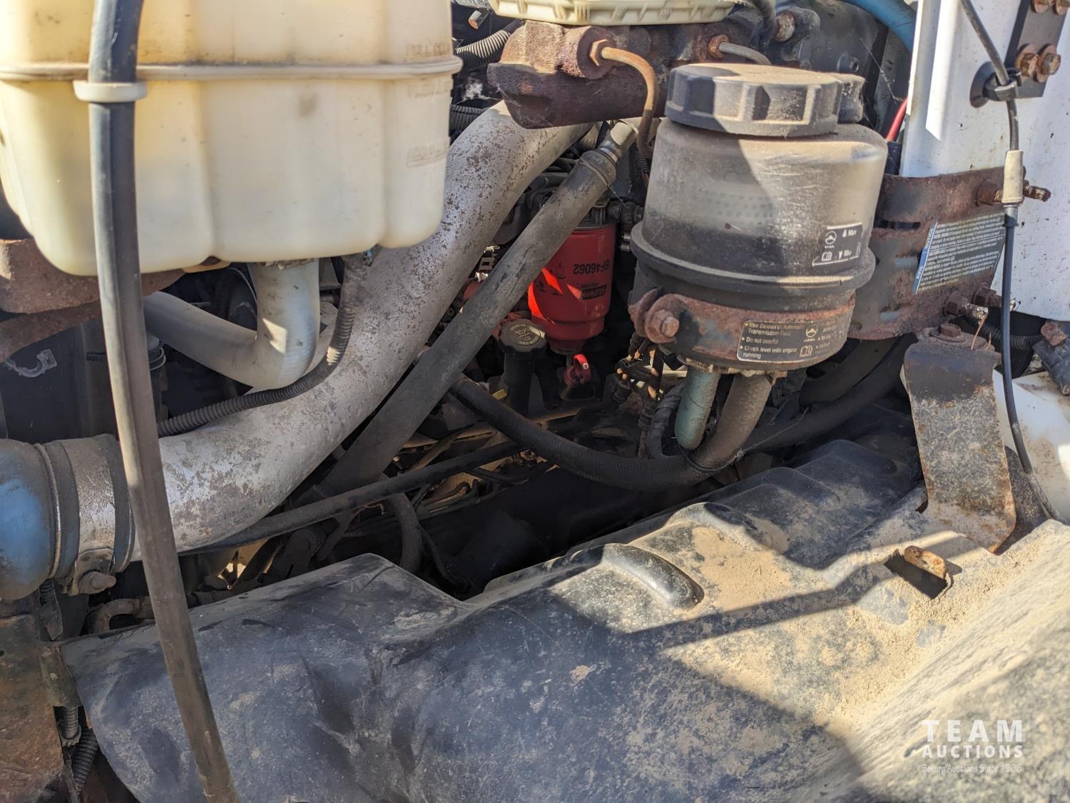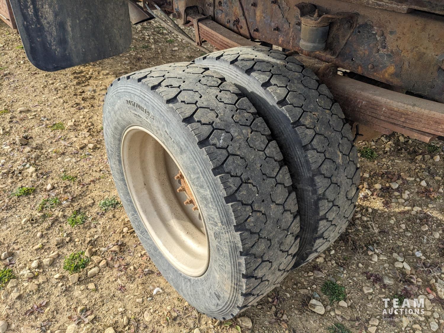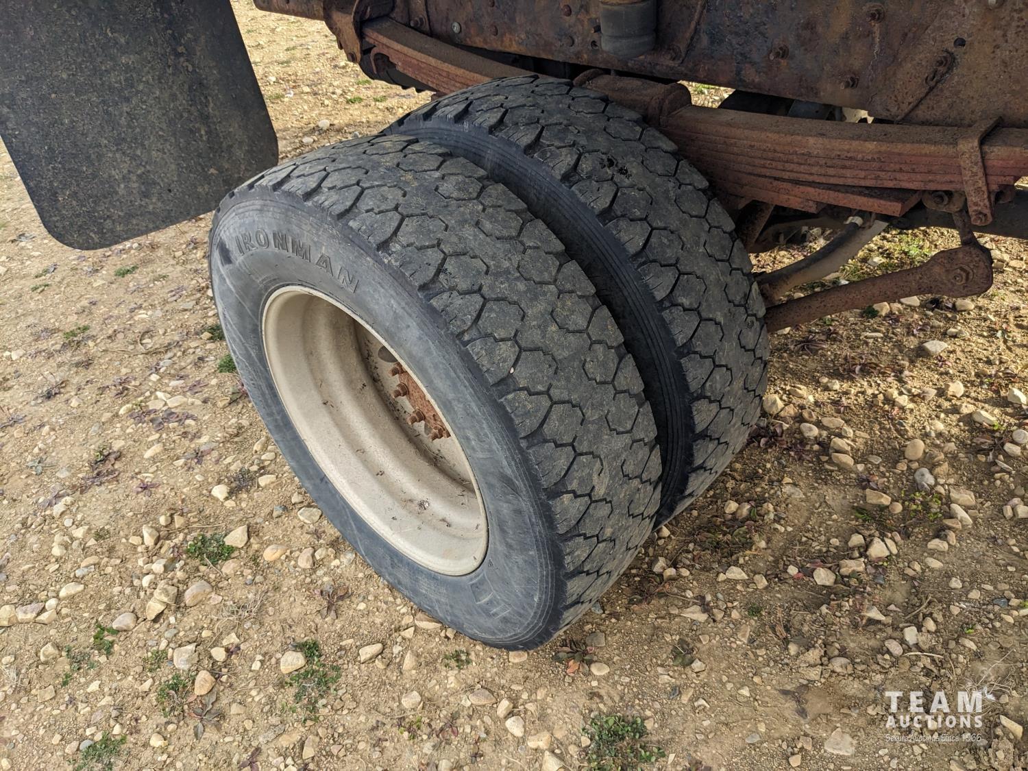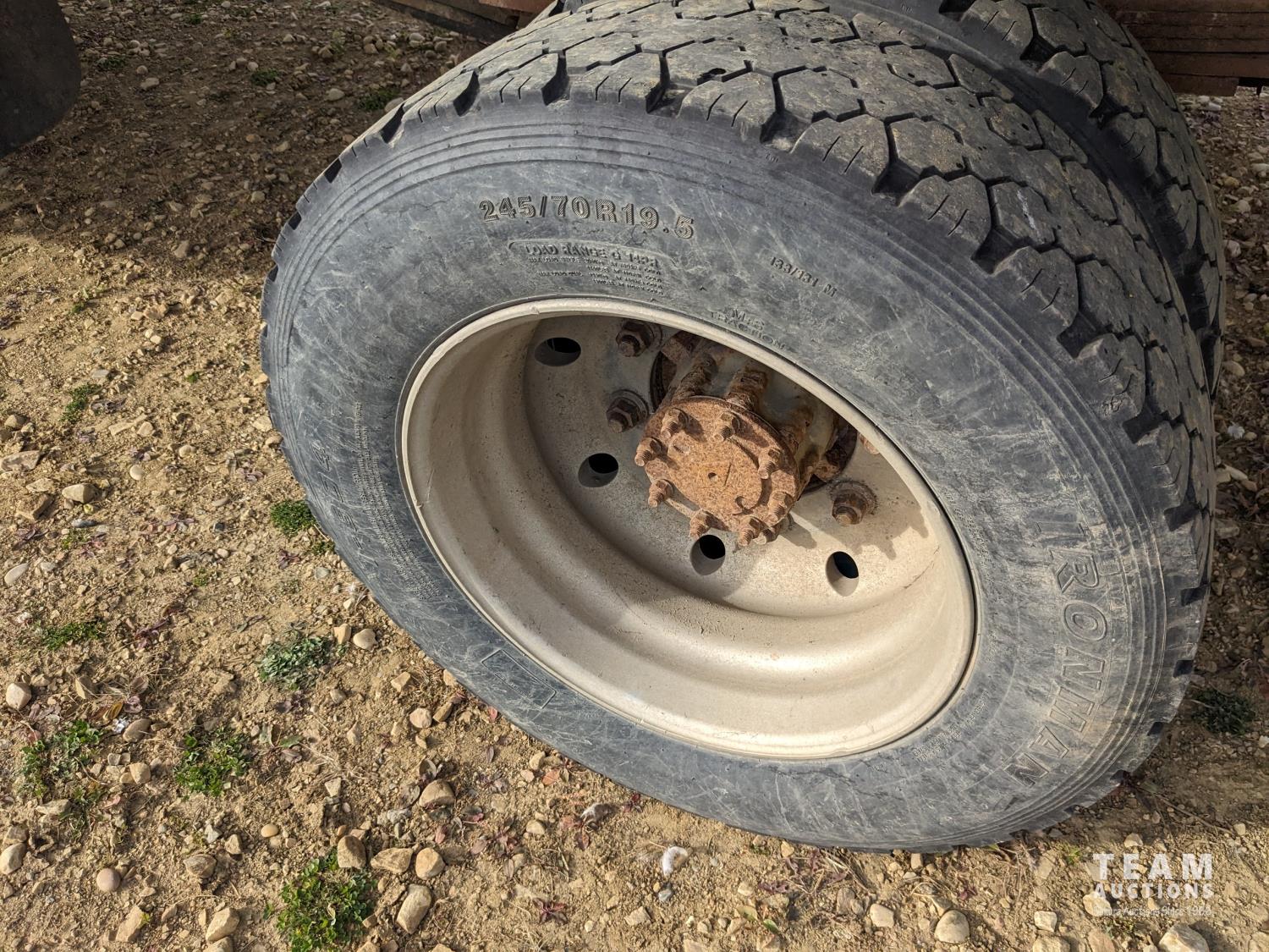 GMC DURAMAX V8 diesel engine, Allison automatic transmission, A/C, radio, 96 inch x 17 ft deck, under mount storage box, spring suspension, aluminum outer wheels, 24.5/7019.5 tires